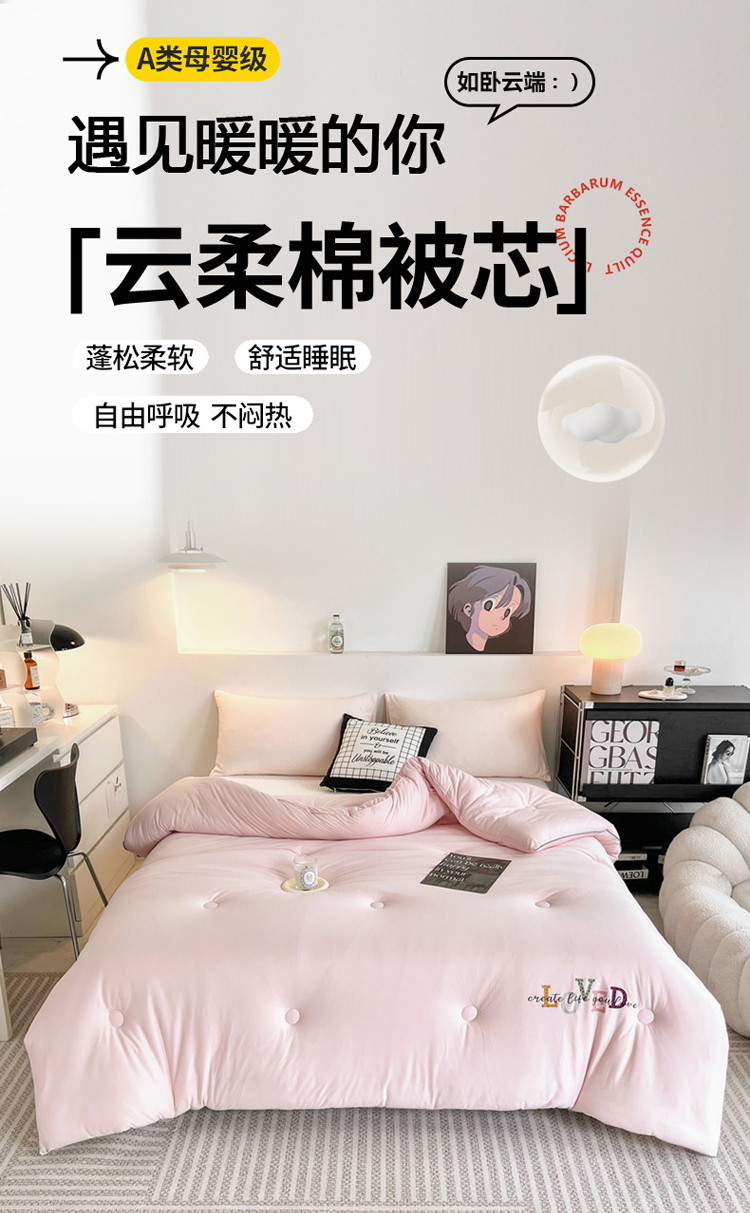 商品名称:寐居 2023新款A类云柔棉被芯-烫画字母-嫩玉