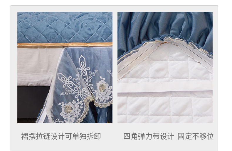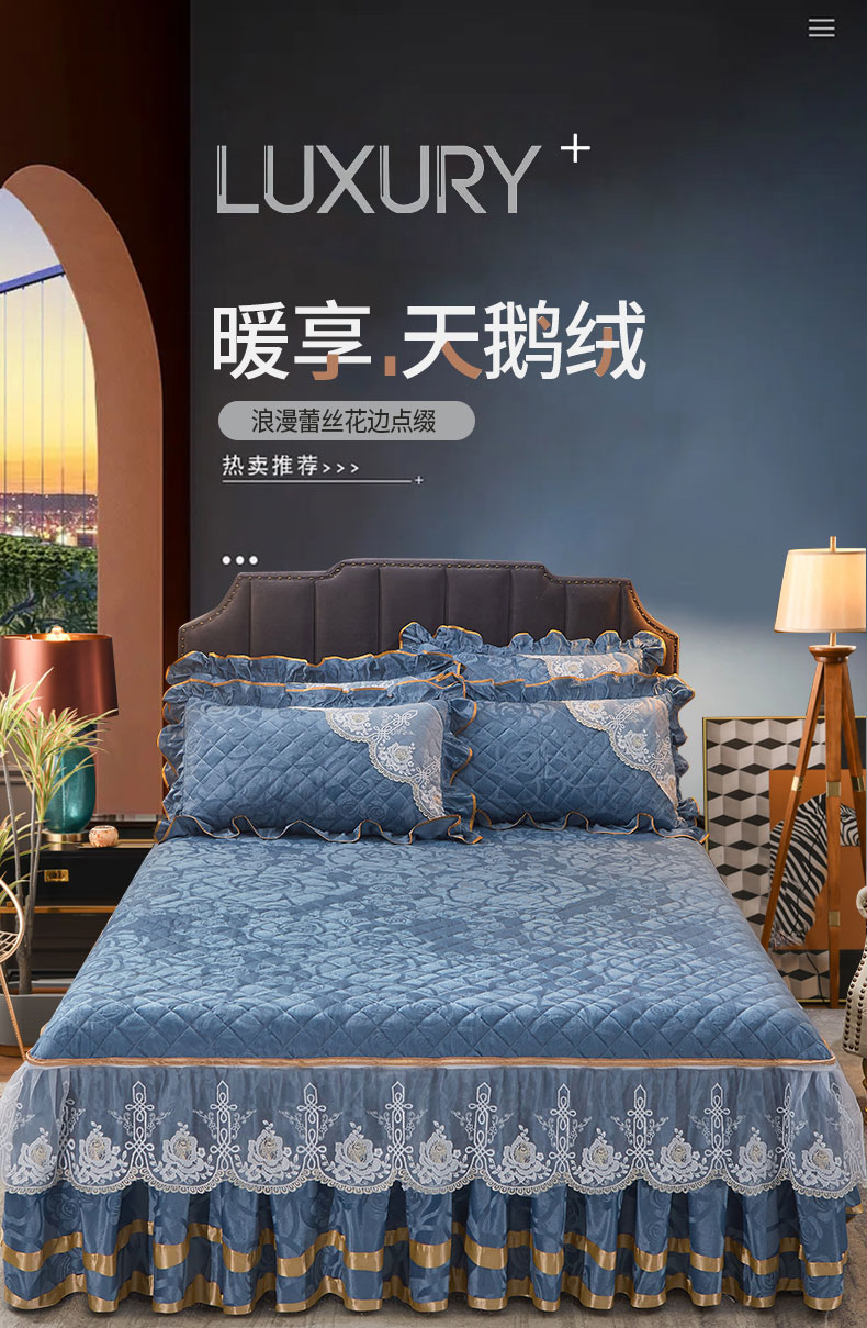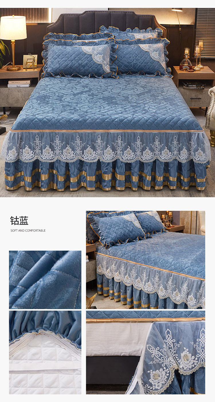 恋尚 2023新款天鹅绒可脱卸夹棉床裙 床盖四件套 床裙 钴蓝