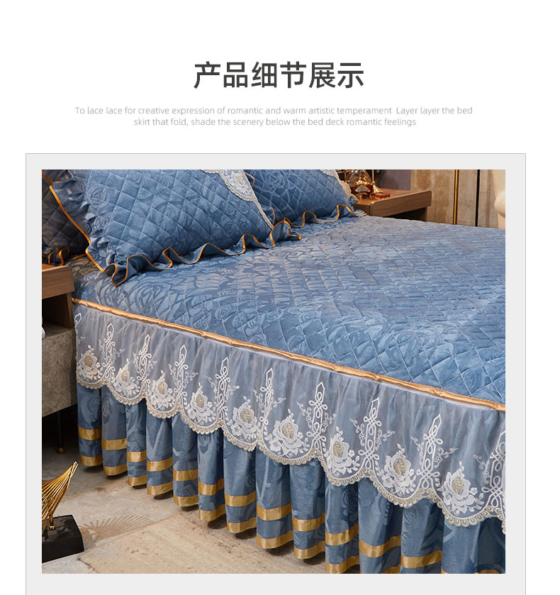 商品名称:恋尚 2023新款天鹅绒可脱卸夹棉床裙 床盖四件套 床裙 钴蓝