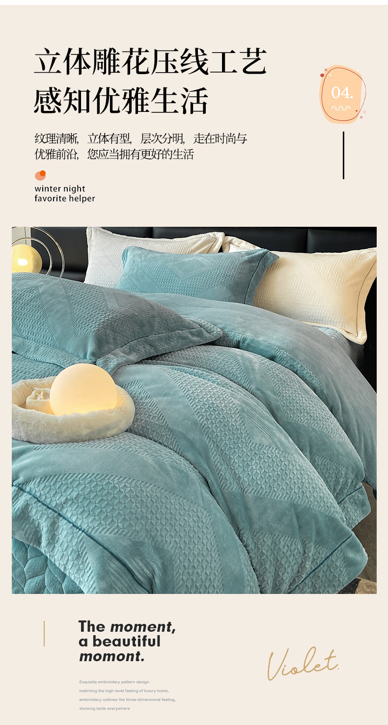 (总)美伦美焕 2025新款加厚雕花绒床盖款四件套-浅叶,浅叶-粉玉,浅叶-卡其,浅叶-绅士灰,浅叶-蔚蓝,浅叶-胭脂红