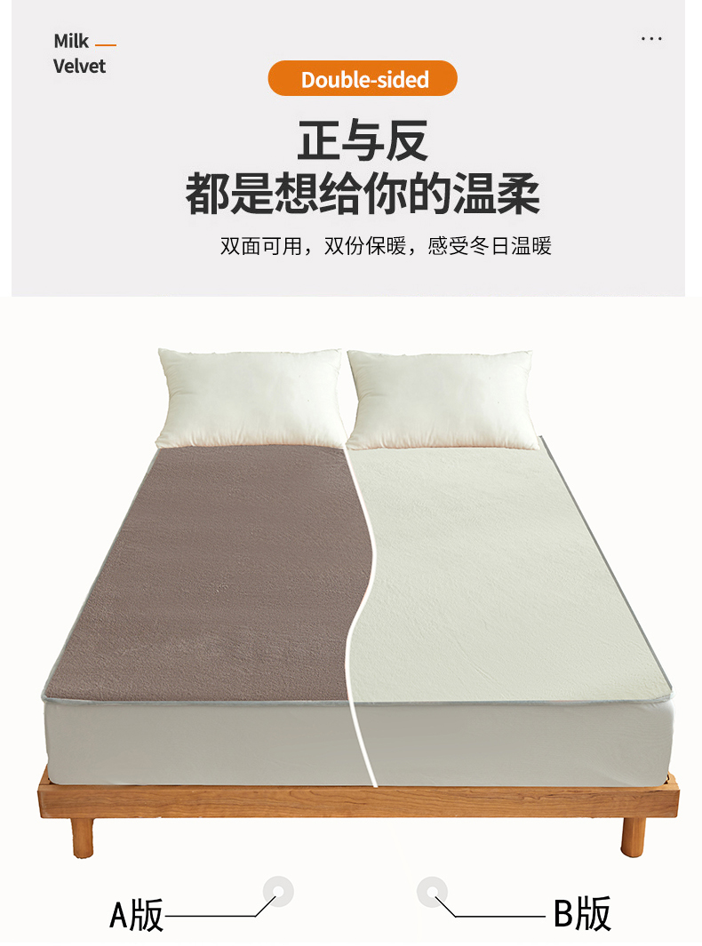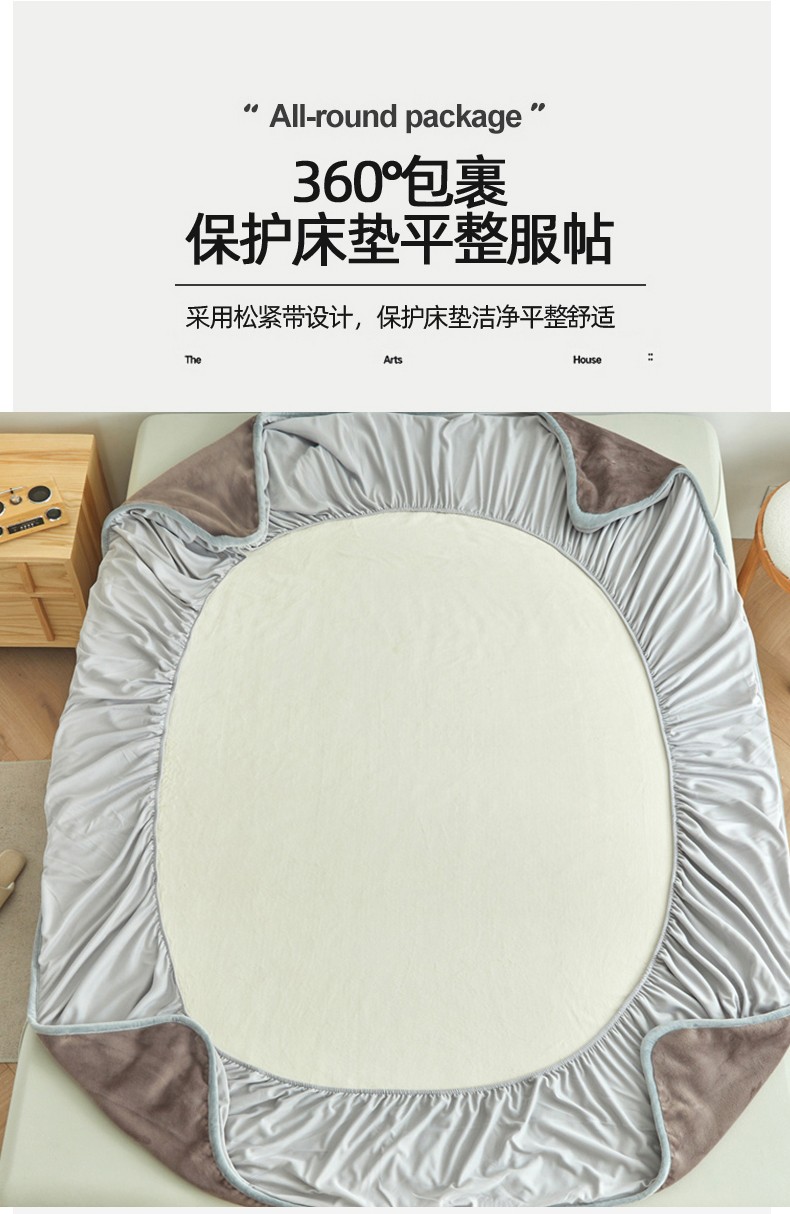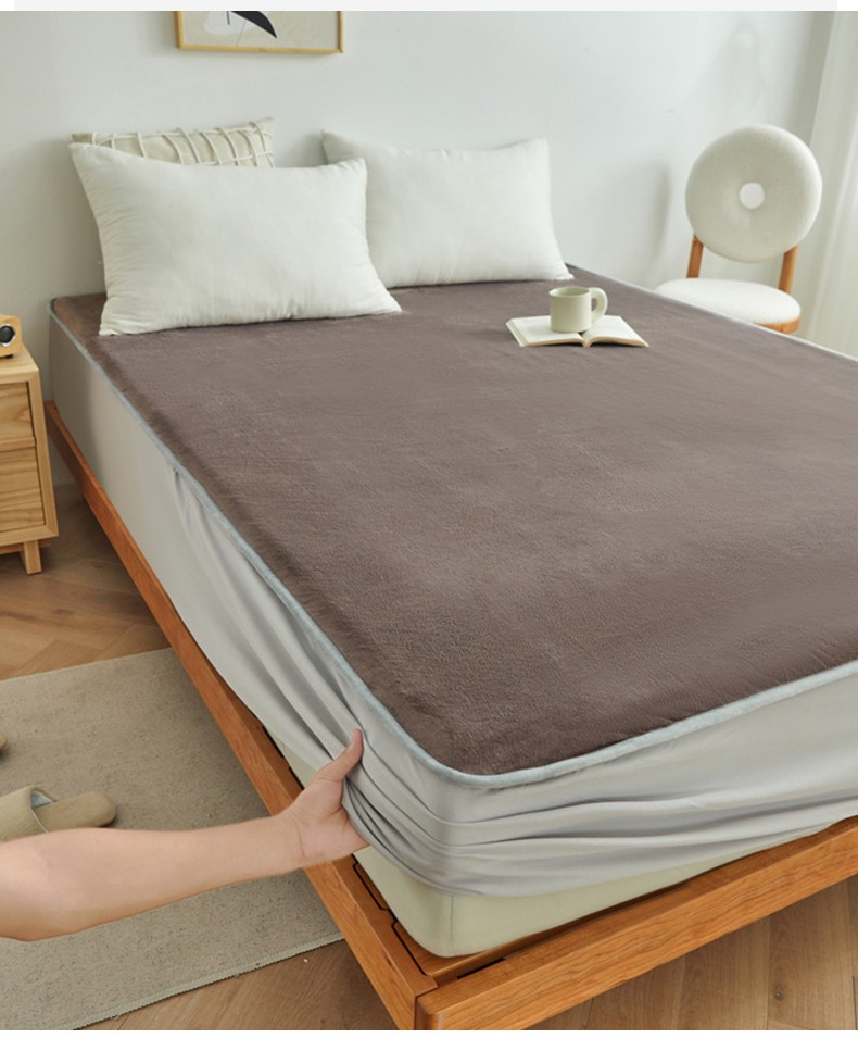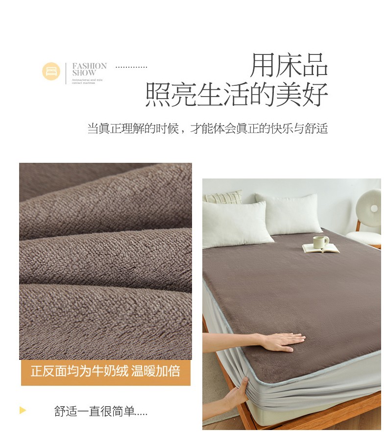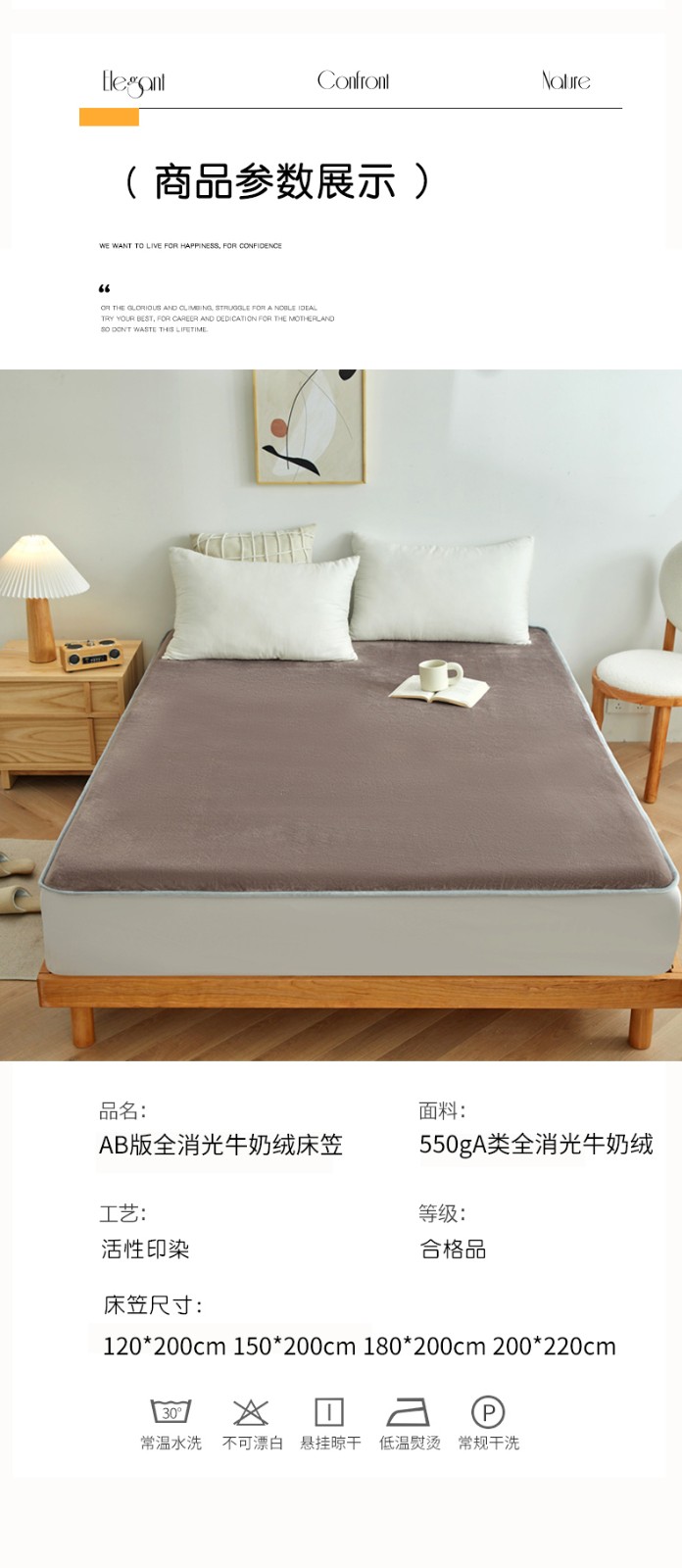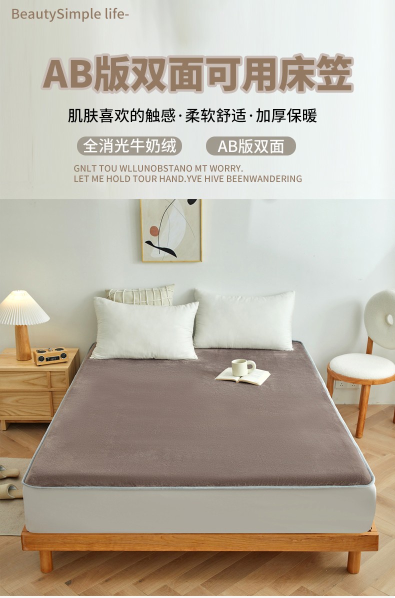 AB版双面牛奶绒床笠 复合保暖床笠 双面可用 咖白