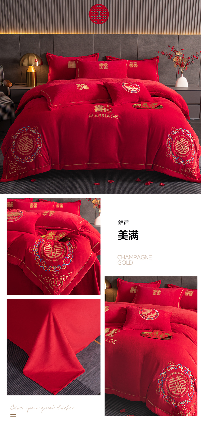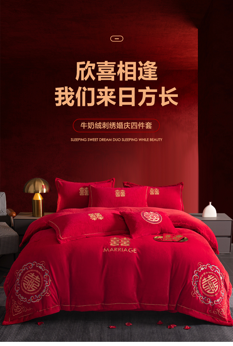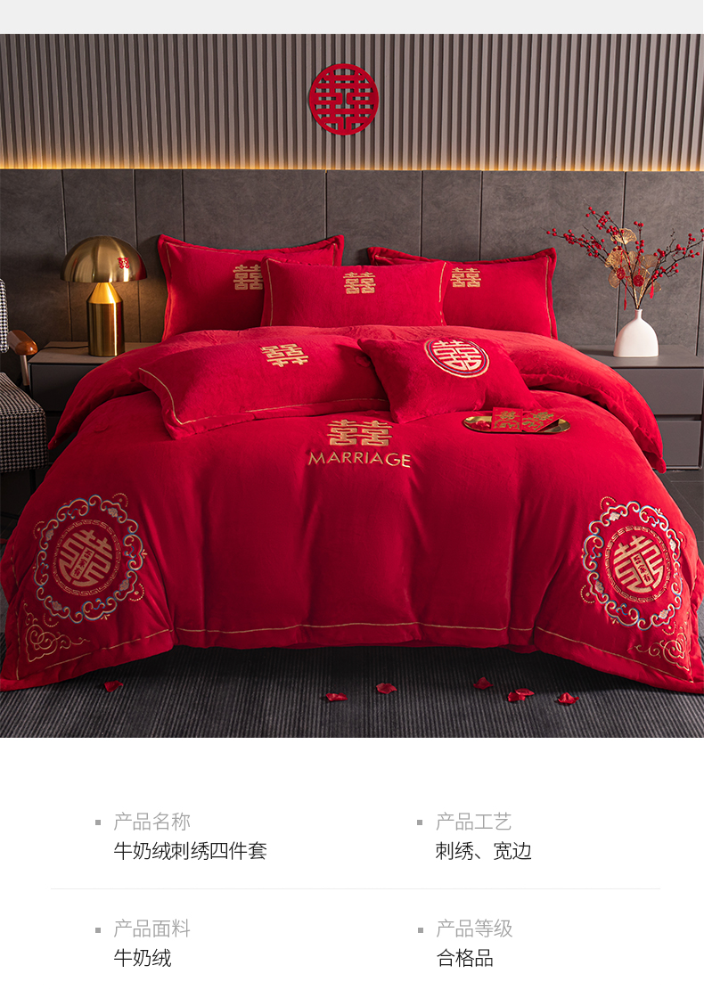 商品名称:花愿 2025新款婚庆牛奶绒四件套-拍法二 美满