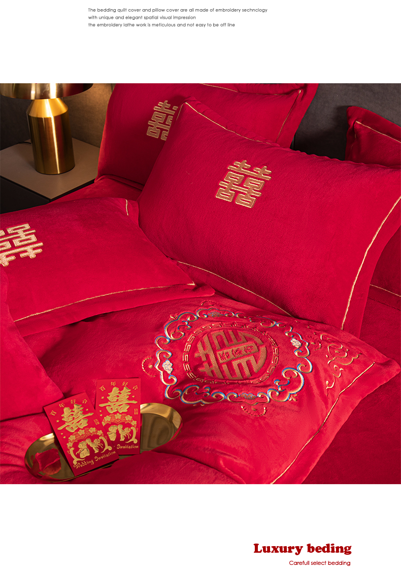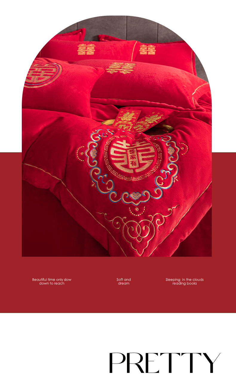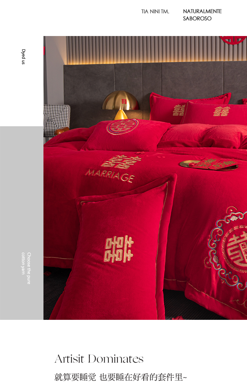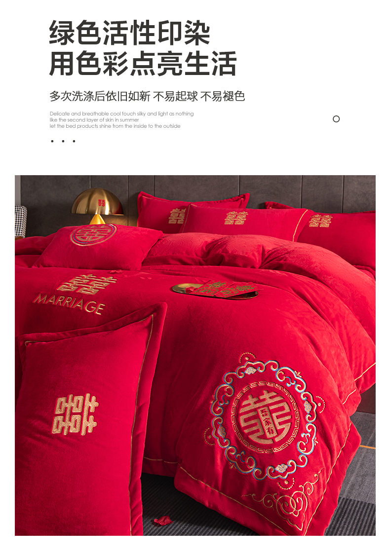 商品名称:花愿 2025新款婚庆牛奶绒四件套-拍法二 美满