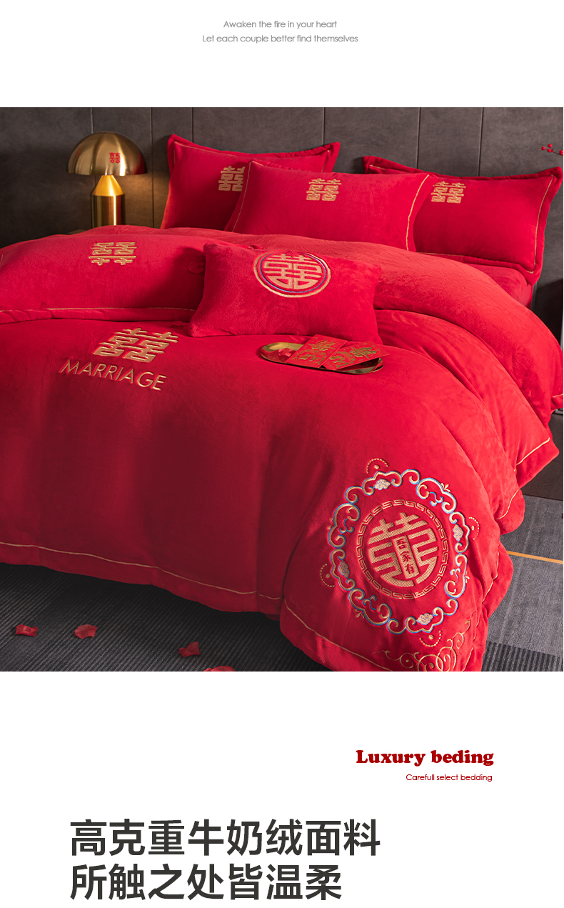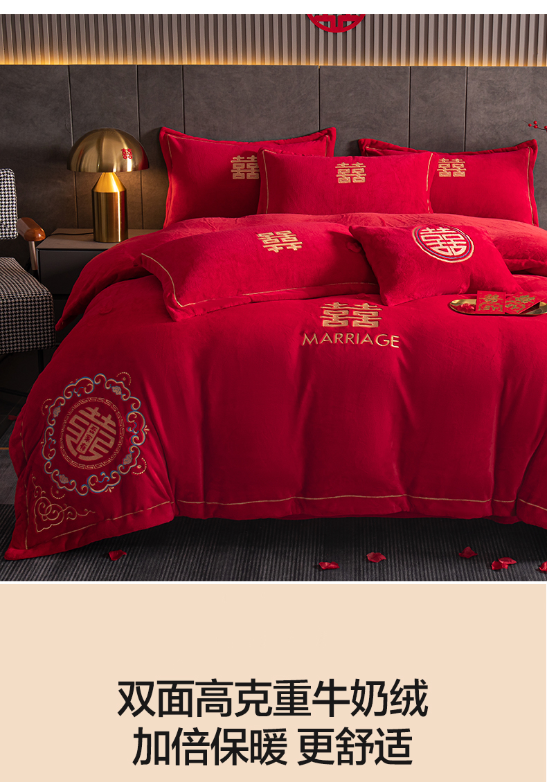 花愿 2025新款婚庆牛奶绒四件套-拍法二 美满