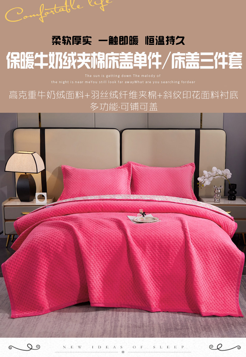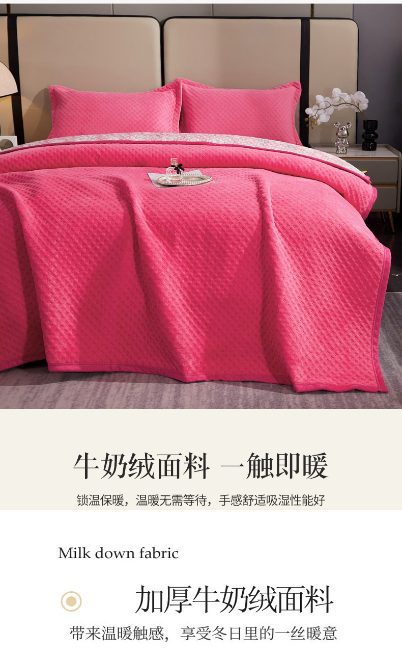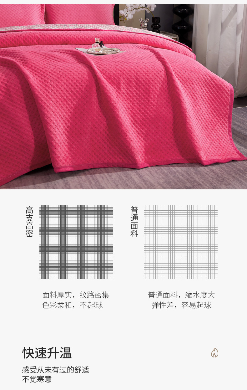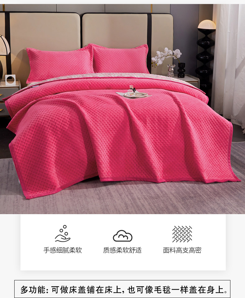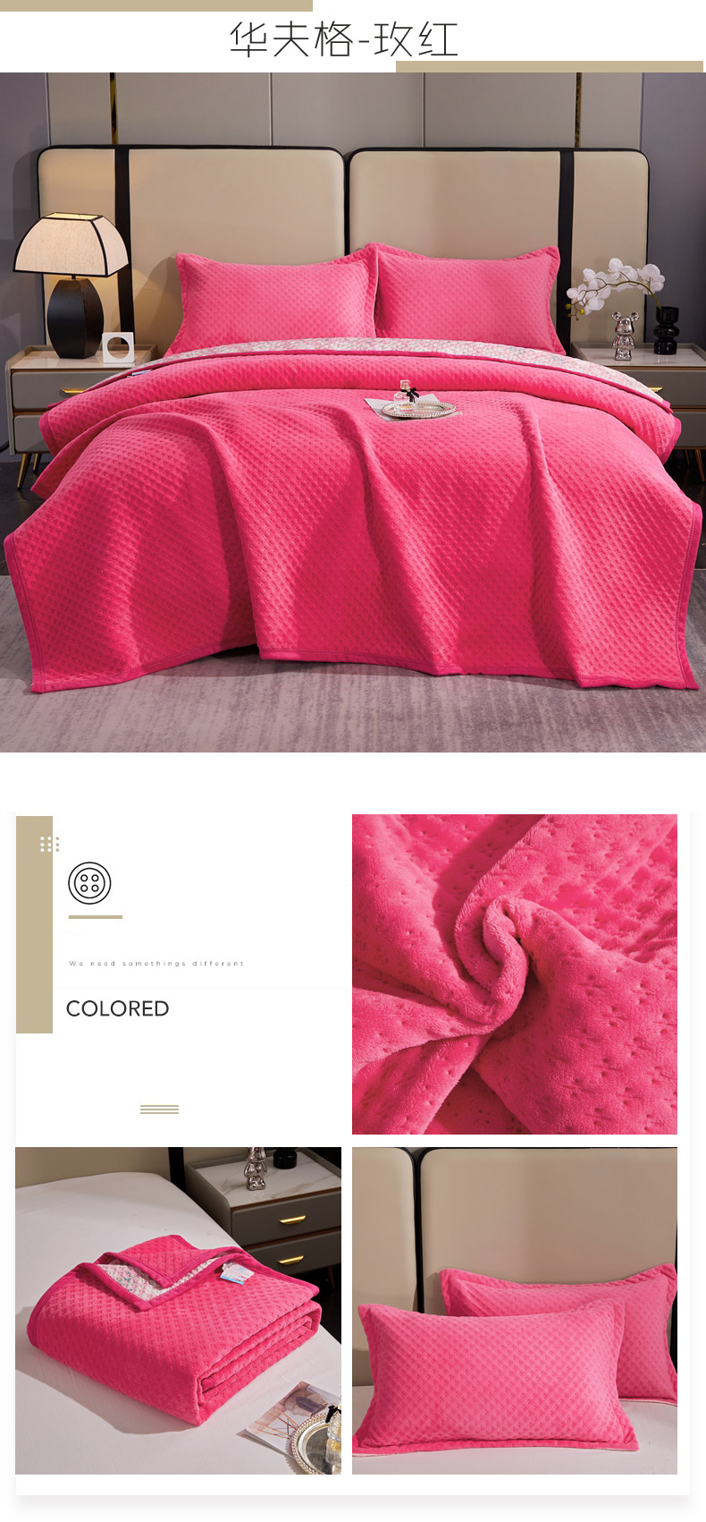 • 91家纺网 家纺一手货源 找家纺 晶缦家纺 2023新款华夫格牛奶绒床盖三件套 华夫格-玫红