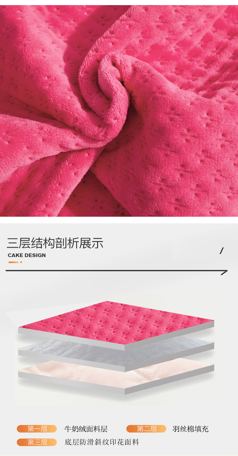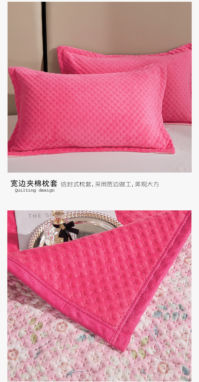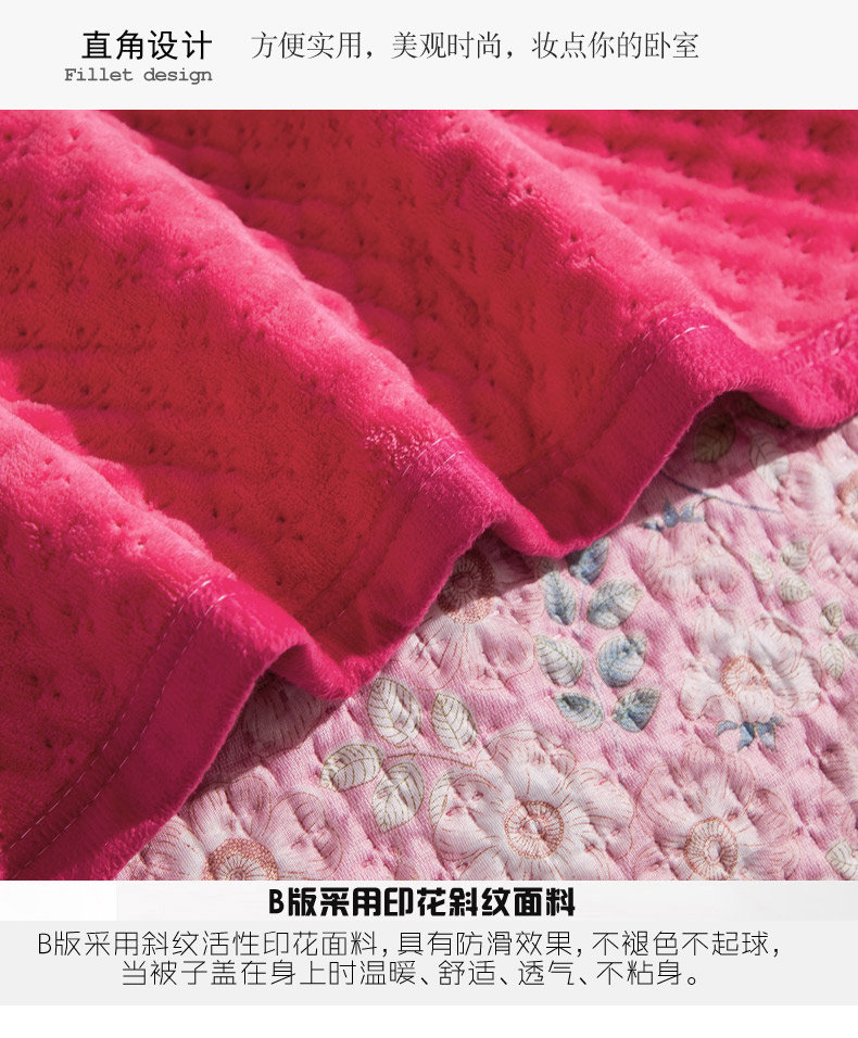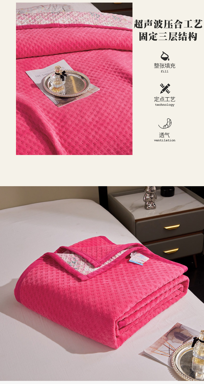 • 91家纺网 家纺一手货源 找家纺 晶缦家纺 2023新款华夫格牛奶绒床盖三件套 华夫格-玫红