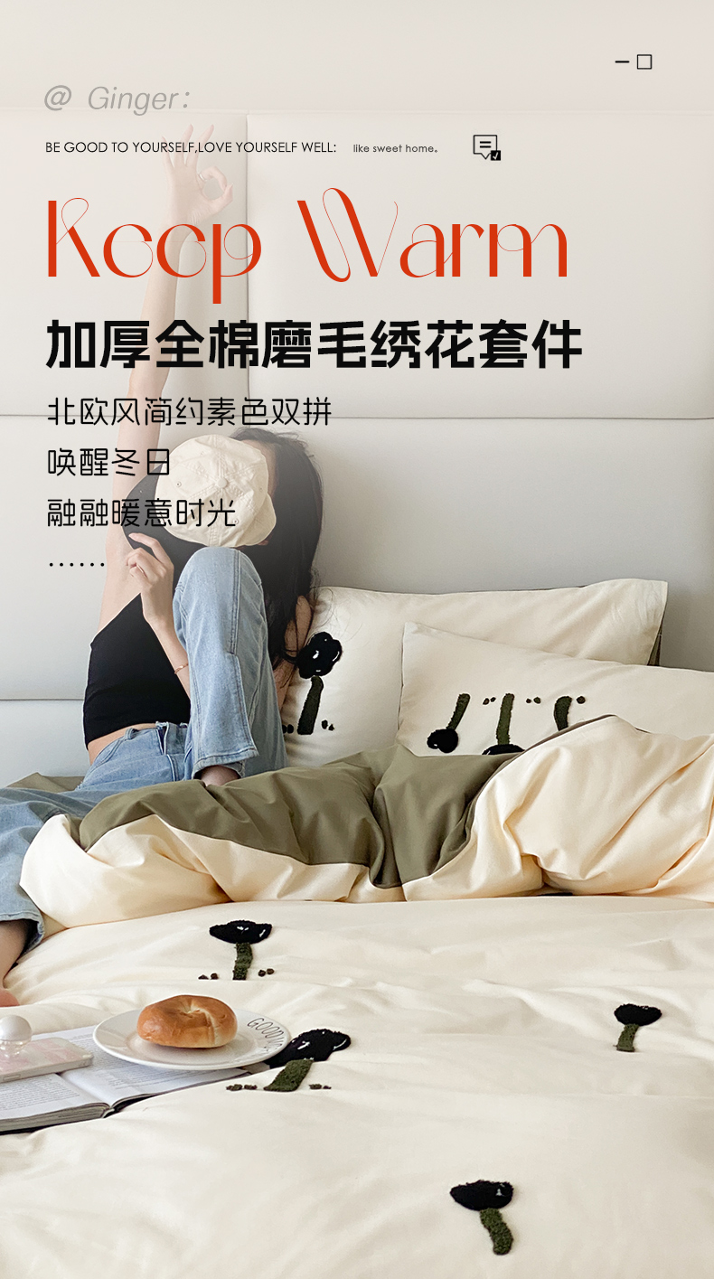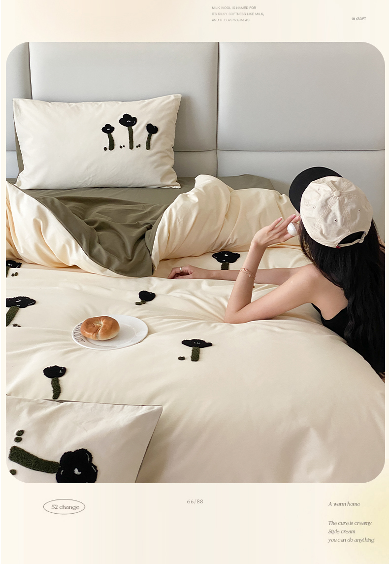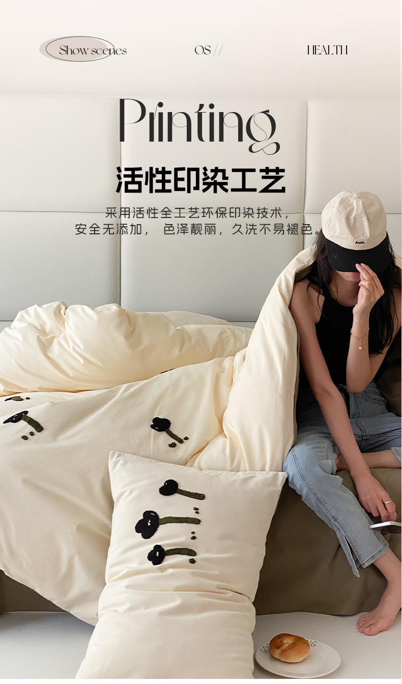 当前位置: 91家纺网 > 商品网购 > 床品套件 > 四件套 > 普通磨毛四件套 > 时光里 2023INS风软萌可爱60s加厚磨毛刺绣款全棉四件套 花朵物语