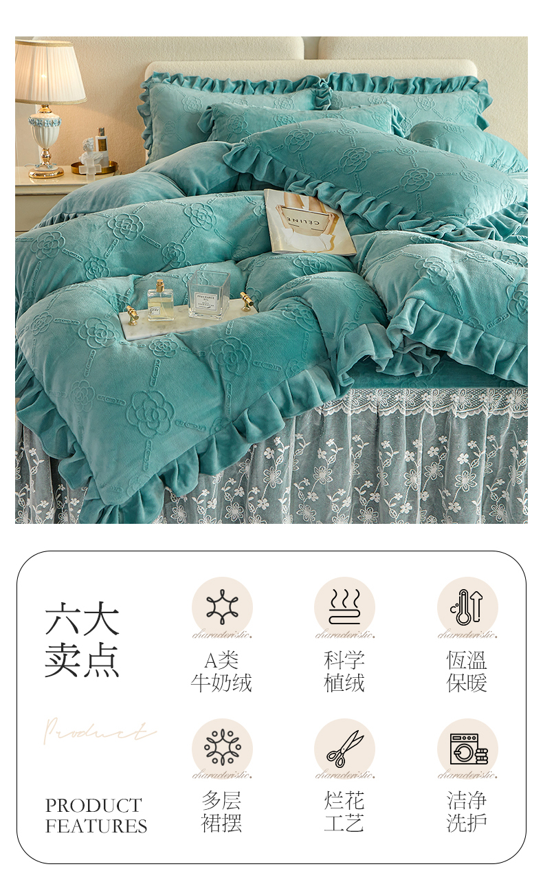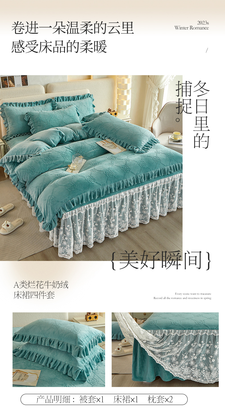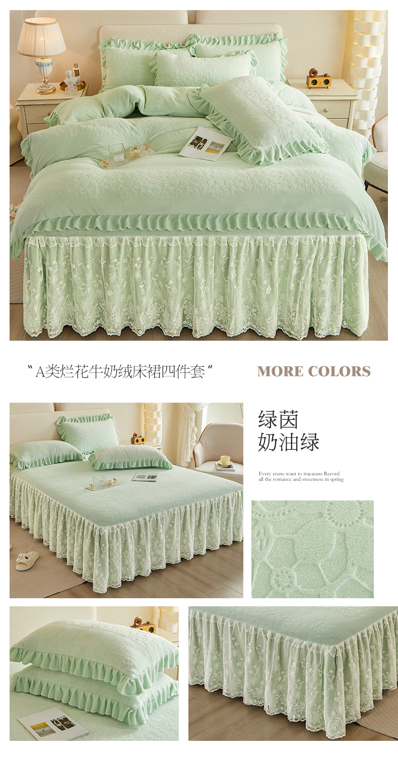 当前位置: 91家纺网 > 商品网购 > 床品套件 > 四件套 > 牛奶绒四件套 > 宜凡 2023新款烂花牛奶绒床裙四件套 绿茵-奶油绿