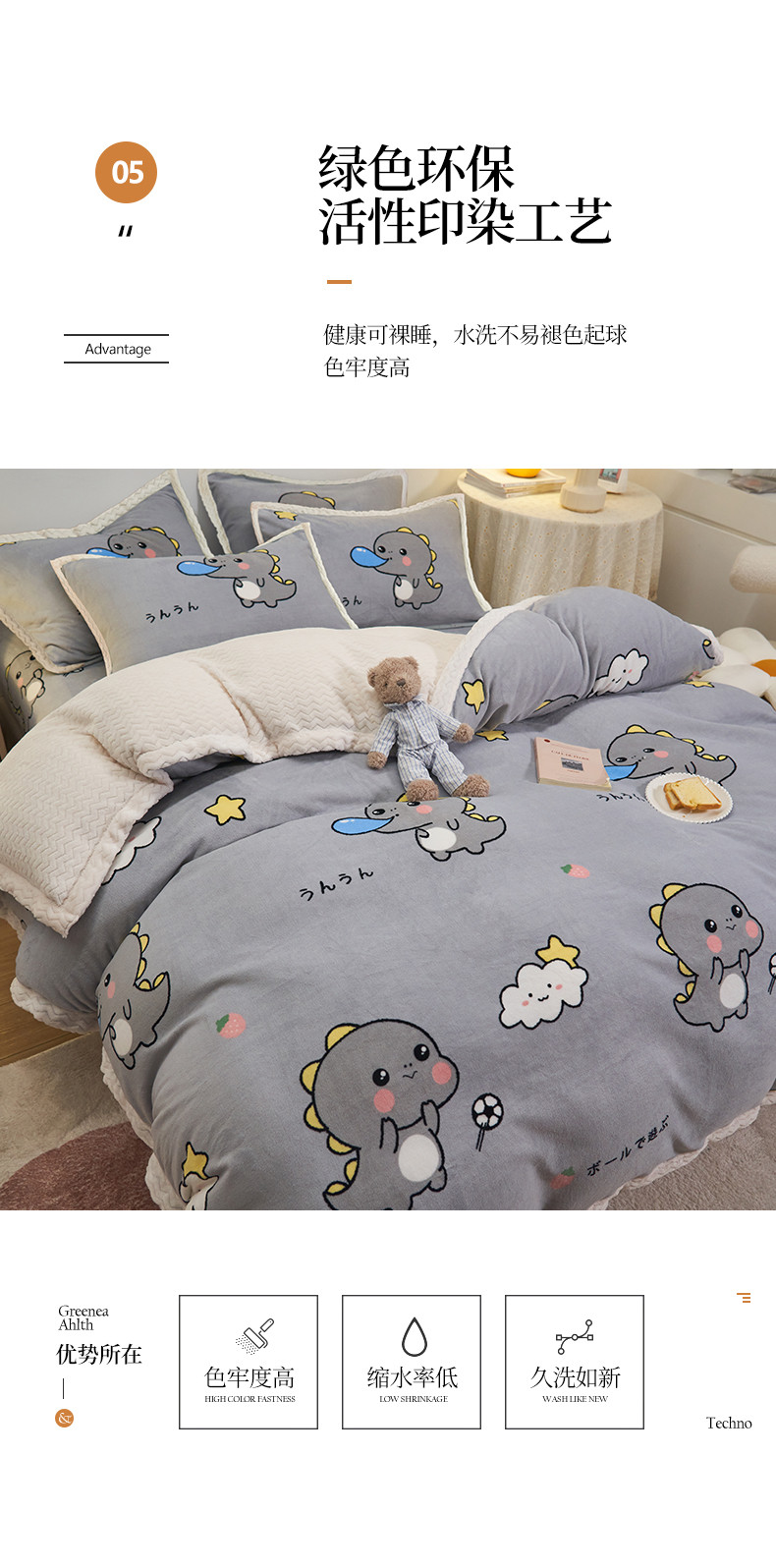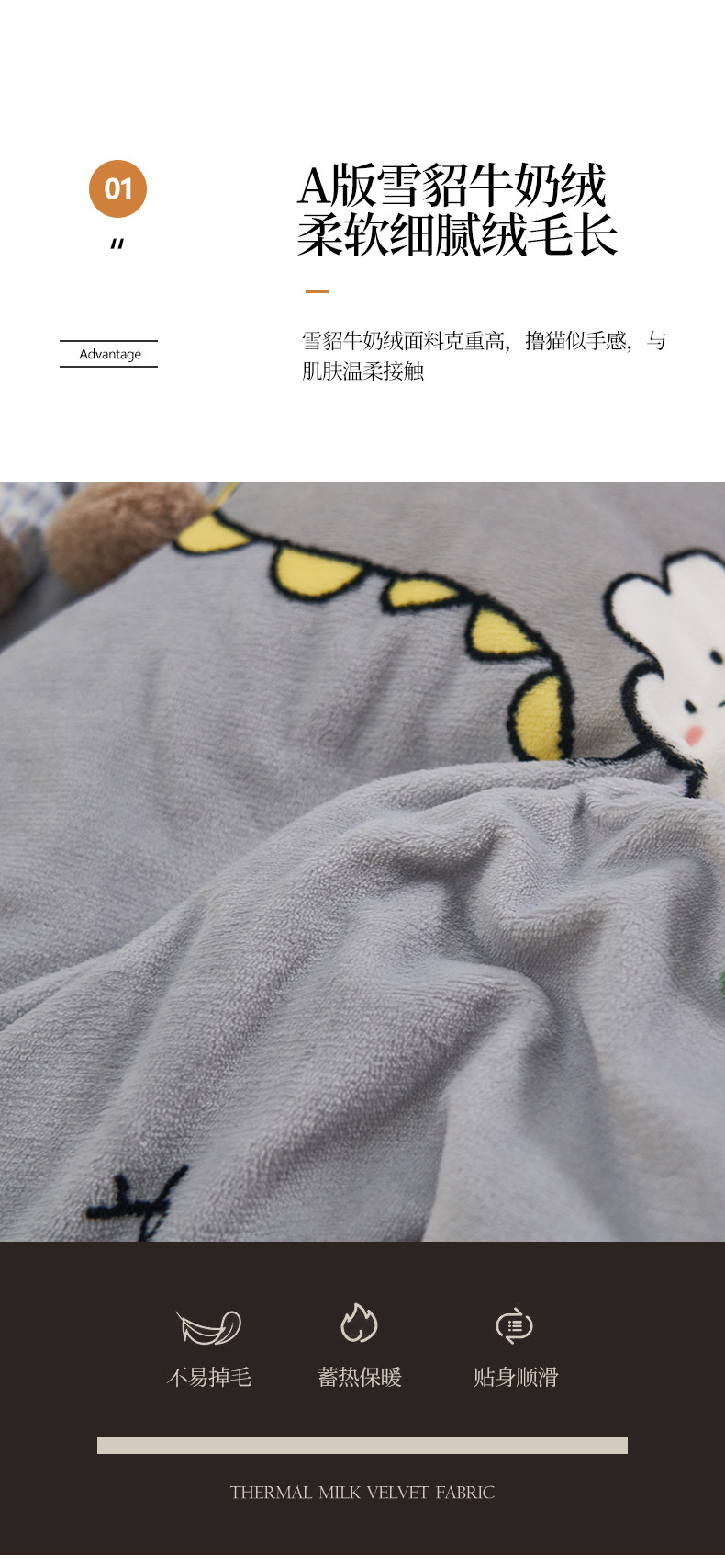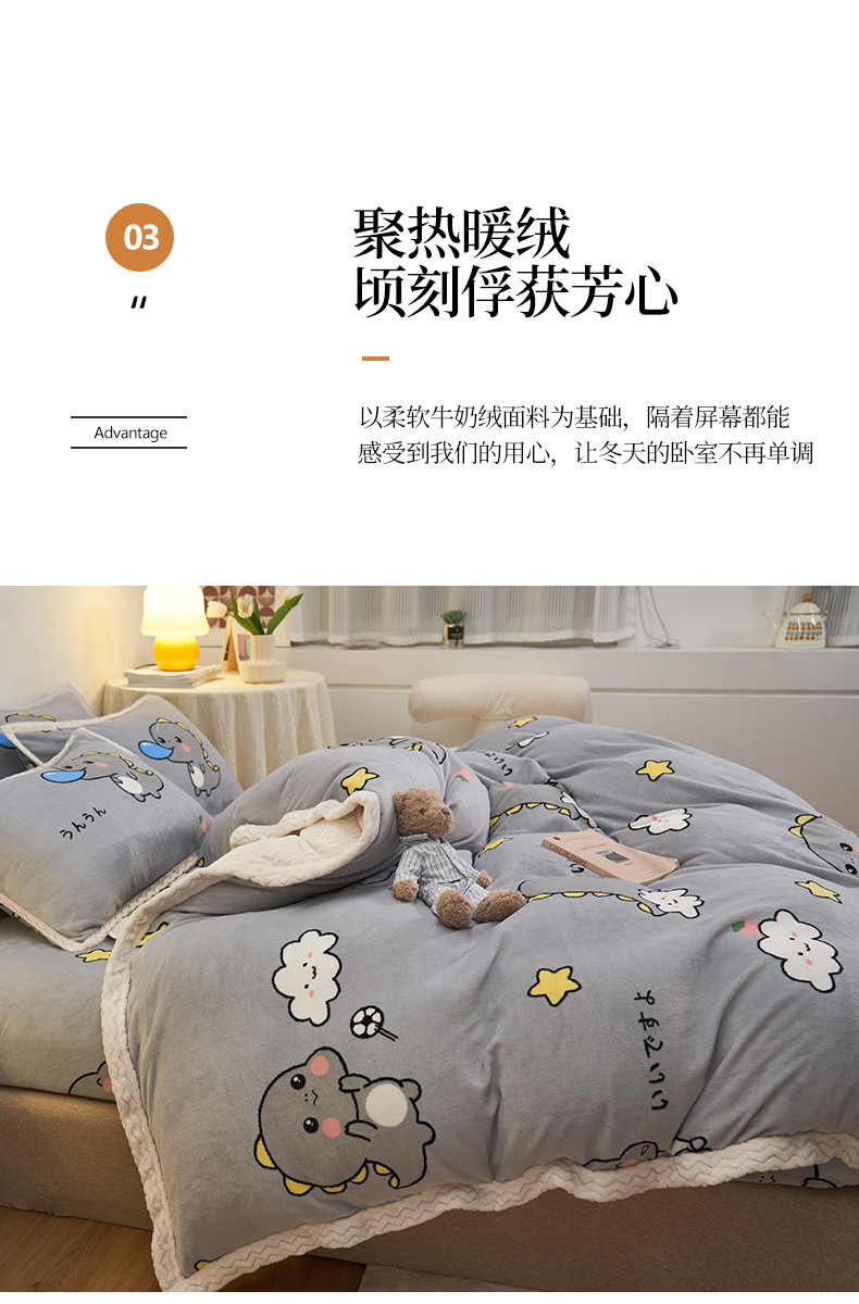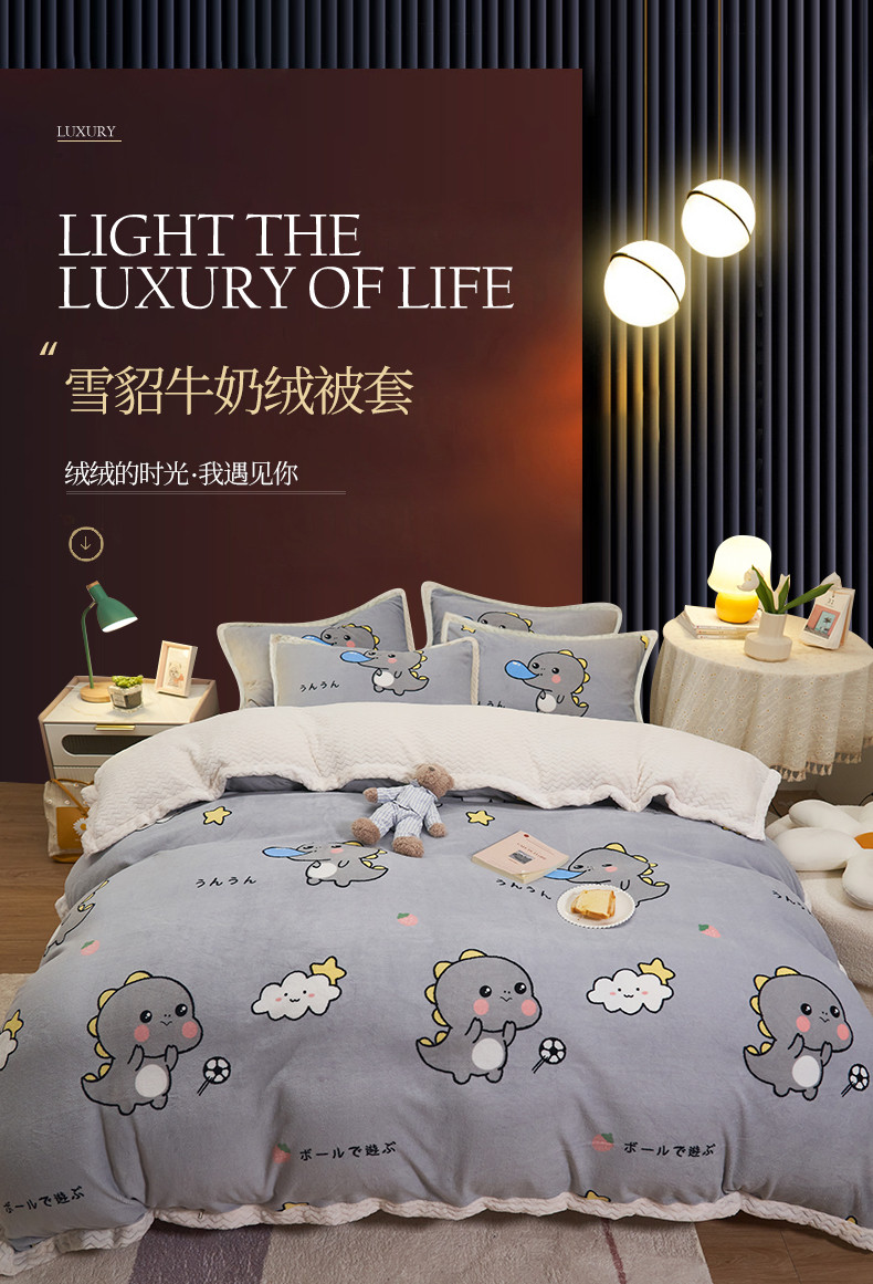 全季家居 2023新款纯色印花抗静电大包边牛奶绒贝贝绒单被套 快乐恐龙