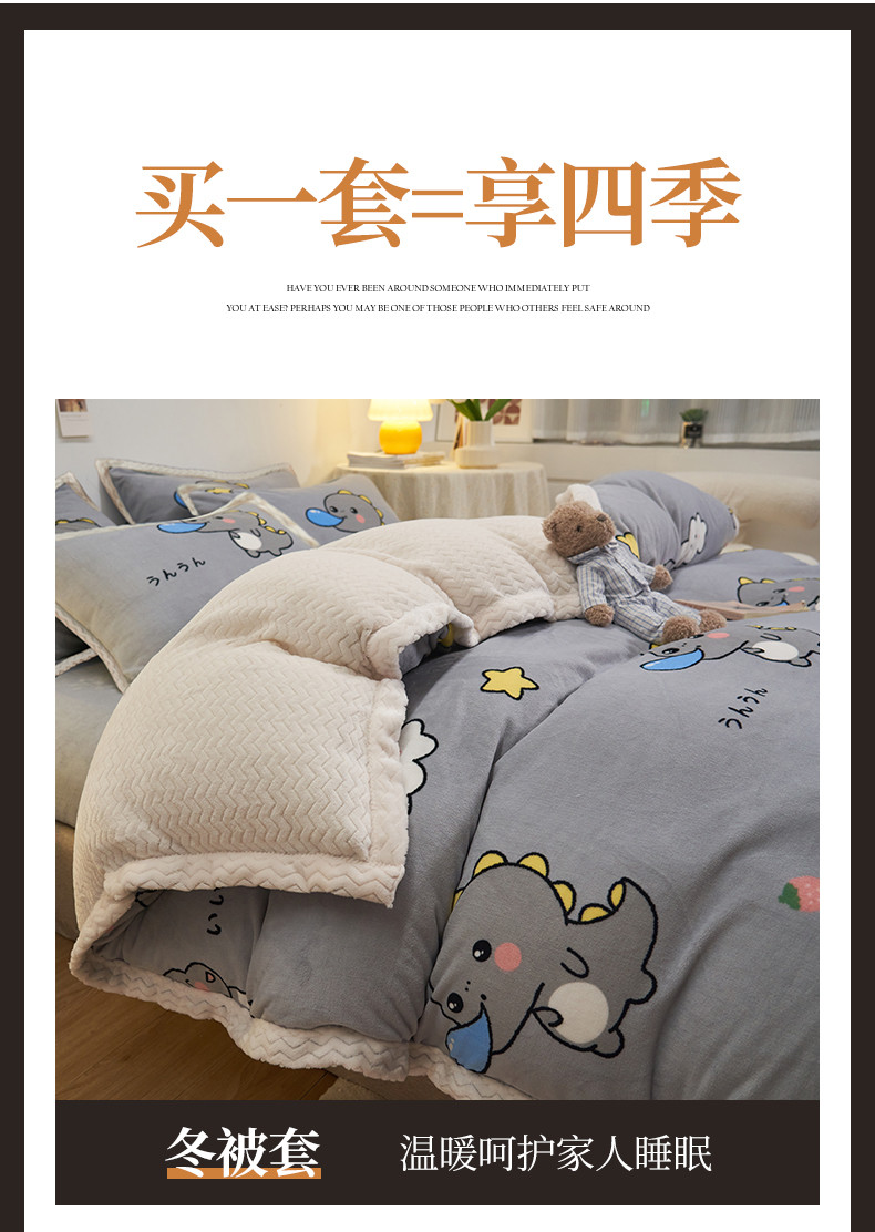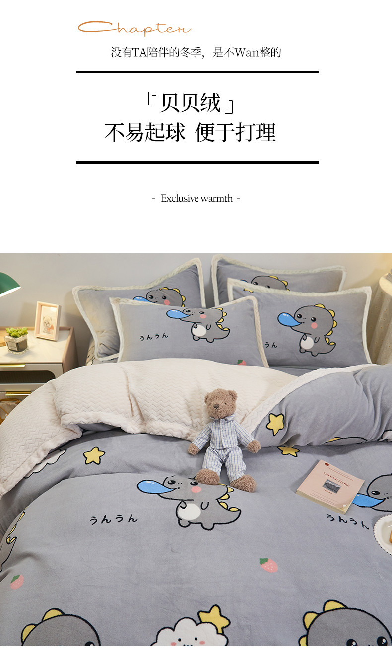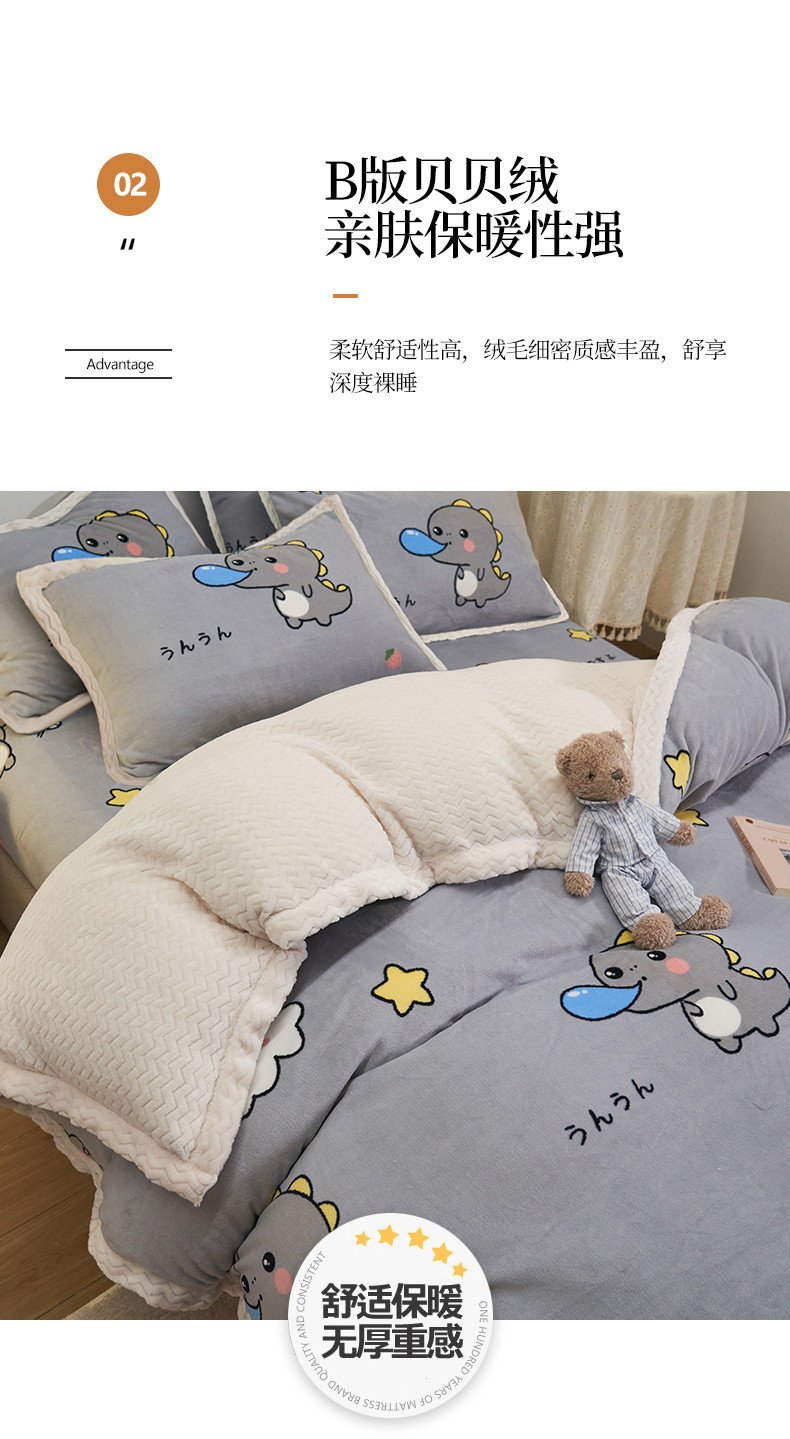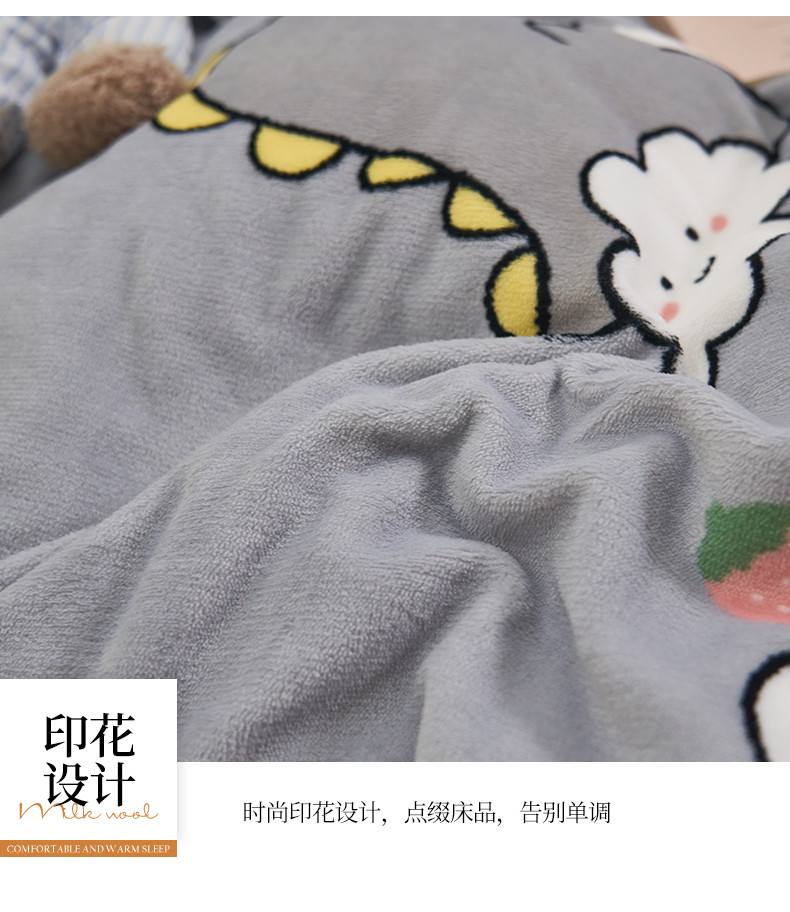 商品名称:全季家居 2023新款纯色印花抗静电大包边牛奶绒贝贝绒单被套 快乐恐龙