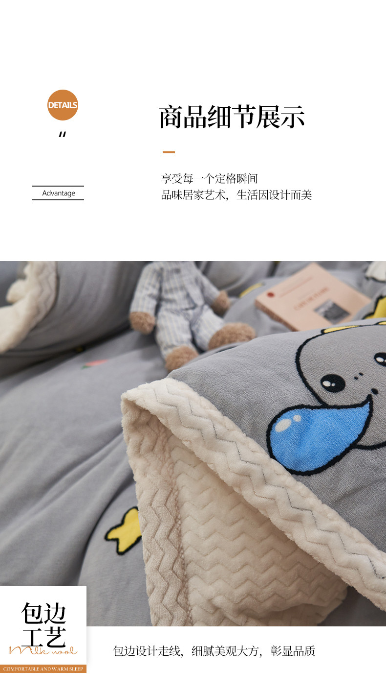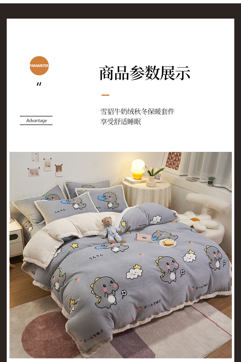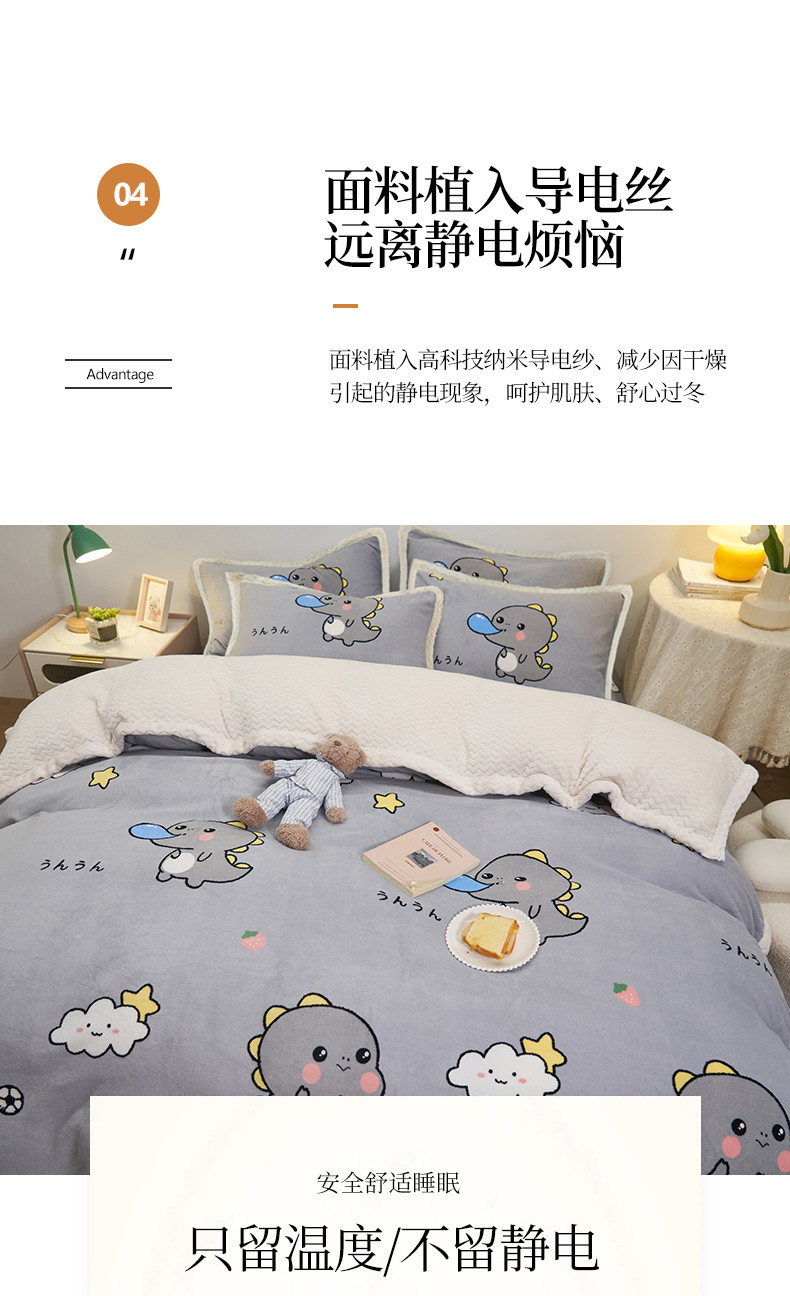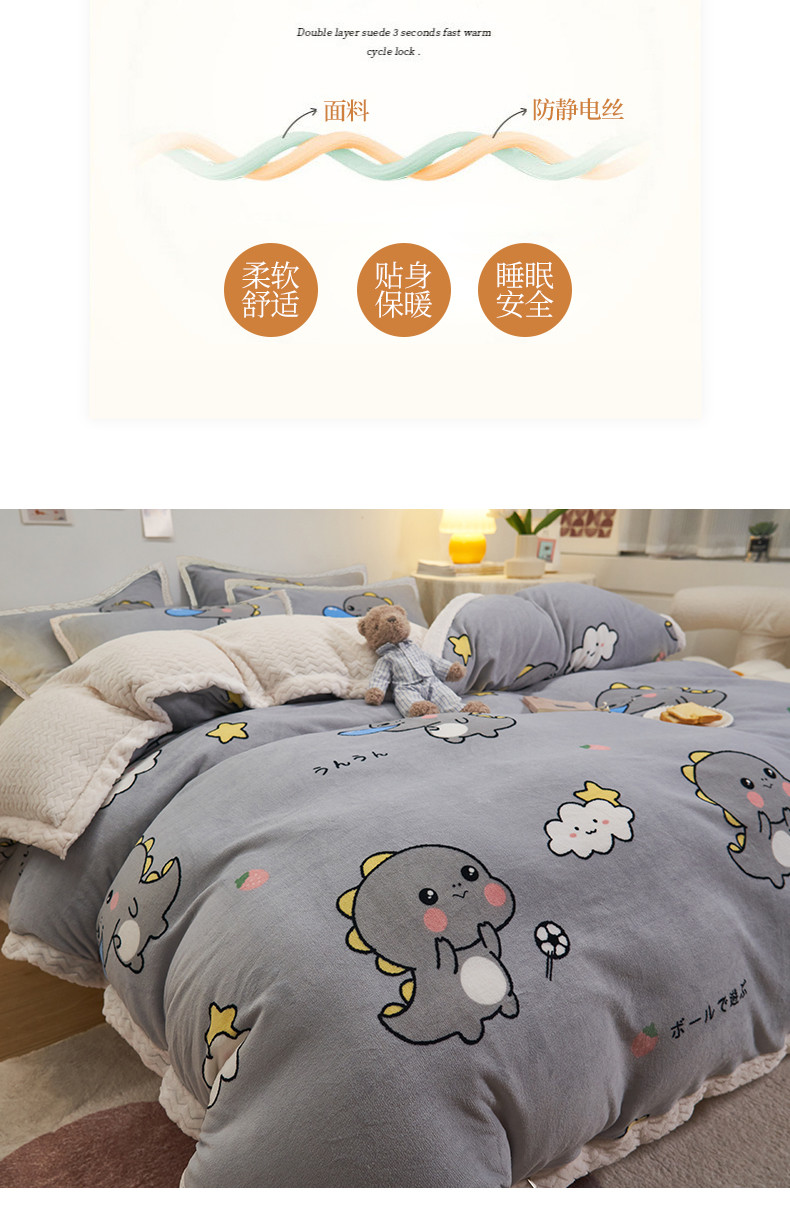 商品名称:全季家居 2023新款纯色印花抗静电大包边牛奶绒贝贝绒单被套 快乐恐龙