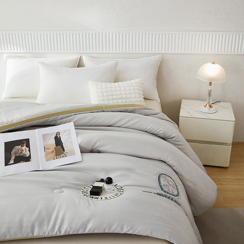 (总)丽卡家纺 2025新款小清新全棉纯棉夏被夏凉被空调被四件套,爱尔兰-粉,柏林花事-紫,落雁花影-白,觅事-绿,未央-绿,惜春-绿,香雪海-绿,约克-米金,月野-灰
