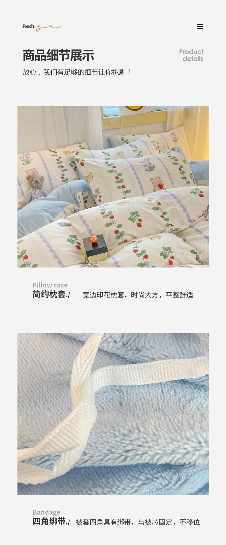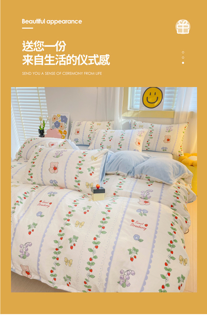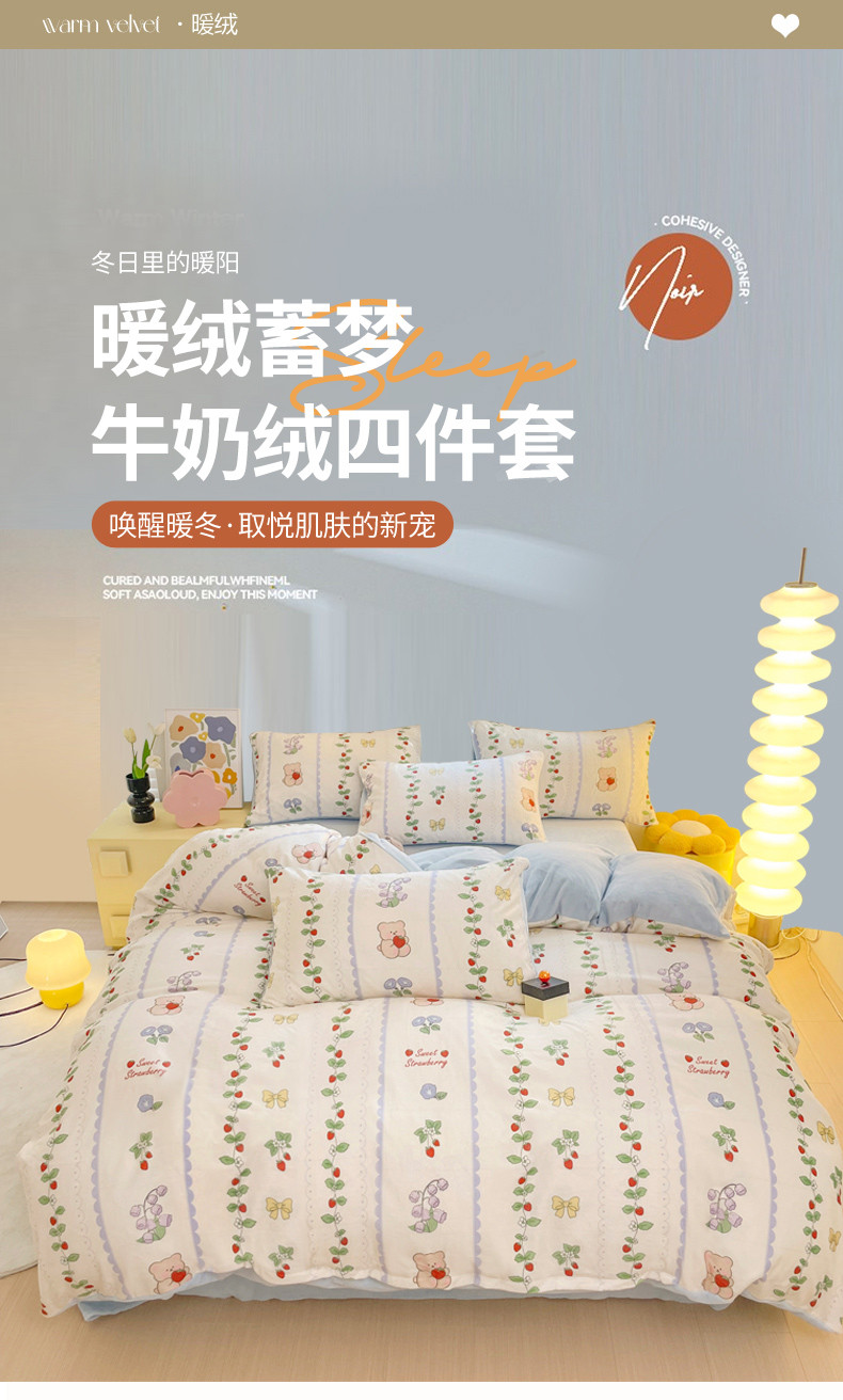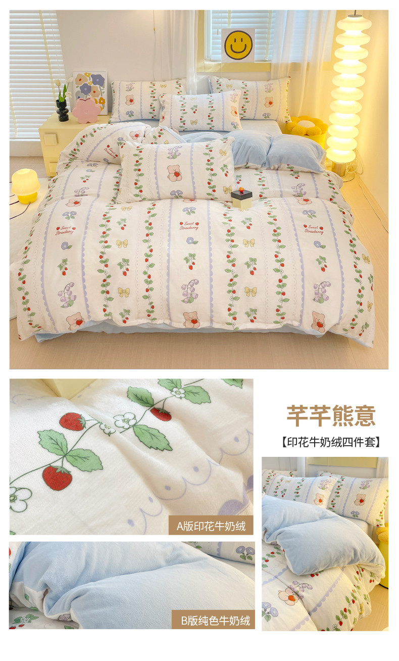当前位置: 91家纺网 > 商品网购 > 床品套件 > 四件套 > 牛奶绒四件套 > 梦柏家纺 2023新款高克重牛奶绒印花四件套 芊芊熊意
