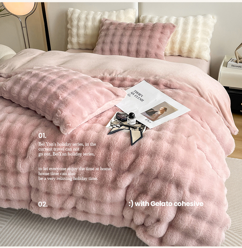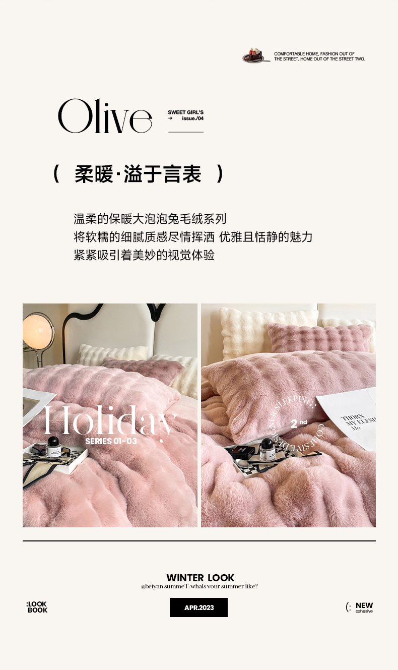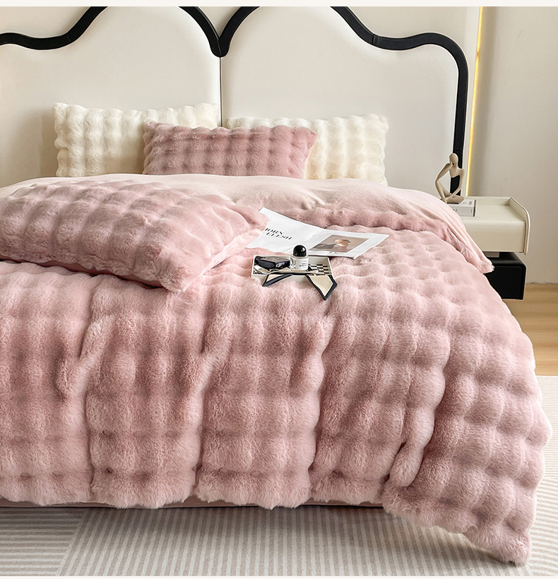 寐居家纺 2023新款高克重大泡泡兔毛绒四件套系列 粉豆沙