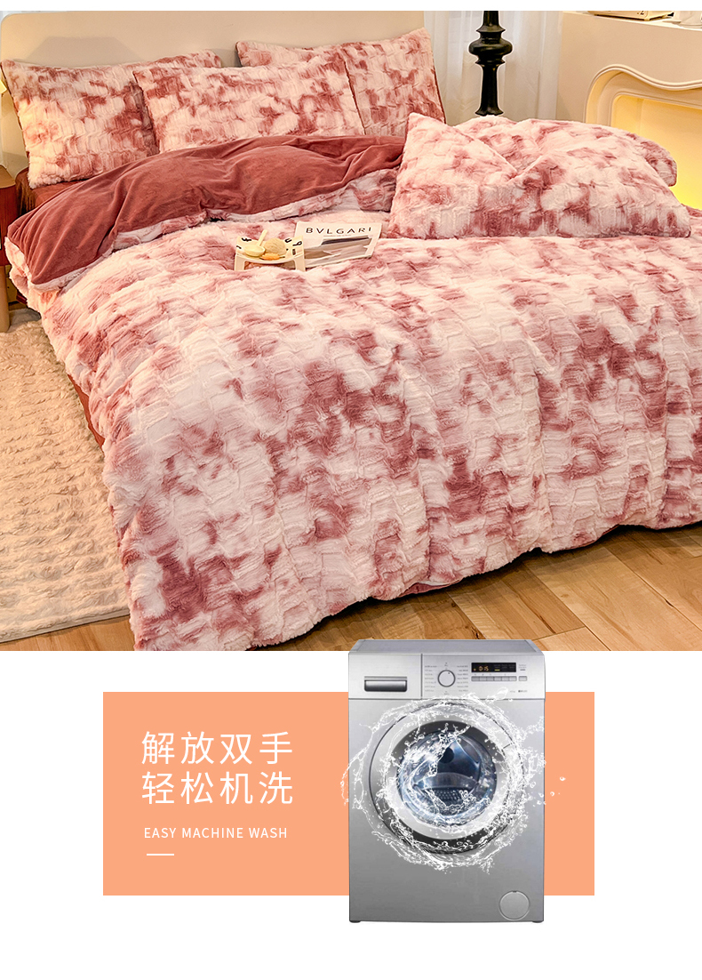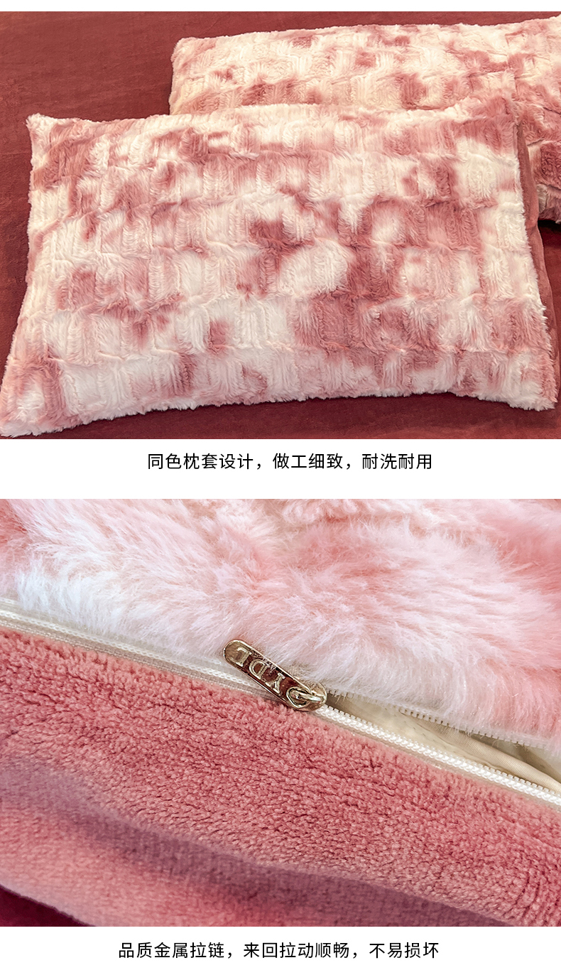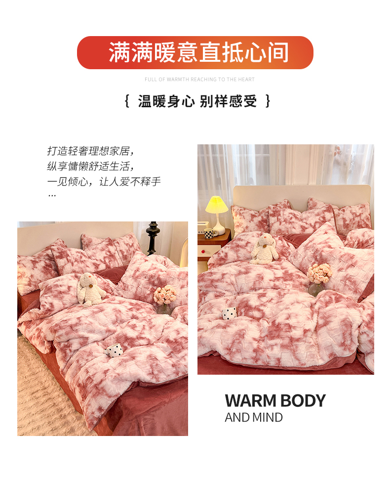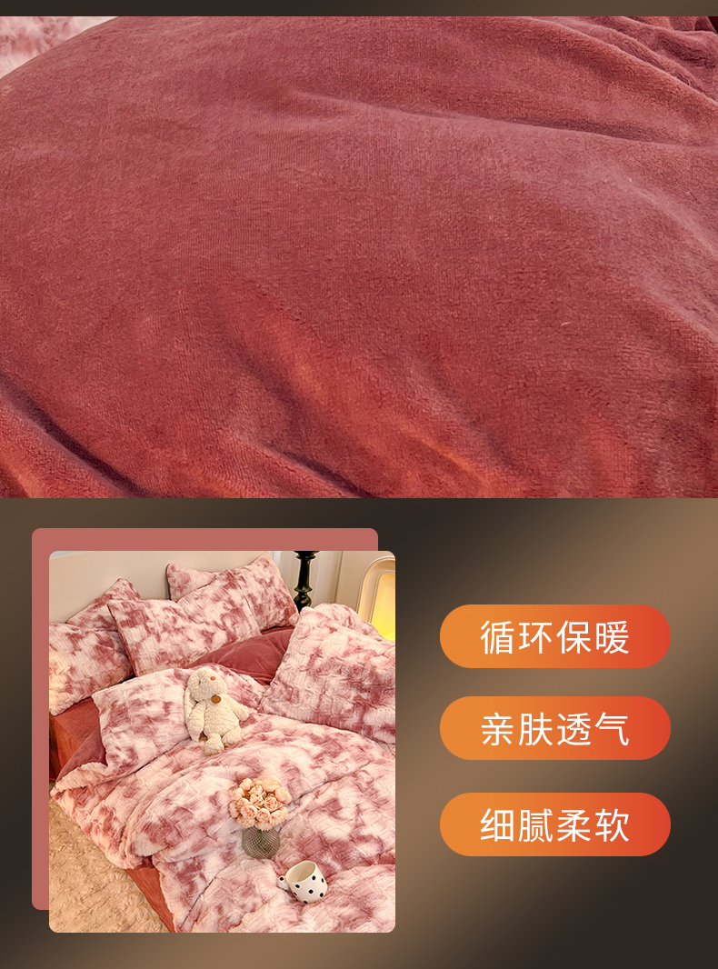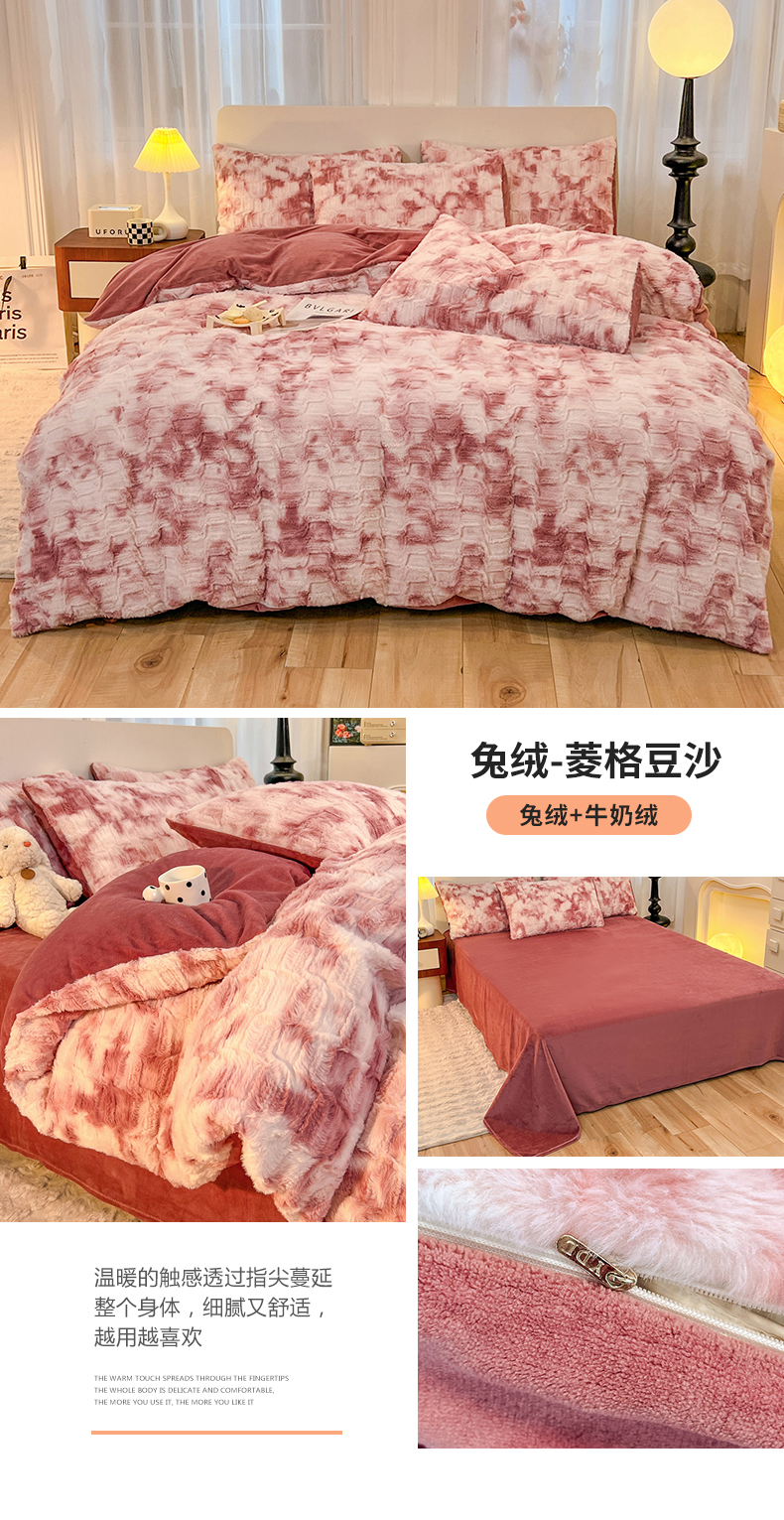 商品名称:慕晨 2023新款兔绒牛奶绒菱格保暖四件套 兔绒-菱格豆沙