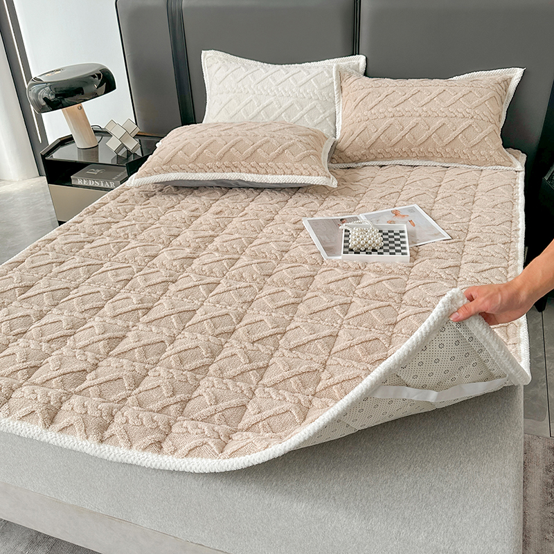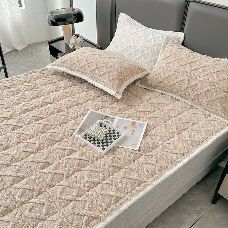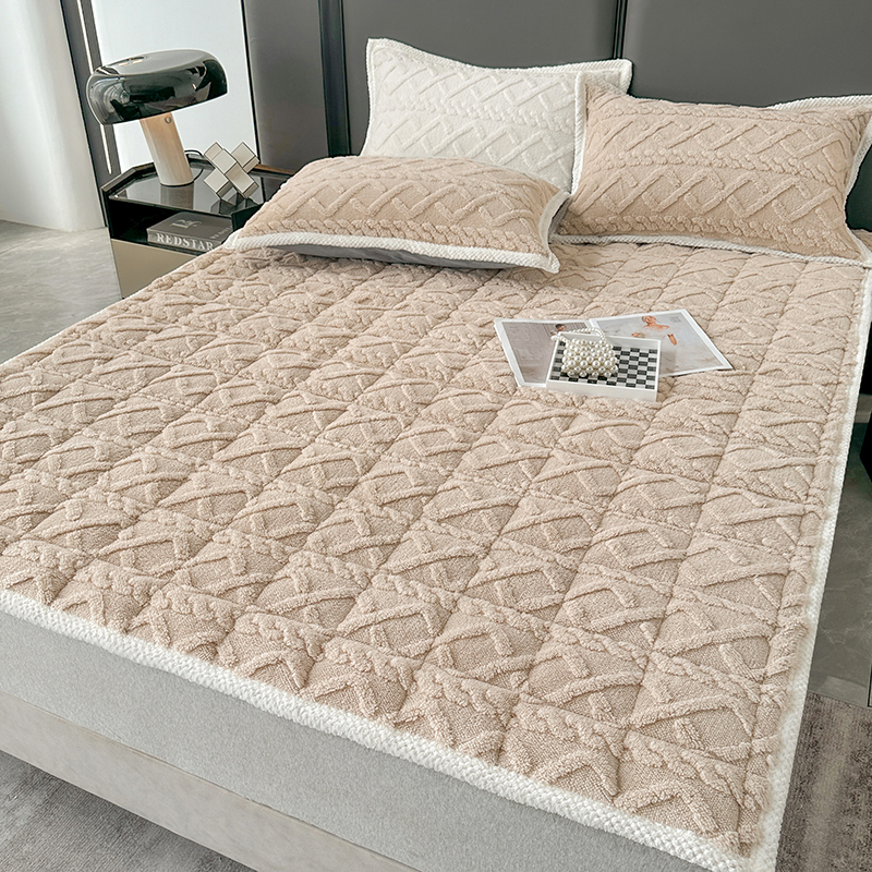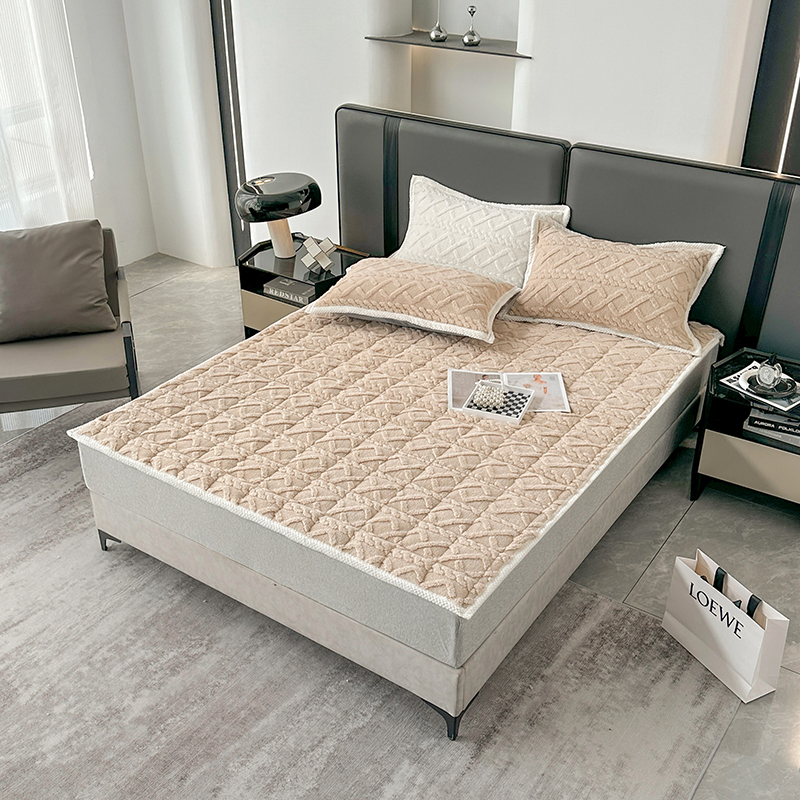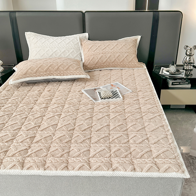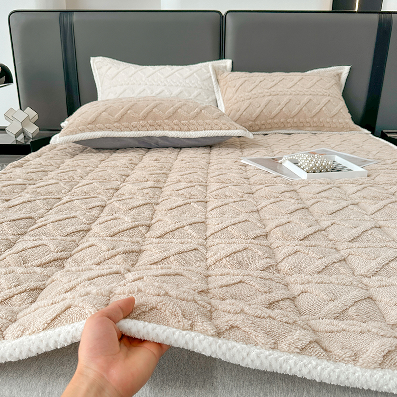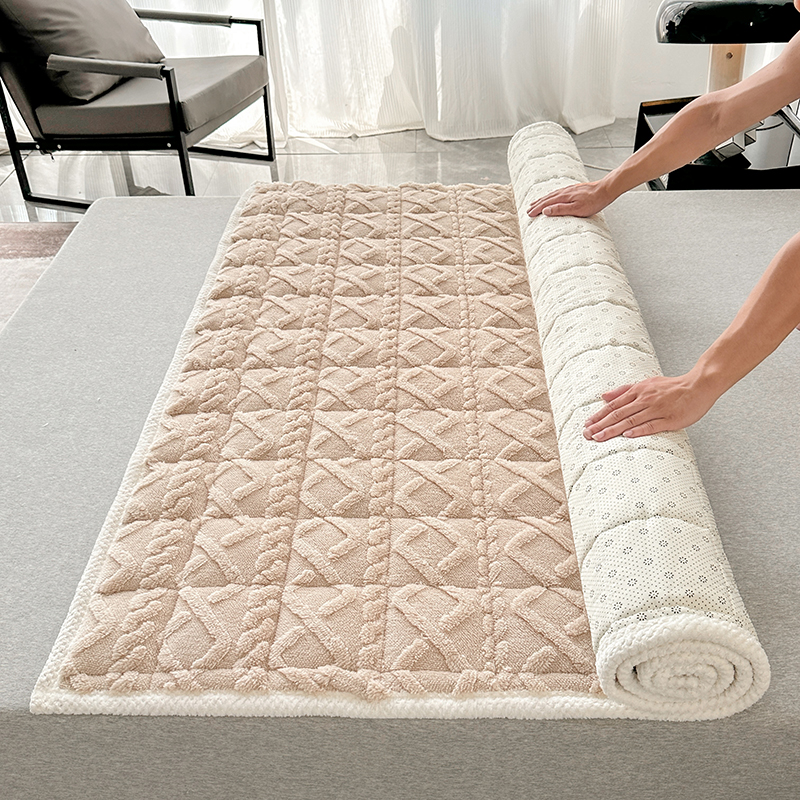 纽缦家纺 2023新款纯色兔兔绒塔芙绒夹棉床垫 卡其
