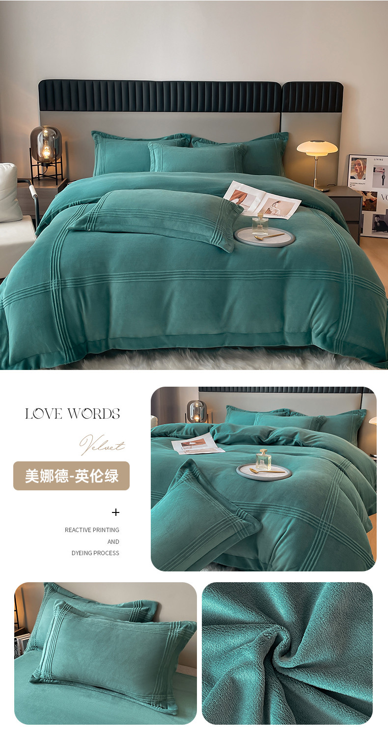 总米瑞娜 轻奢风A类母婴级埋绳款高克重牛奶绒婴儿宝宝绒四件套-美娜德