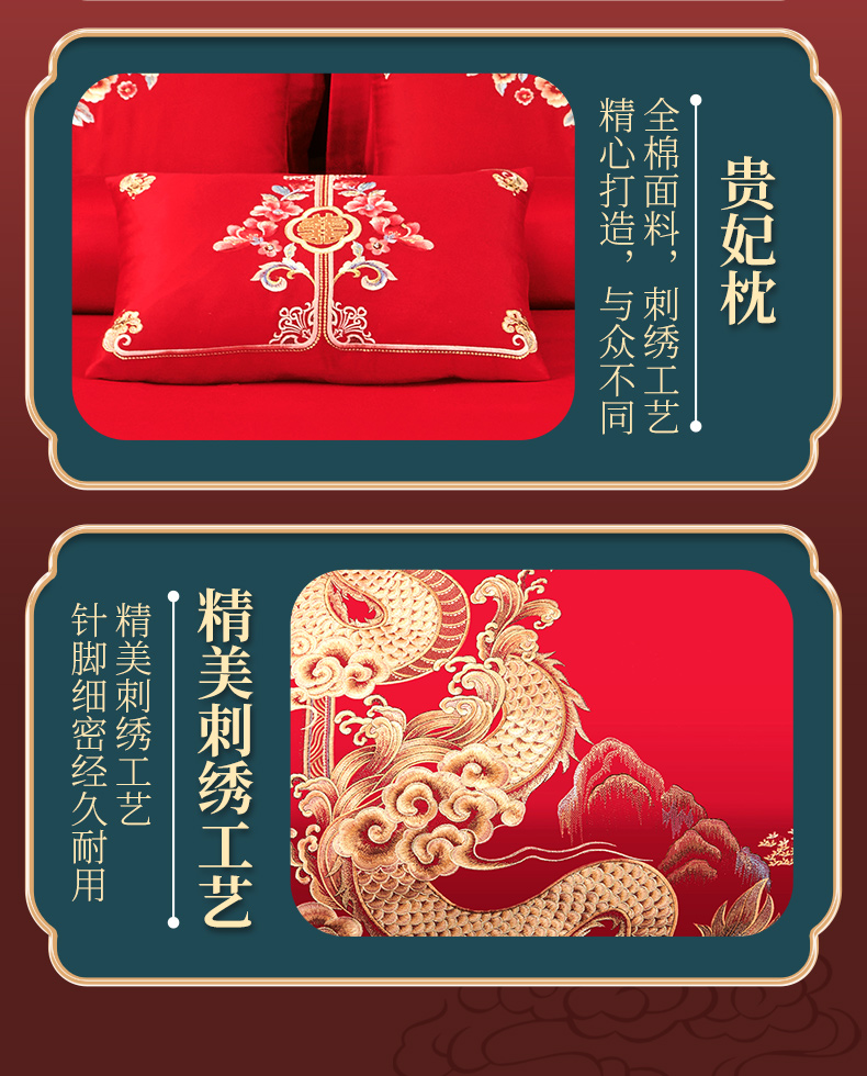 (总)皇潮婚庆馆 新款新疆长绒棉高端婚庆刺绣四件套,龙凤合玺,祥龙禧凤