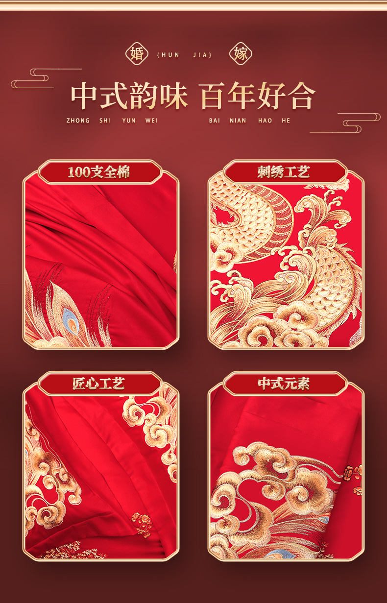 (总)皇潮婚庆馆 2025新款A类布款全棉刺绣婚庆四件套系列,花辰喜盈,百子送喜,龙悦凤鸣,喜事连连,喜迎鸿运