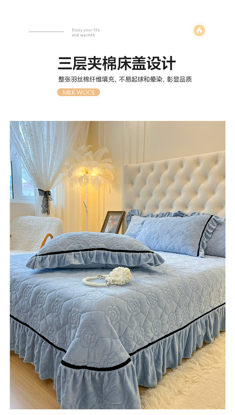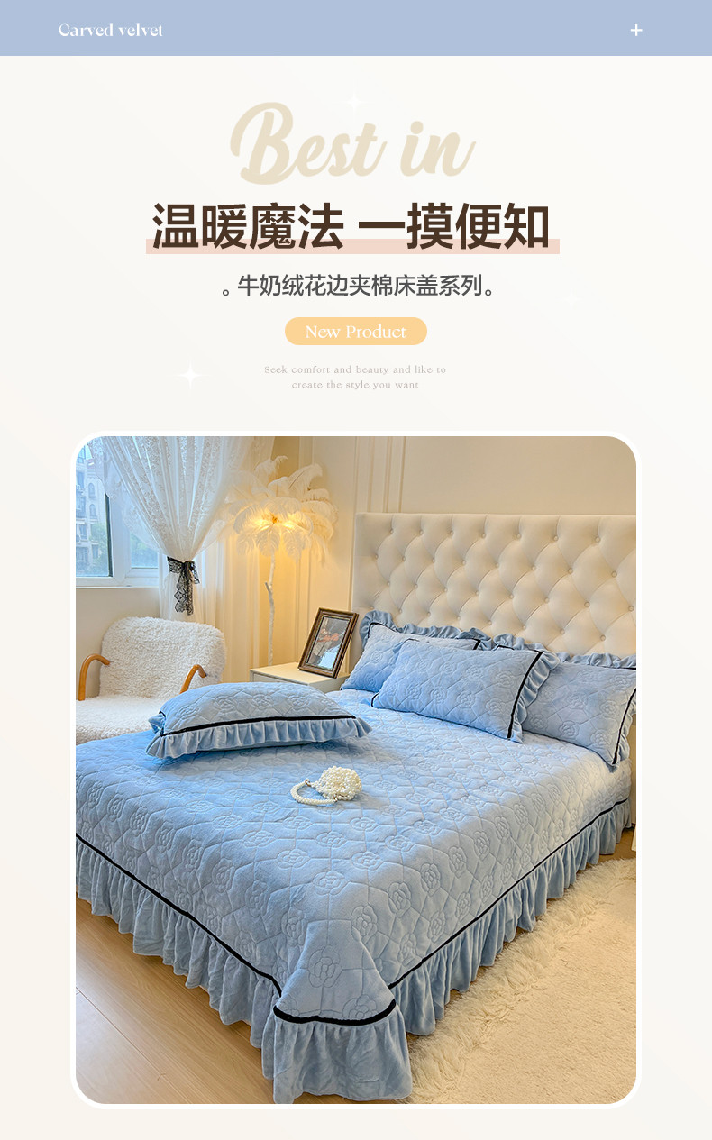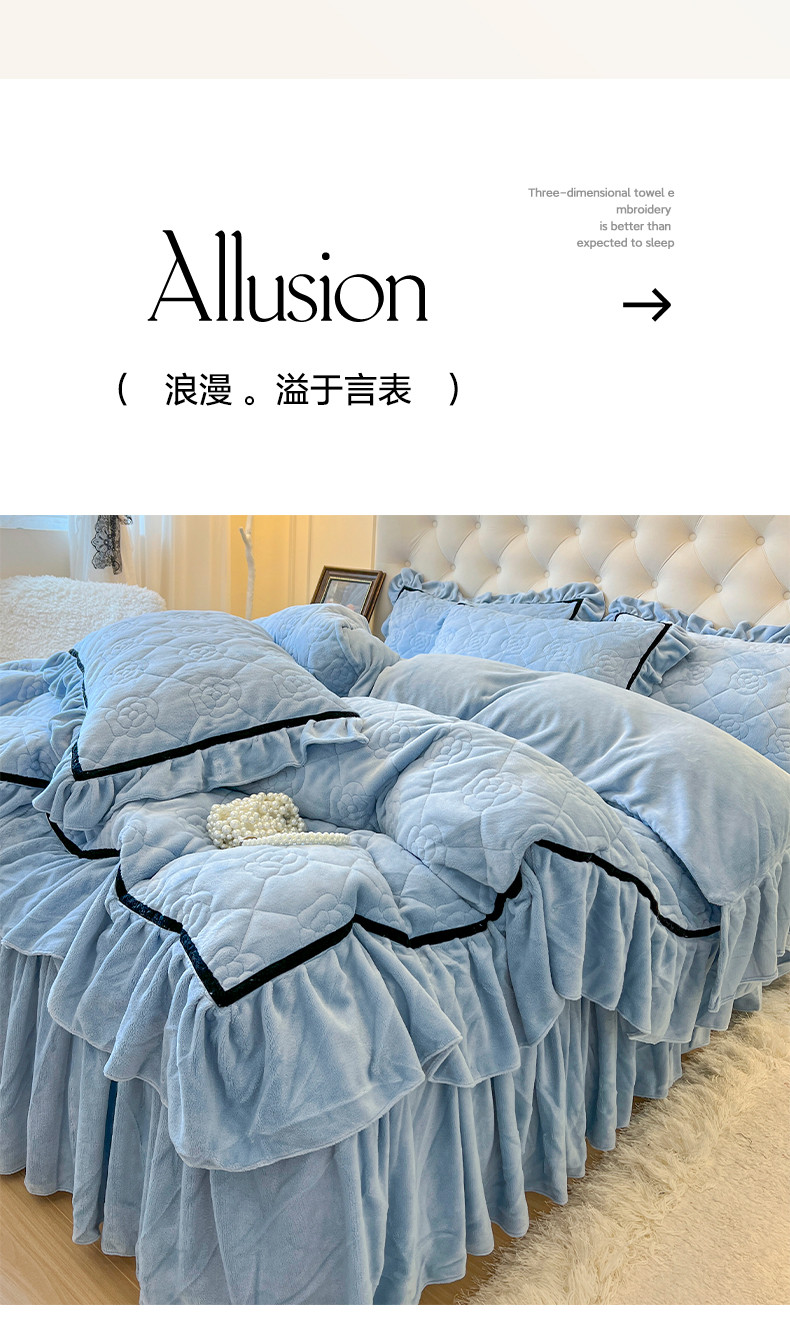 (总)网红馆(ck家纺) 2025新款色织提花牛奶绒床裙四件套-洛丽塔系列,洛丽塔-豆沙,洛丽塔-蓝色,洛丽塔-米色