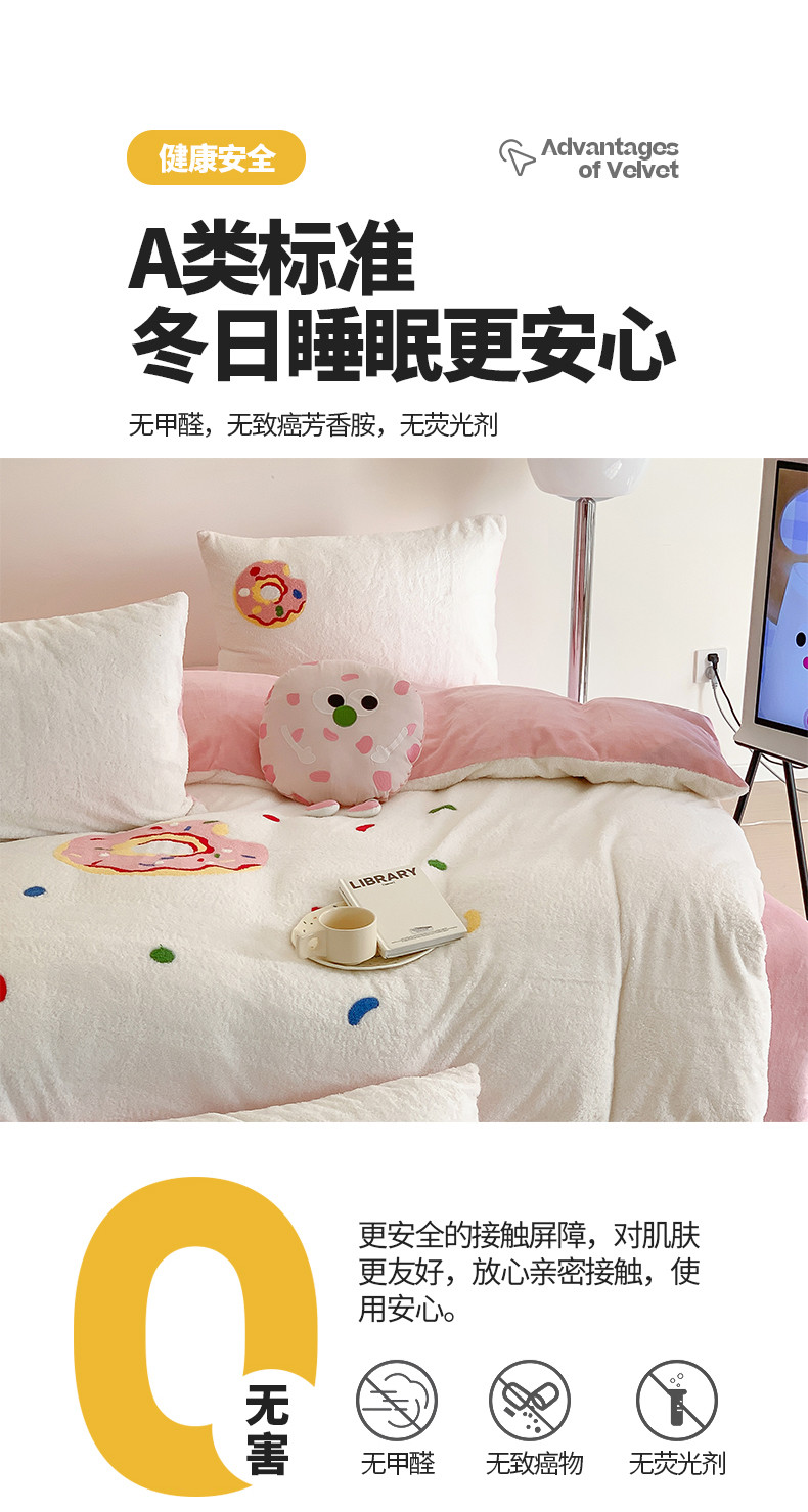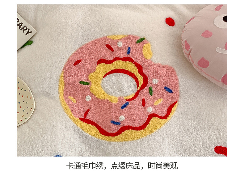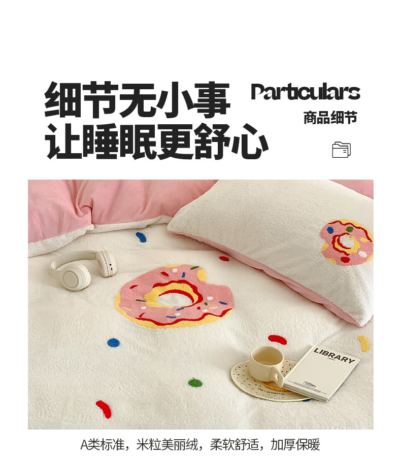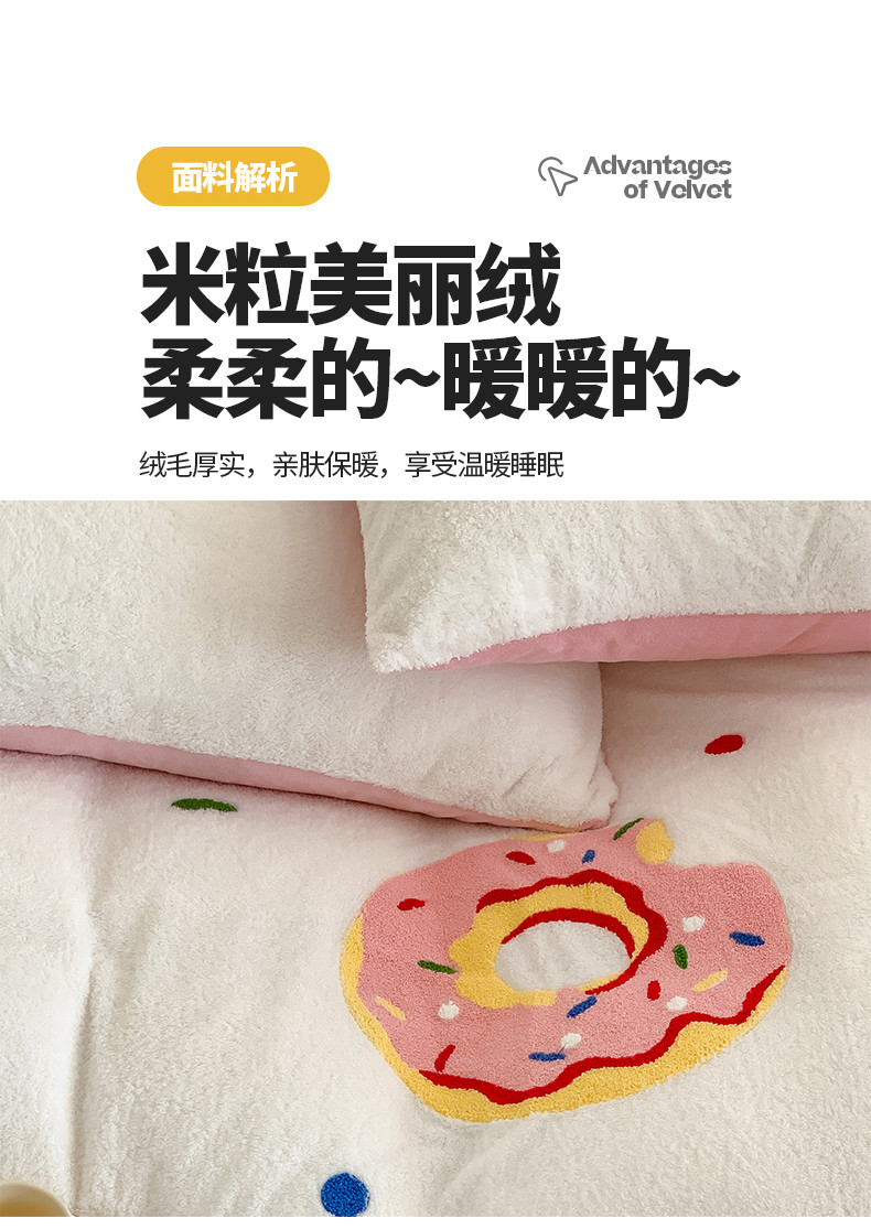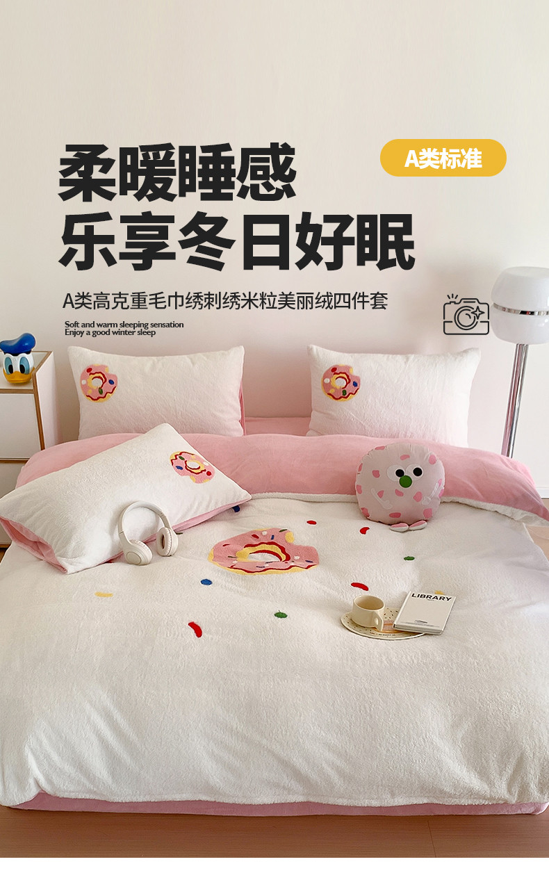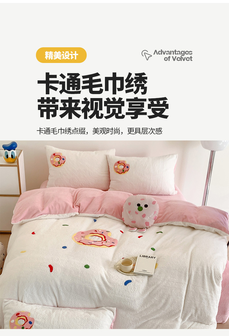 桃子家居 2023新款A类高克重毛巾绣刺绣米粒美丽绒牛奶绒四件套 绒毛巾绣-甜甜圈