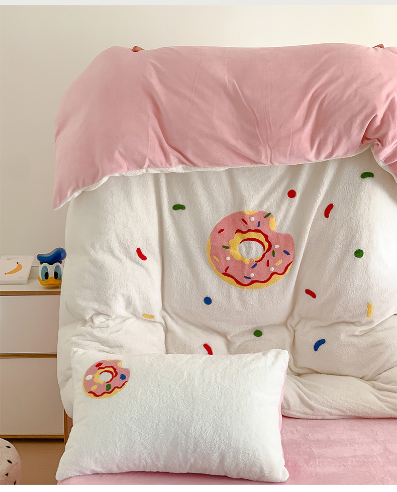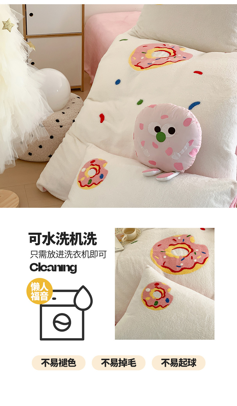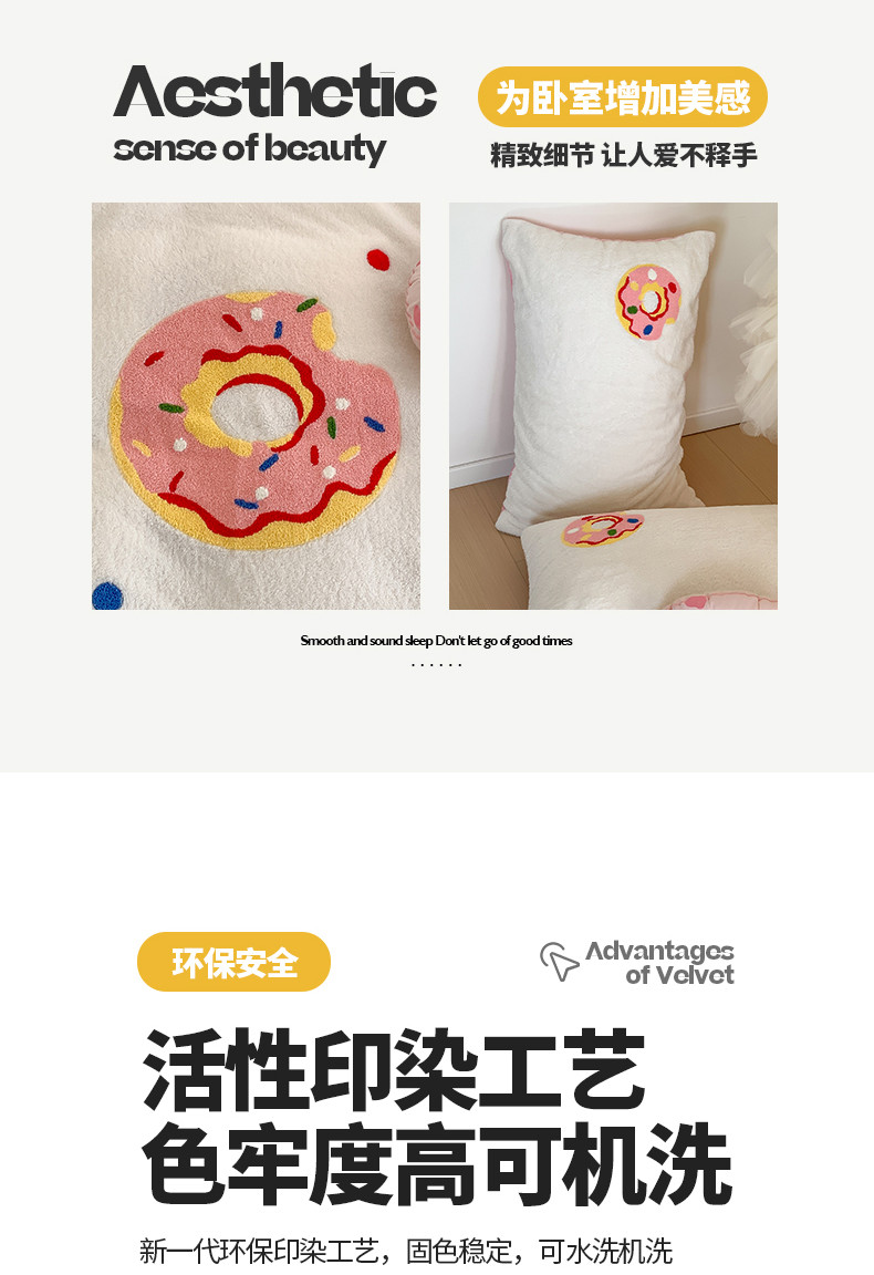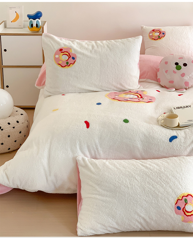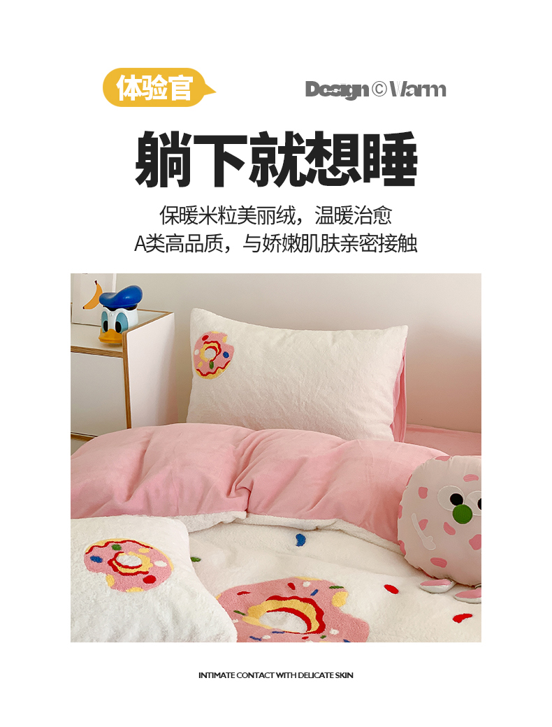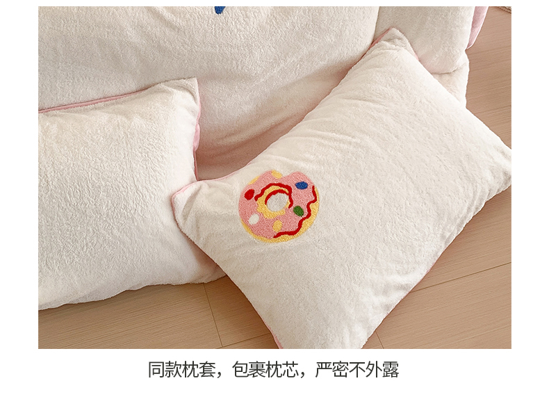 桃子家居 2023新款A类高克重毛巾绣刺绣米粒美丽绒牛奶绒四件套 绒毛巾绣-甜甜圈