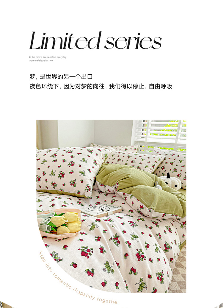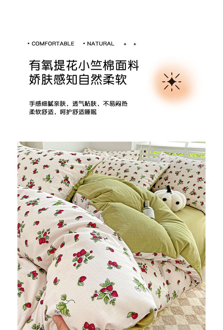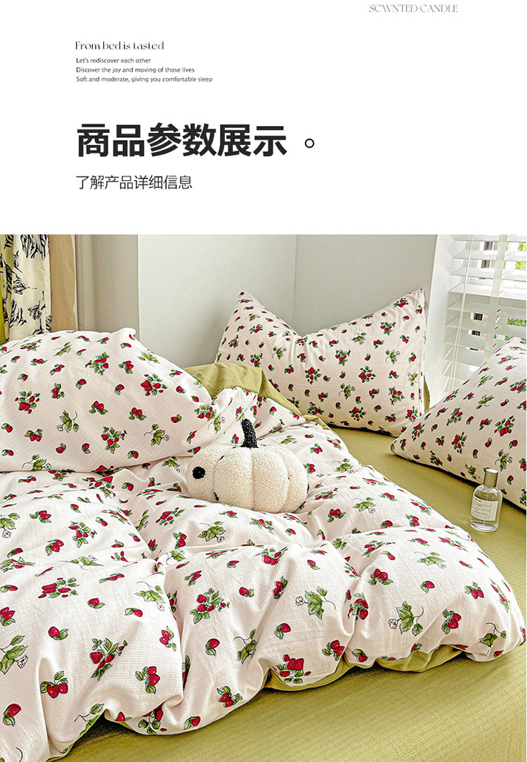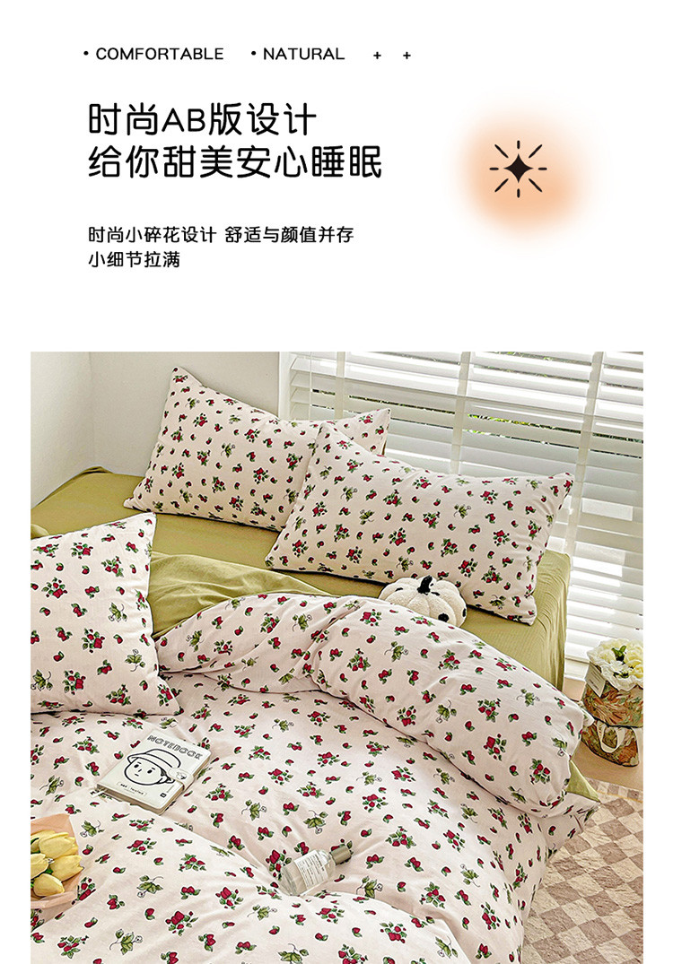 当前位置: 91家纺网 > 商品网购 > 床品套件 > 四件套 > 全棉普通四件套 > 暖芯优选2023新款超柔有氧小竺提花棉双层纱学生四件套 小草莓