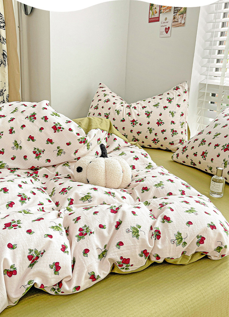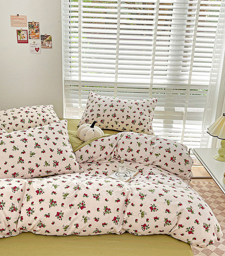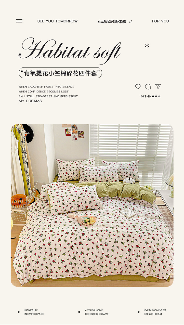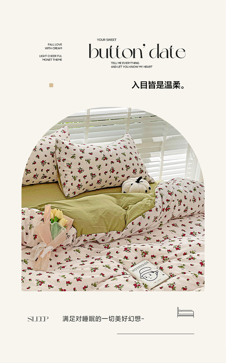 当前位置: 91家纺网 > 商品网购 > 床品套件 > 四件套 > 全棉普通四件套 > 暖芯优选2023新款超柔有氧小竺提花棉双层纱学生四件套 小草莓
