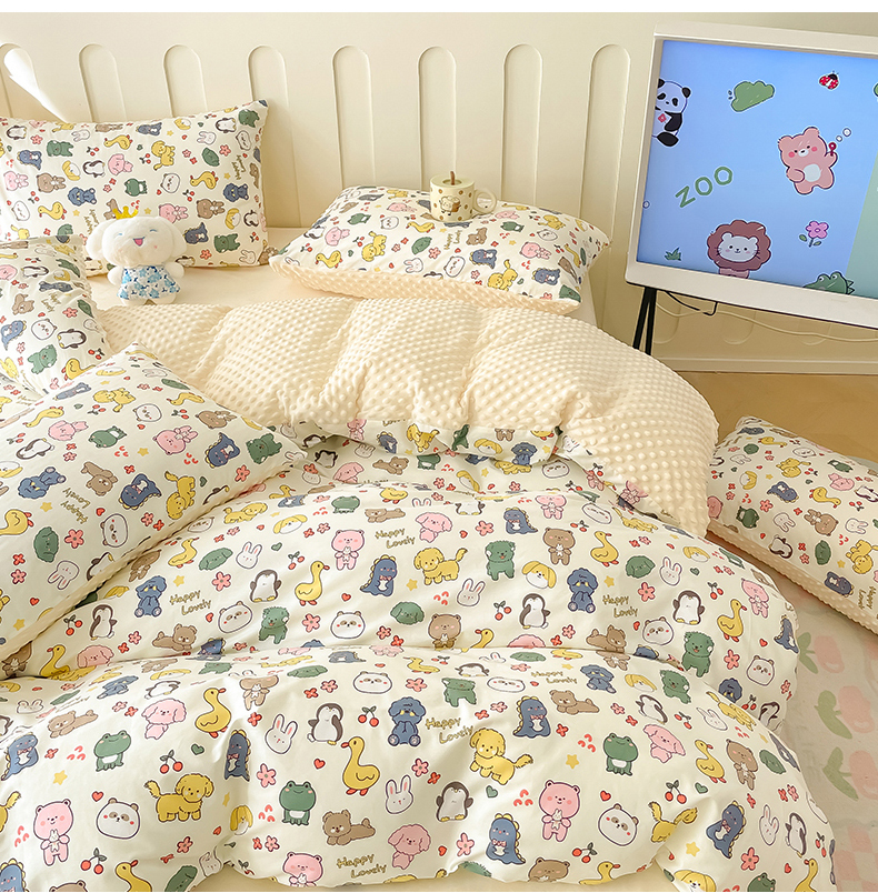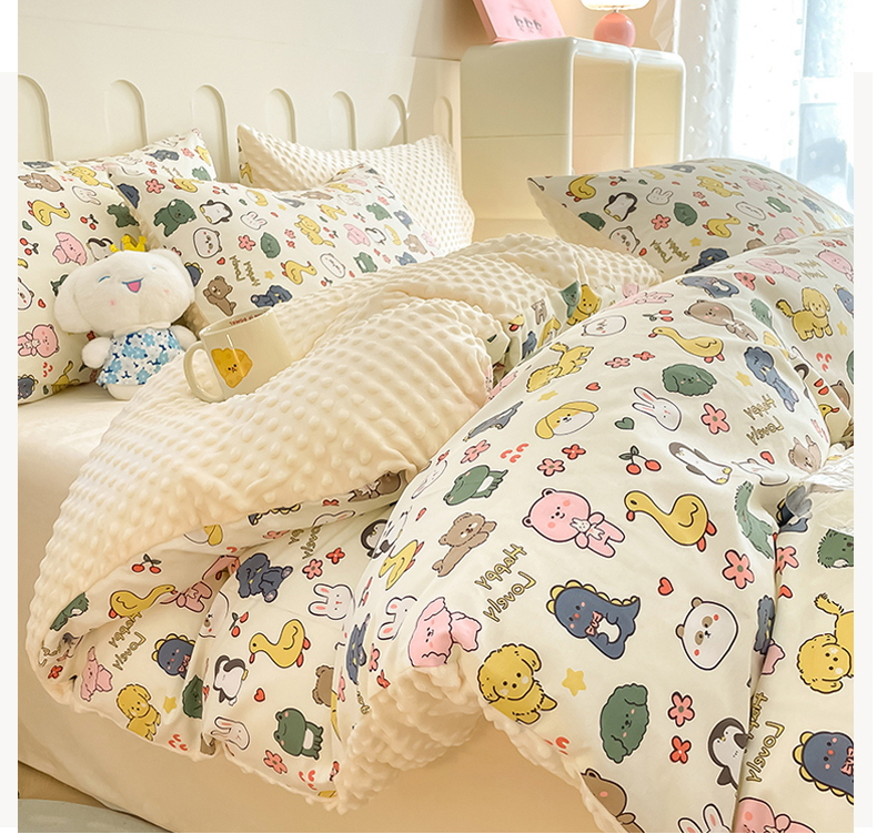 当前位置: 91家纺网 > 商品网购 > 床品套件 > 四件套 > 全棉普通四件套 > 麦伦家居 2023秋冬新品多功能床品全棉+豆豆绒四件套卡通小清新系列 快乐家族