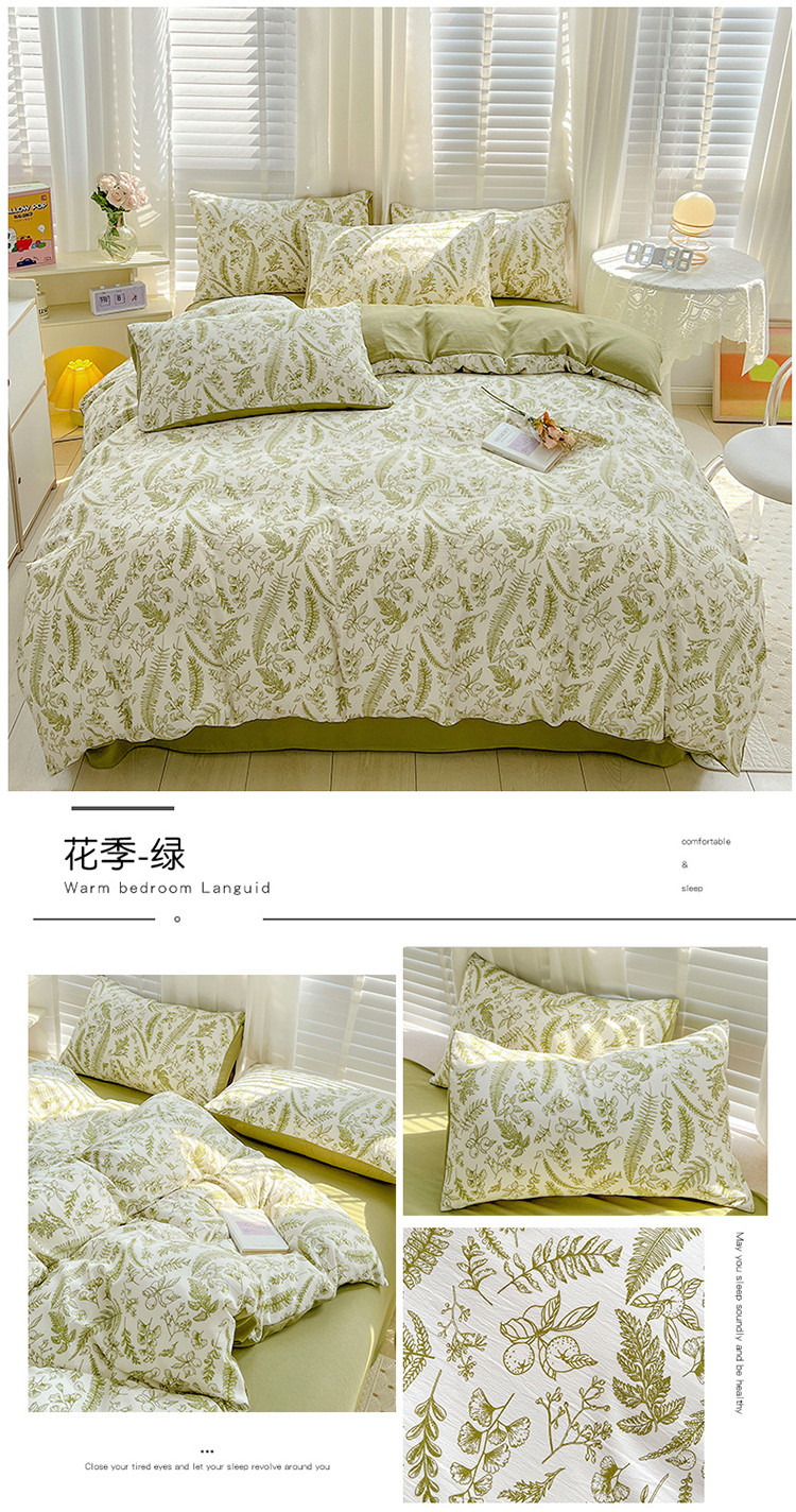 当前位置: 91家纺网 > 商品网购 > 床品套件 > 四件套 > 全棉普通四件套 > 暖芯优选 2023直播新款法式风双层纱棉麻水洗棉四件套 花季-绿