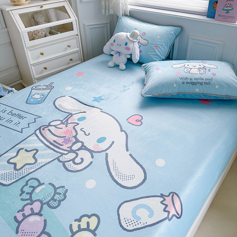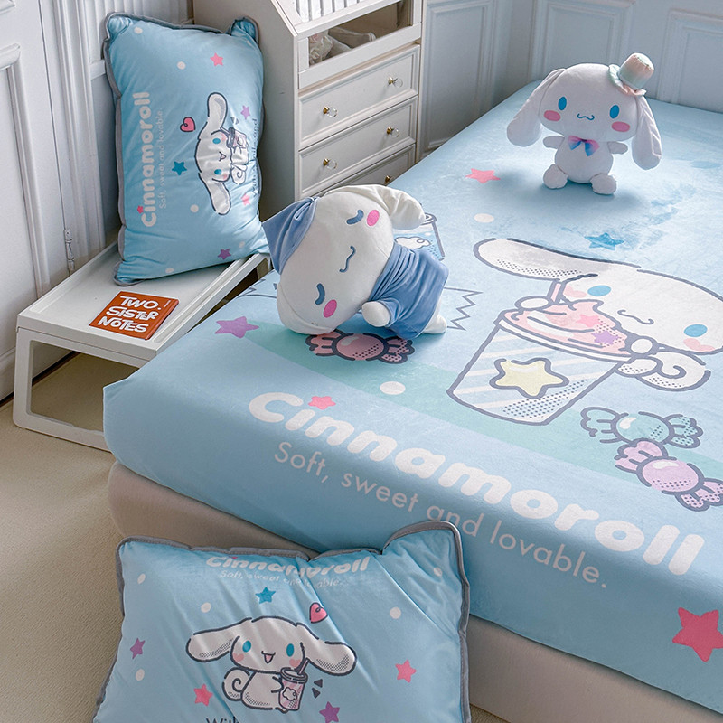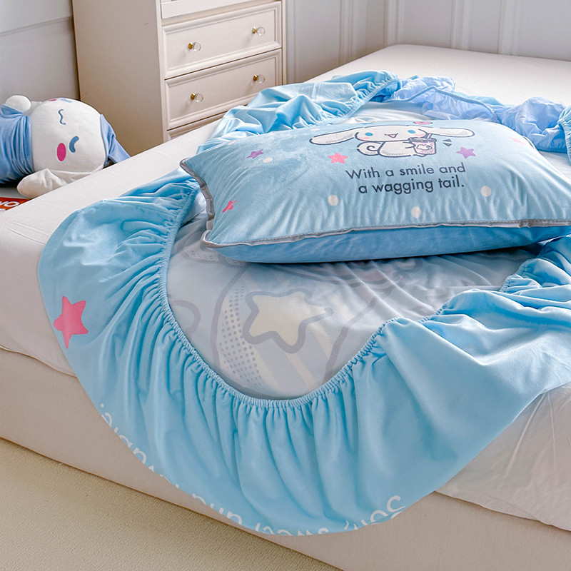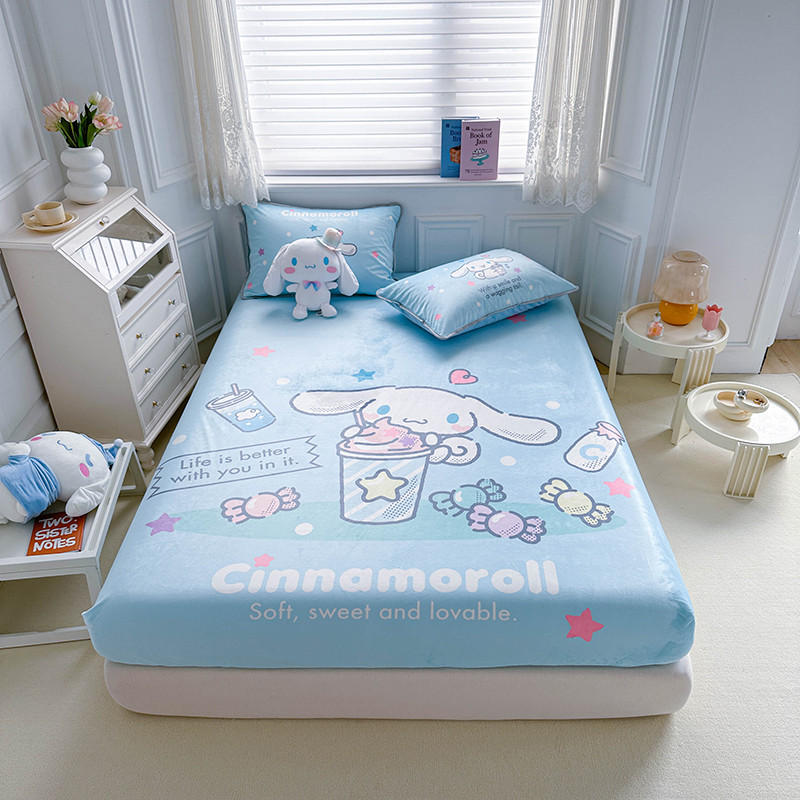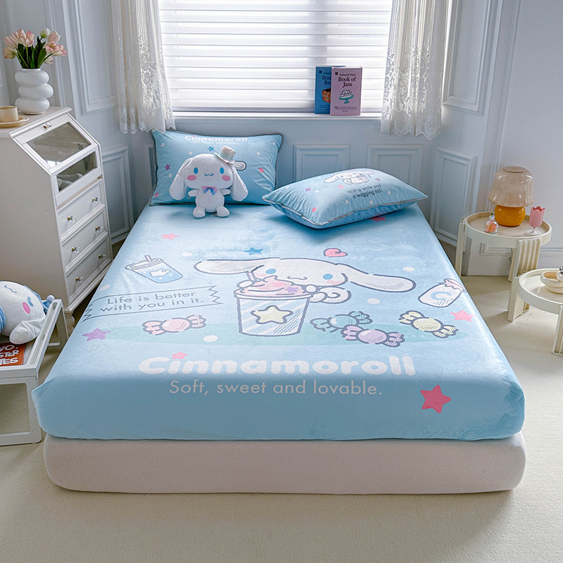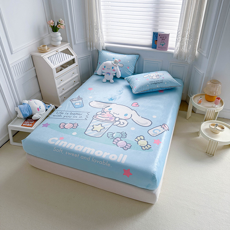 蘭菲家纺 2023新款宝宝绒卡通印花床笠 奶茶来了