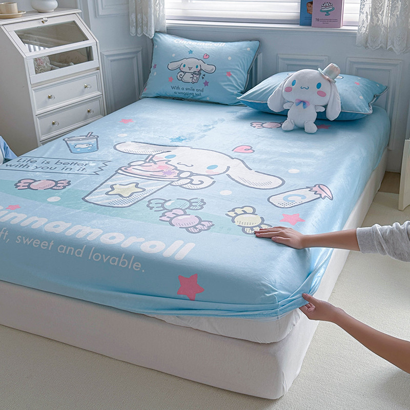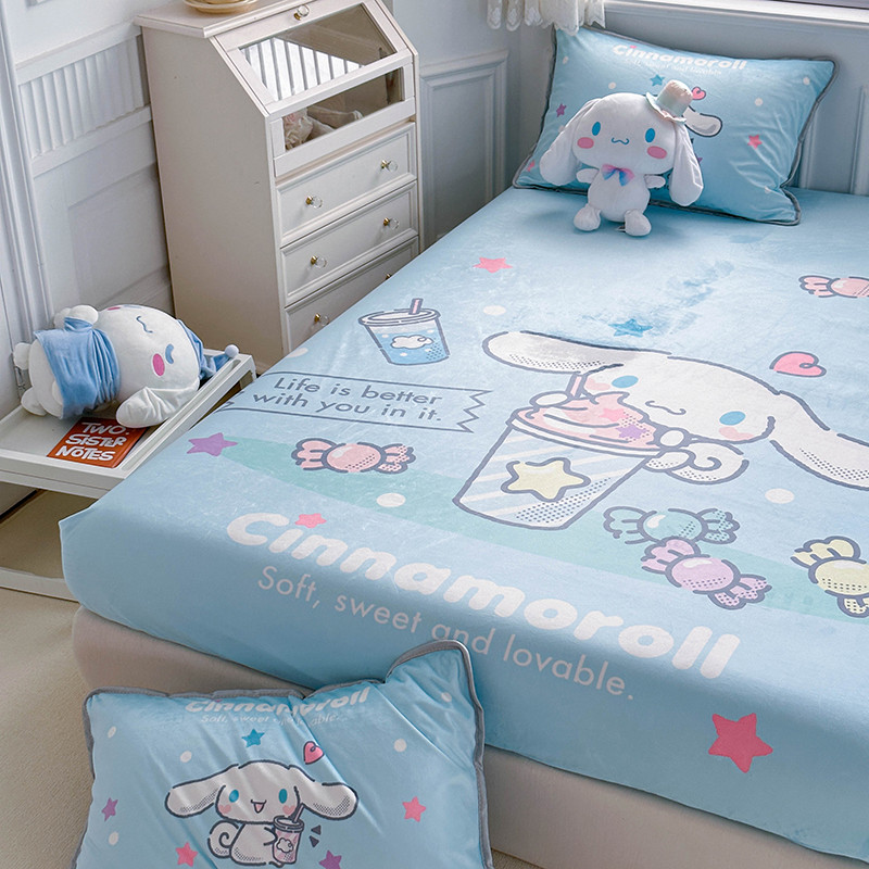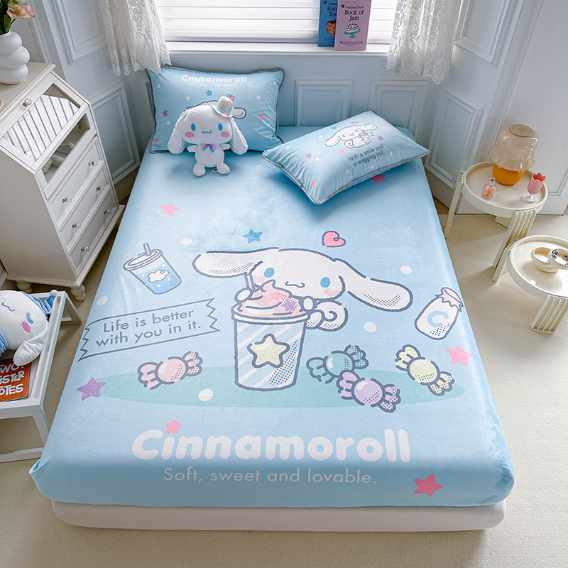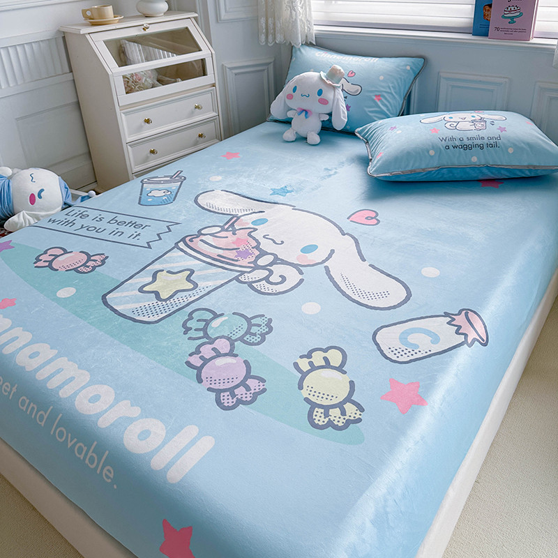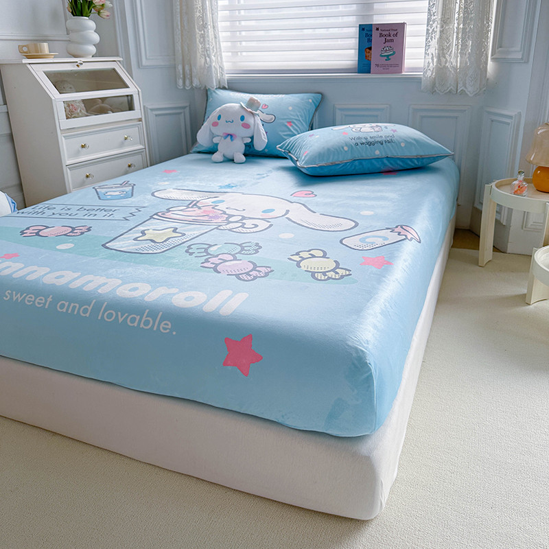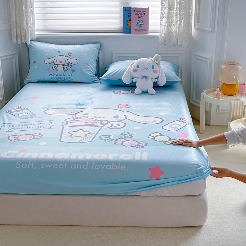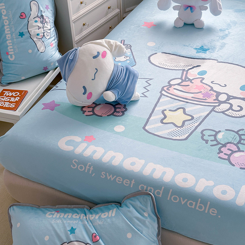 蘭菲家纺 2023新款宝宝绒卡通印花床笠 奶茶来了
