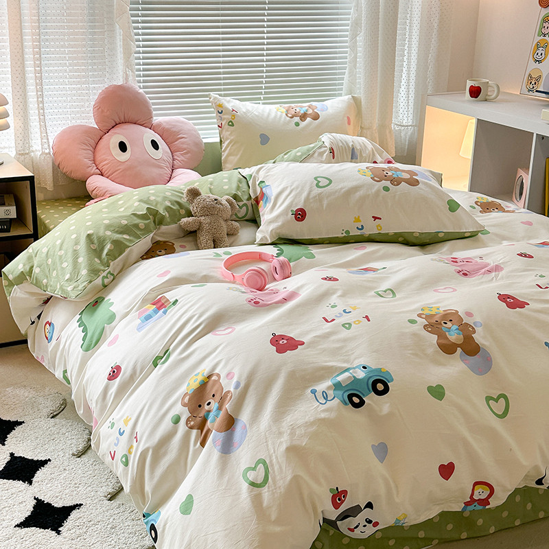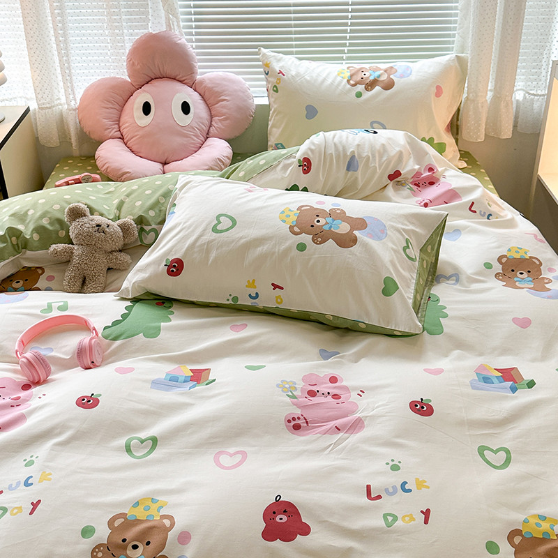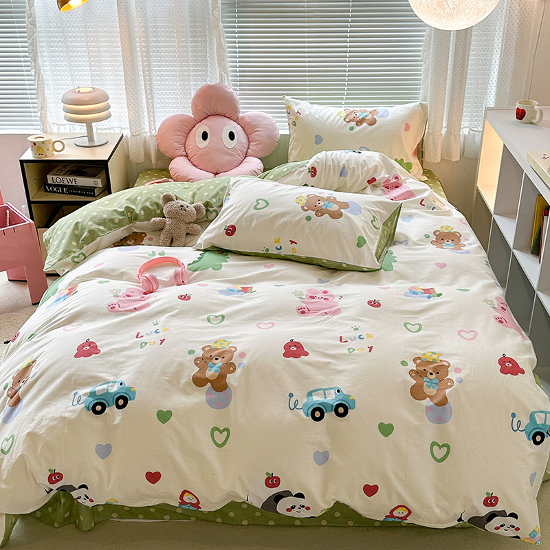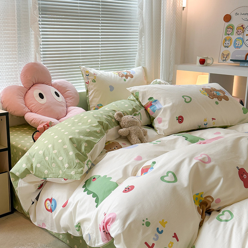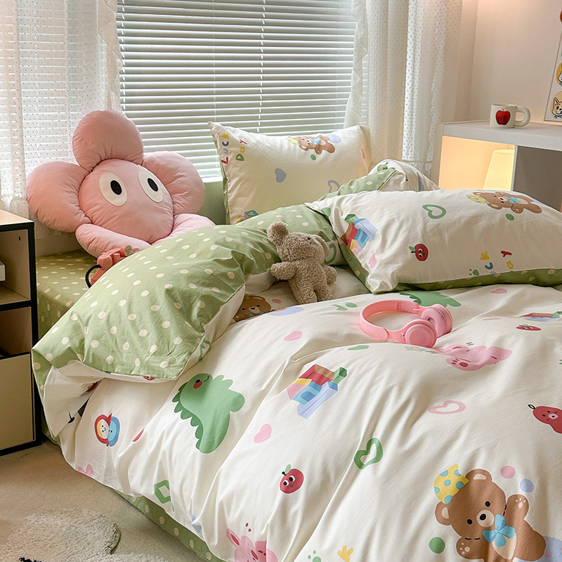 (总)昔可 2023新款学生季卡通普通款四件套,彩色气球熊,彩条恐龙,憨憨熊,花蜜小兔,蘑菇兔,圈圈草莓,蔬菜小兔,郁金香小萌狗