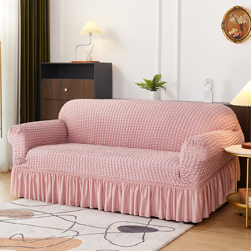 丝绮鹿 2023新款爆米花系列全包沙发套裙边款双扶手 粉色