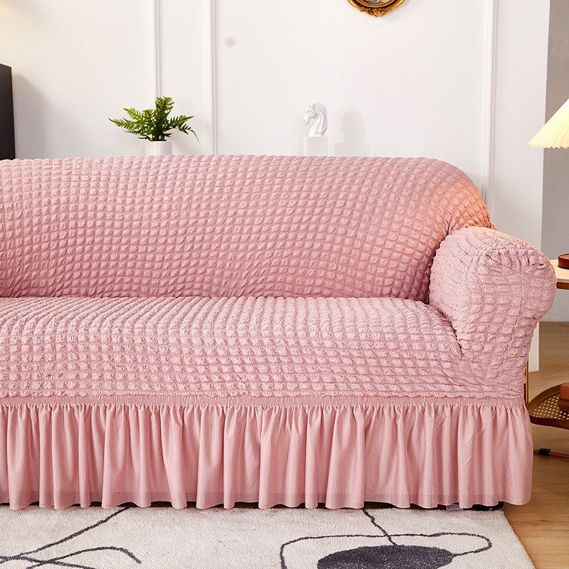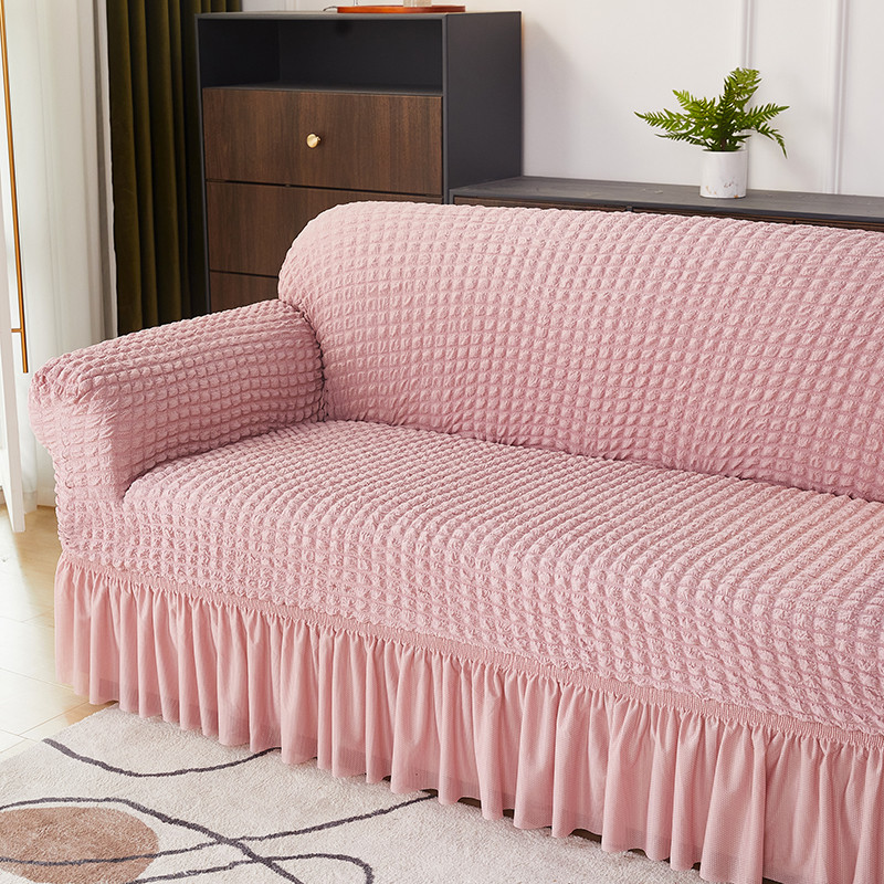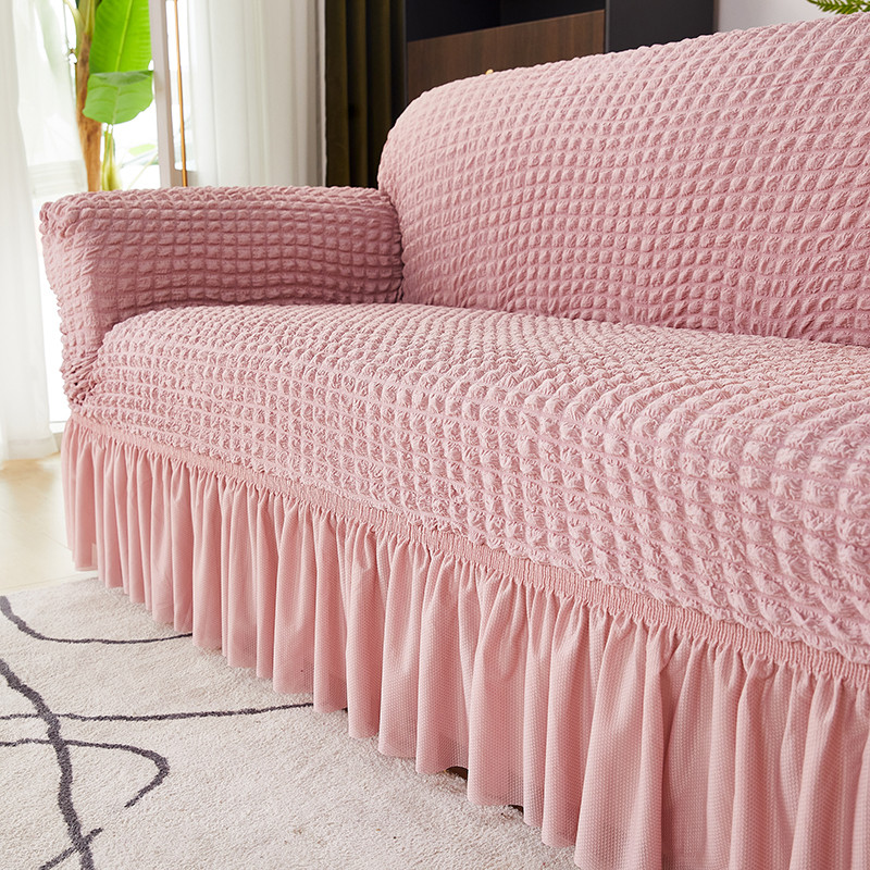 商品名称:丝绮鹿 2023新款爆米花系列全包沙发套裙边款双扶手 粉色
