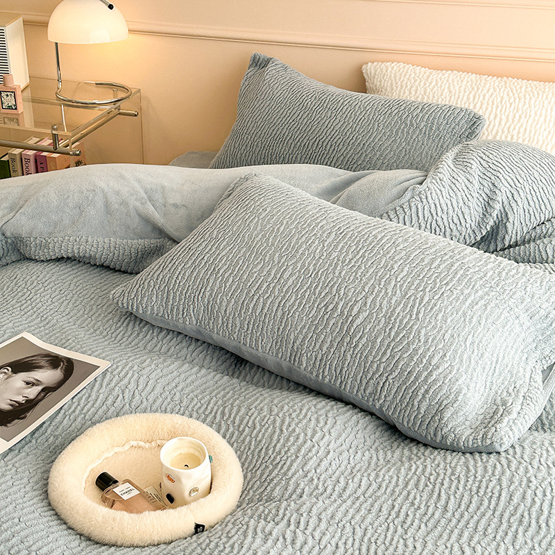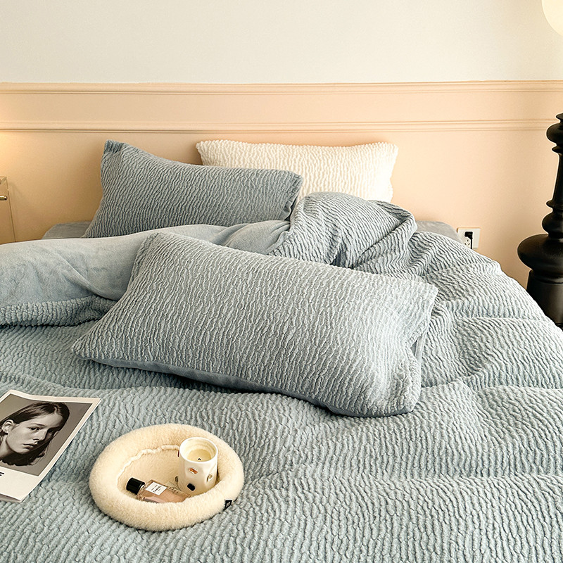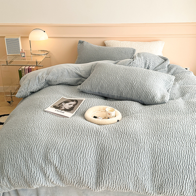 昔可 2023新款纯色泡芙云朵绒四件套 雾霾蓝