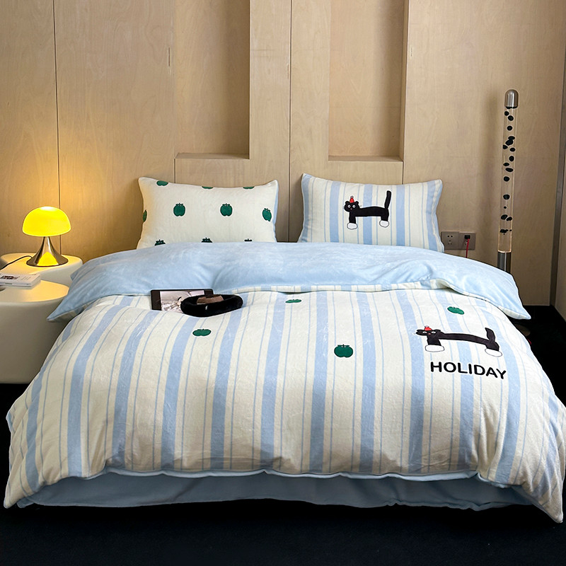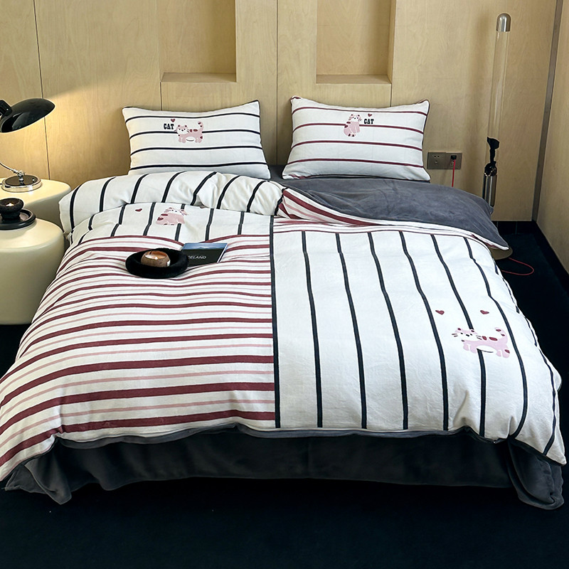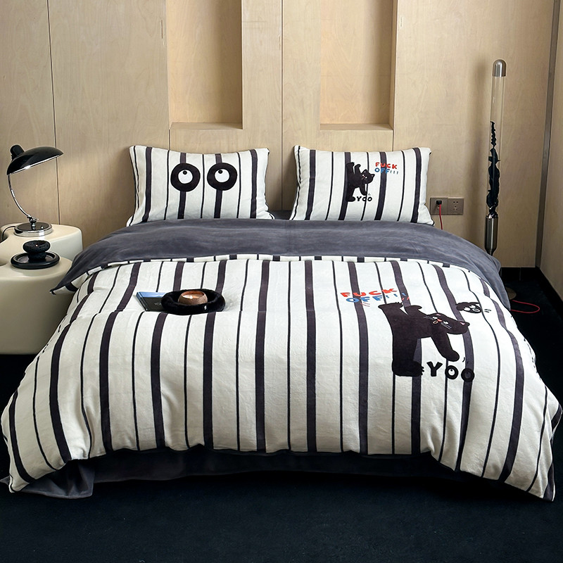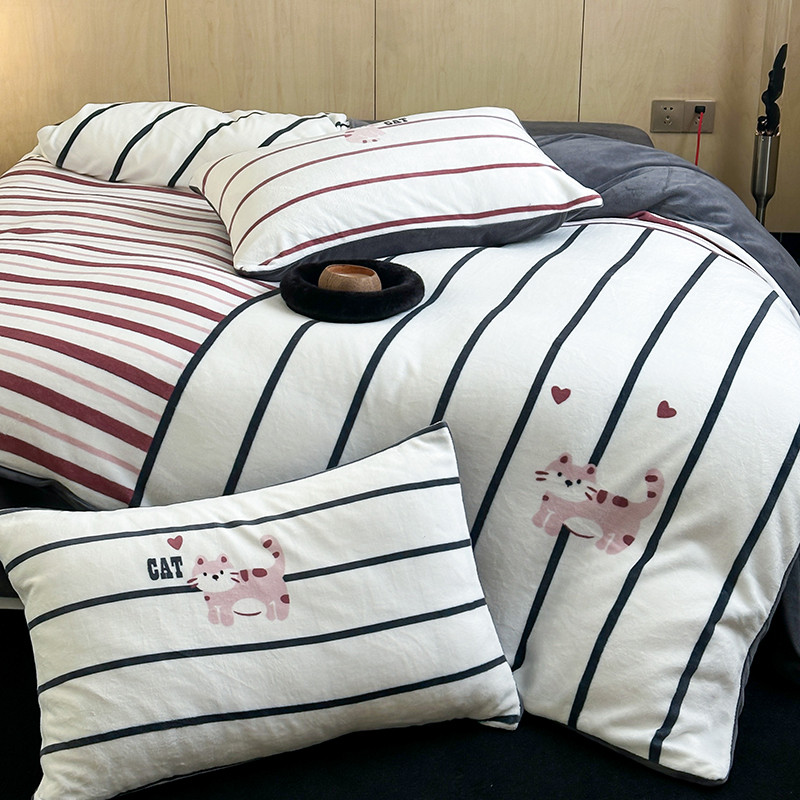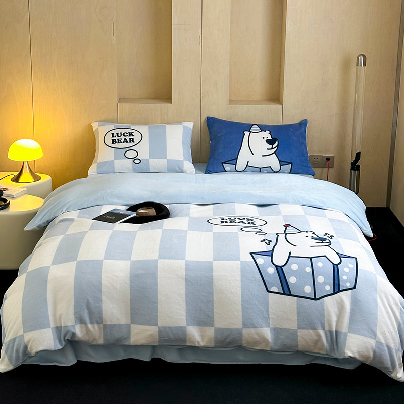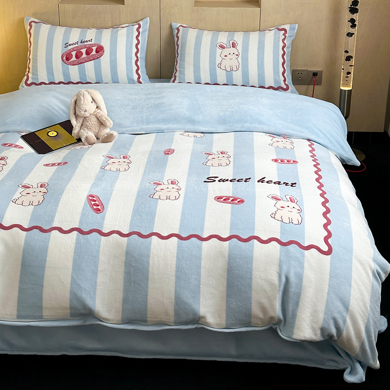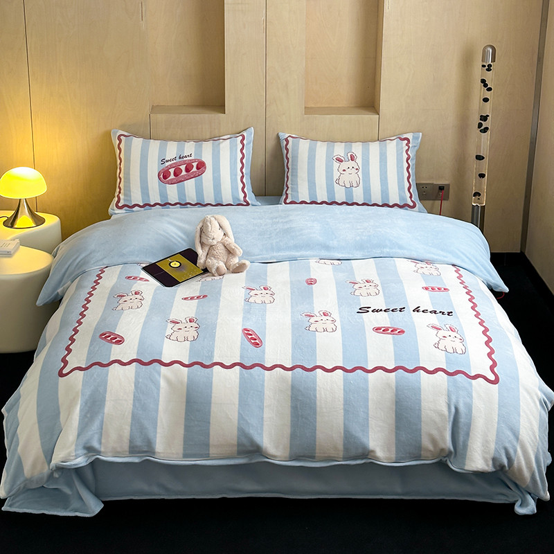 (总)昔可家纺 2024新款印花牛奶绒四件套系列-洛丽塔风,萝莉小兔,小熊烘焙屋,小熊玩偶屋