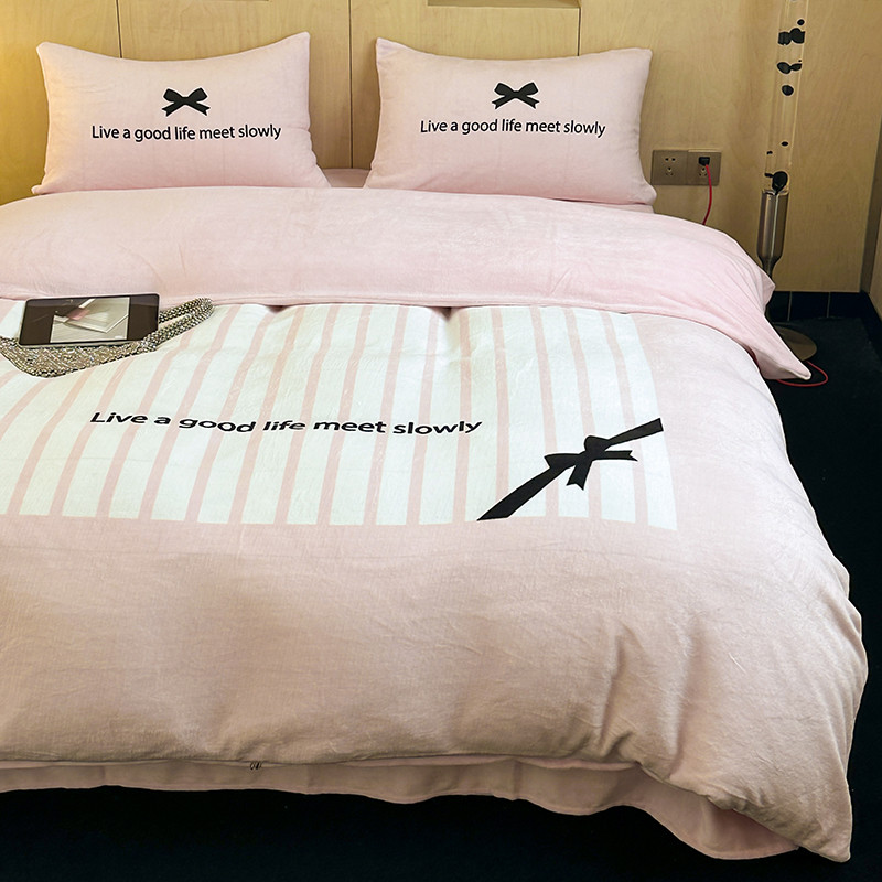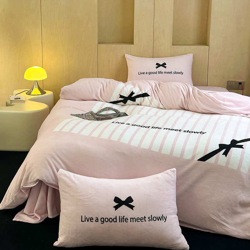 (总)昔可家纺 2024新款印花牛奶绒四件套系列-ins少女系列,芭蕾蛋糕,芭蕾美学,粉格蝴蝶结,黑粉芭蕾蝴蝶结,蓝格蝴蝶结,樱桃奶油蛋糕