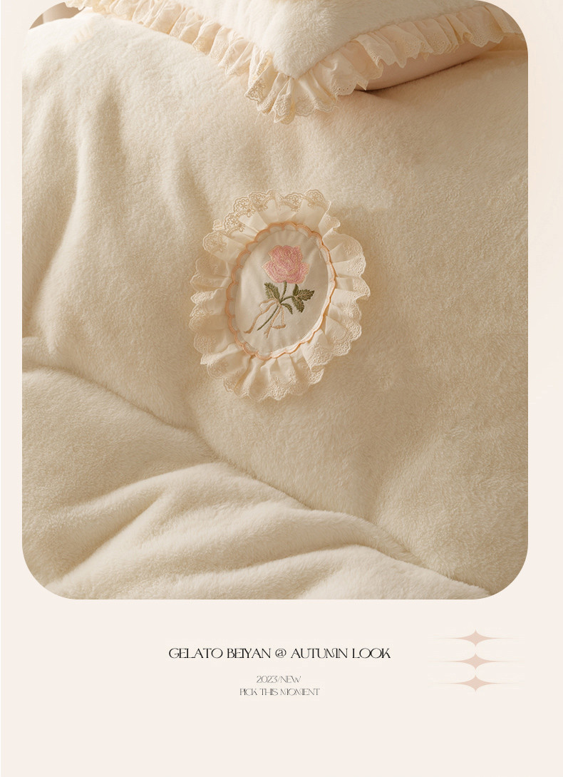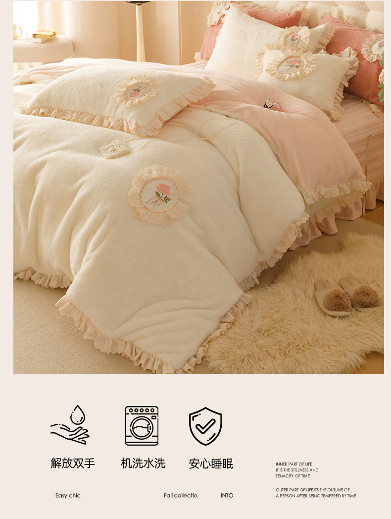 菊上家纺 2023新款加厚牛奶绒刺绣超保暖床盖四件套 安妮粉