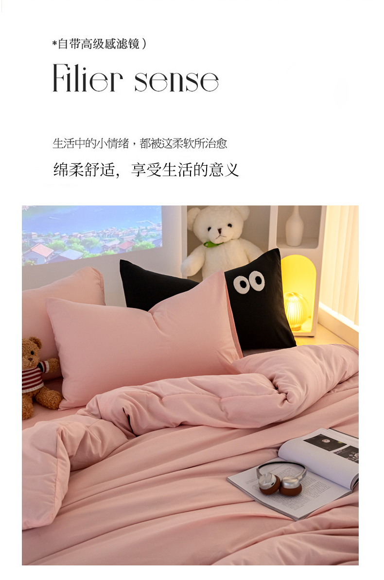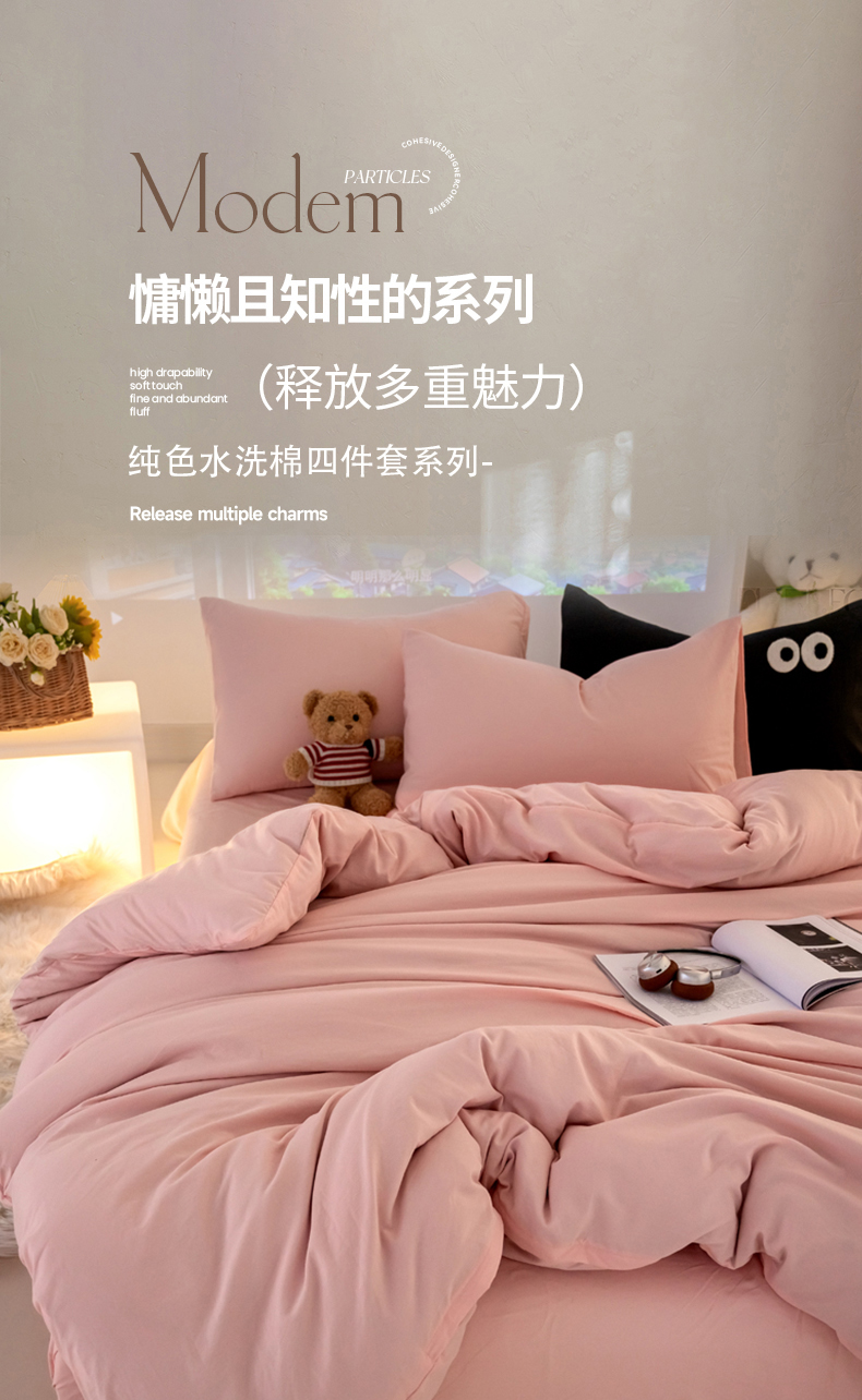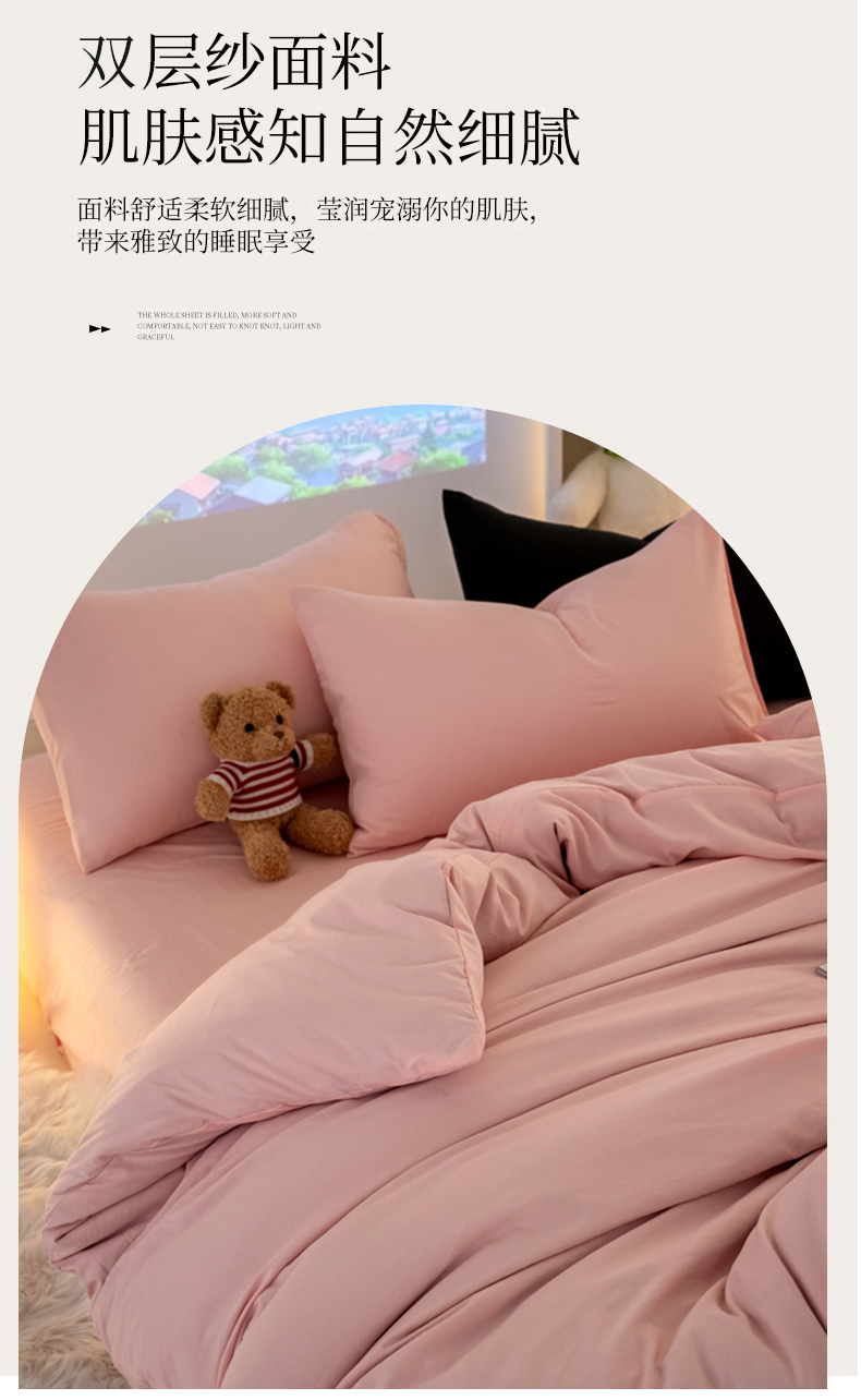 当前位置: 91家纺网 > 商品网购 > 床品套件 > 四件套 > 全棉普通四件套 > 韩秀家纺 2024新款超柔水洗棉双层纱大眼睛款纯色四件套 优雅粉玉