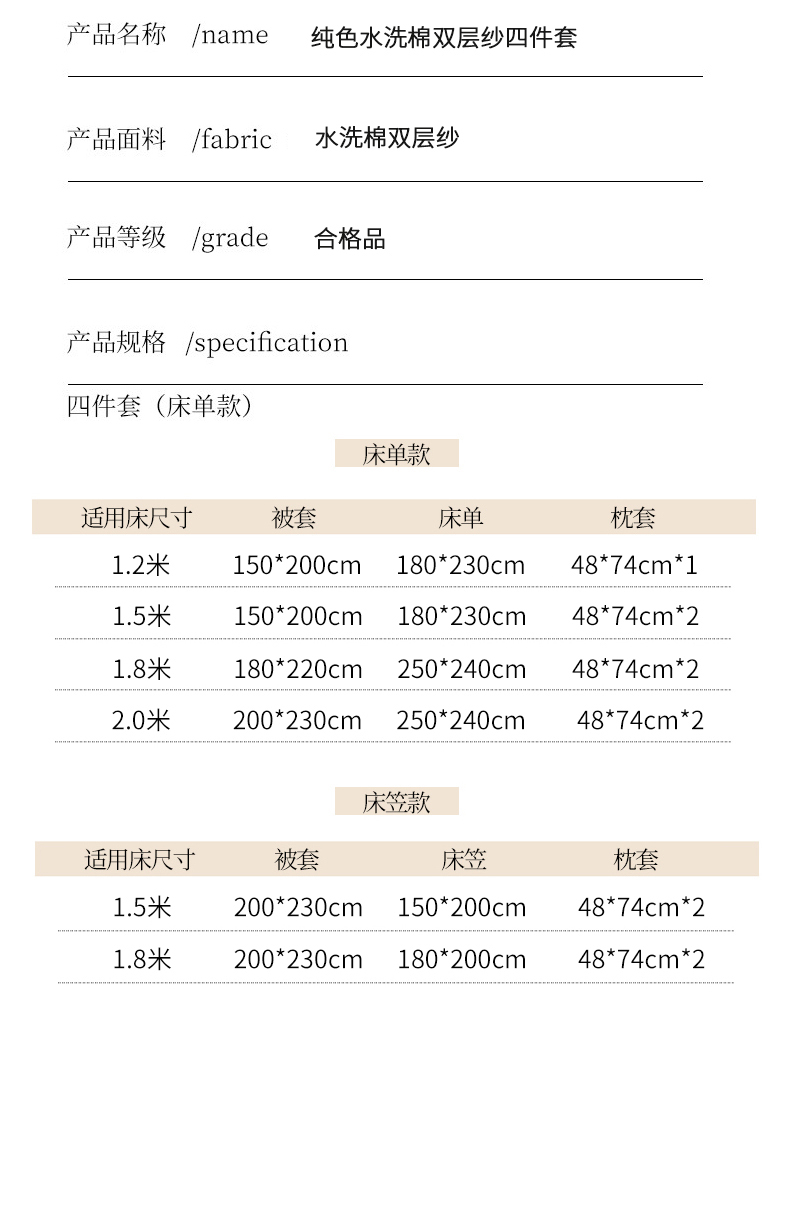 1.8m床笠款四件套(被套2*2.3m) | ¥50.00 |
