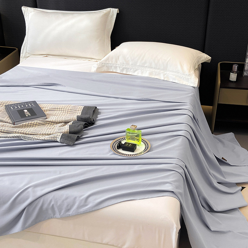莱阁亿 2023新款高支高密纯色全棉磨毛单床单 北极蓝