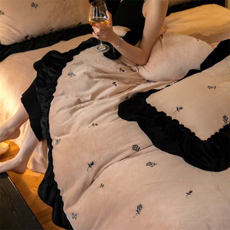 (总)爱丽丝 2024新款玫瑰刺绣牛奶绒四件套