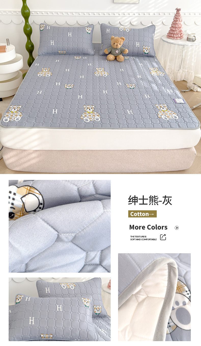 商品名称:伊人坊 2024新款亲肤水洗薄款软床垫防滑床护垫床褥学生垫子可机洗 绅士熊-灰