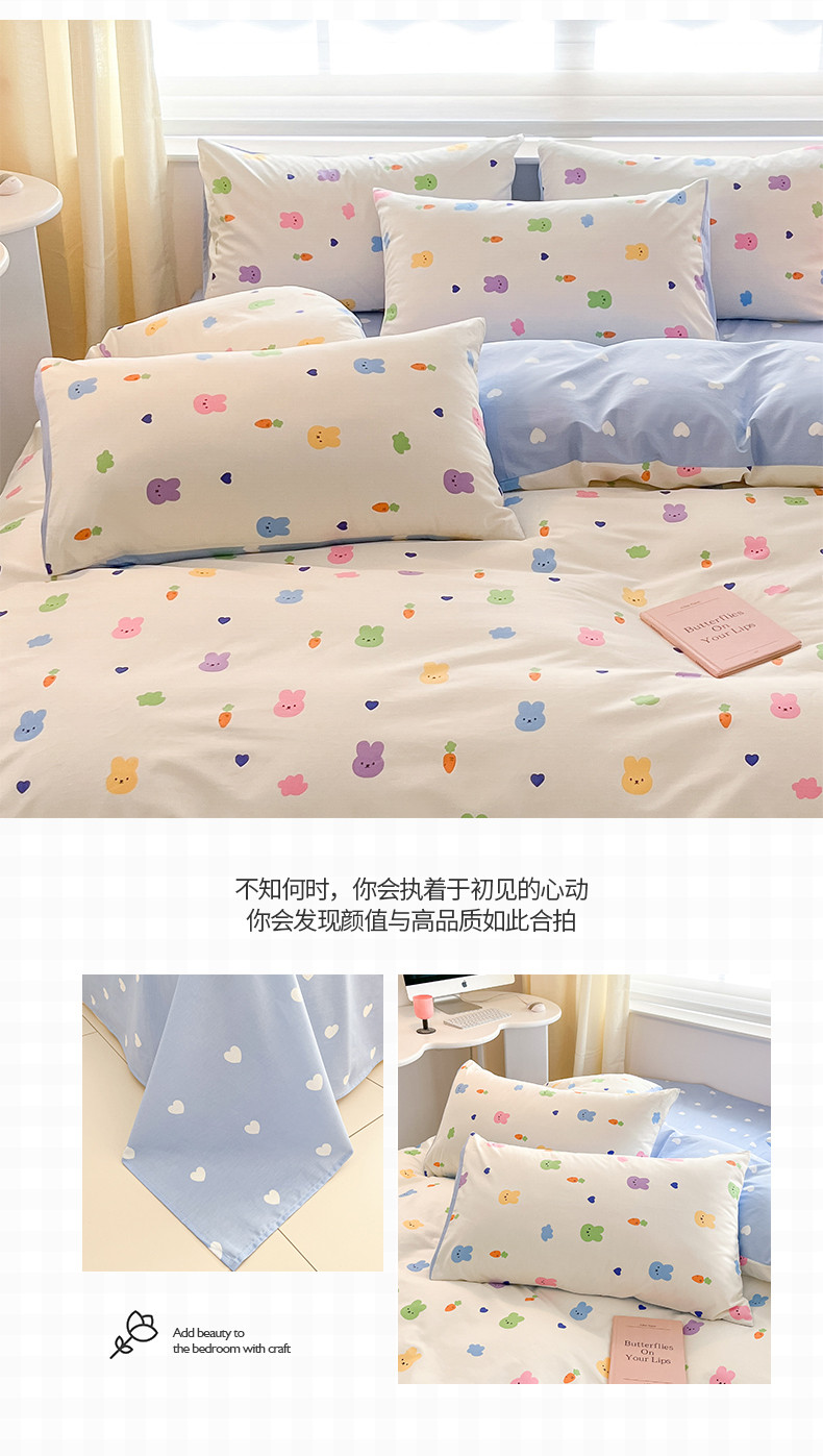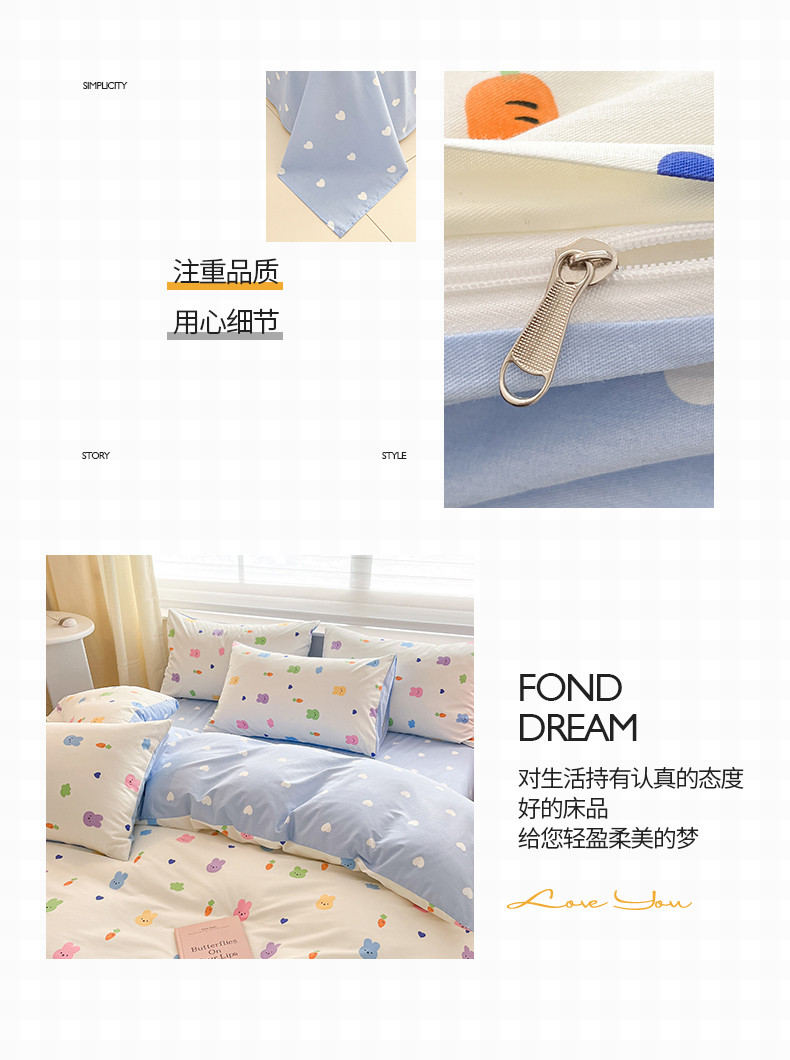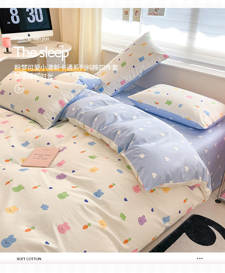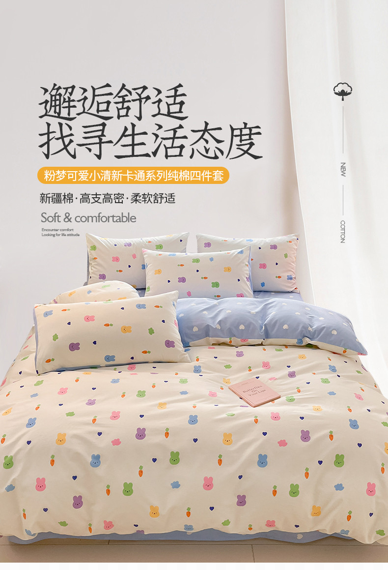 商品名称:桃子家居 2024新款纯棉13372粉梦可爱小清新卡通系列四件套 棉-萝卜兔
