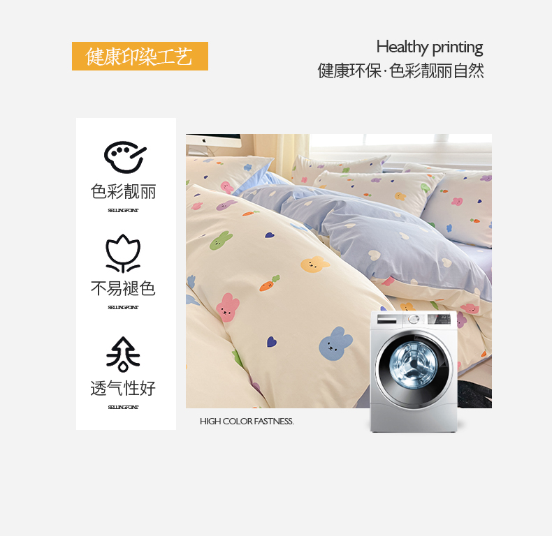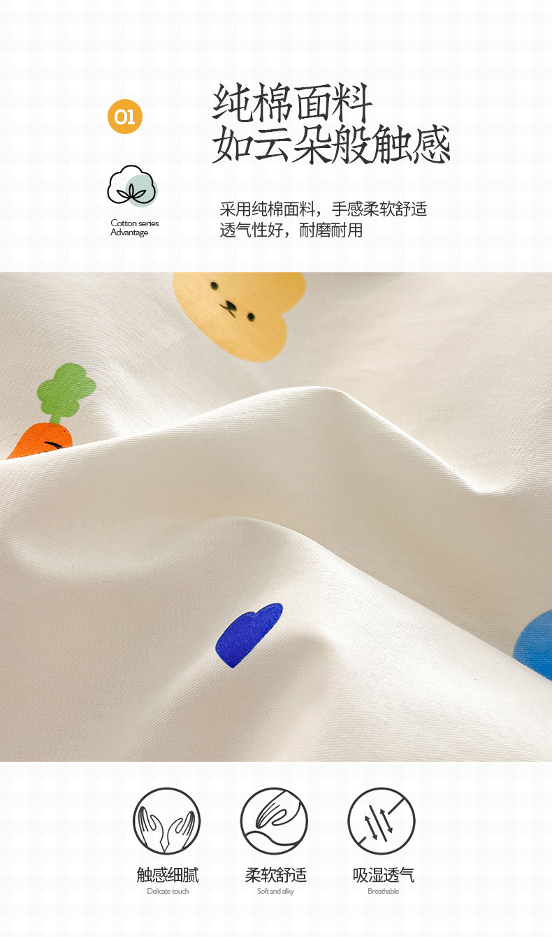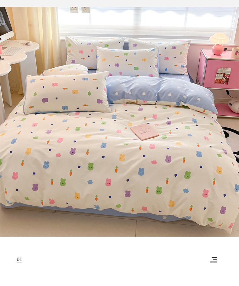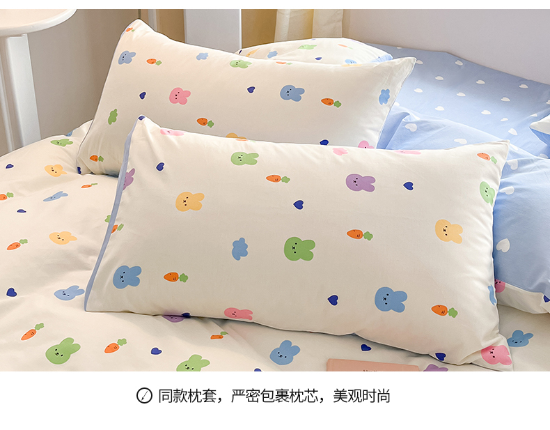 商品名称:桃子家居 2024新款纯棉13372粉梦可爱小清新卡通系列四件套 棉-萝卜兔