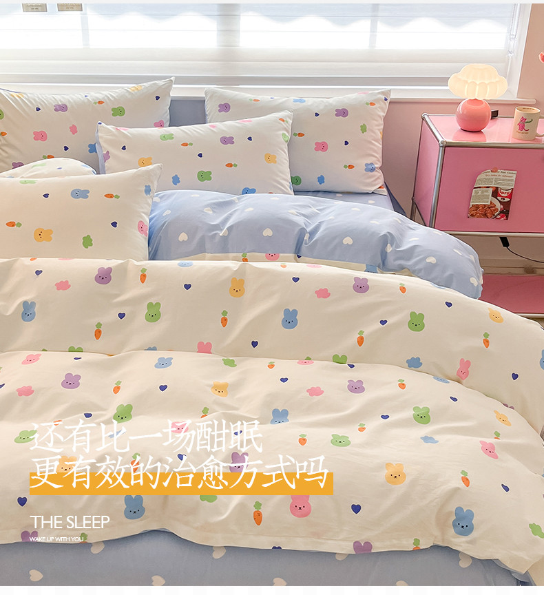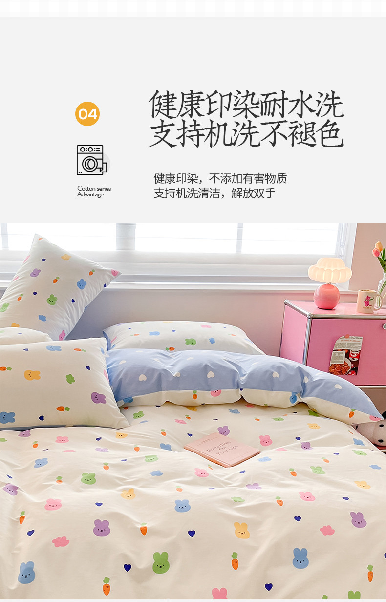 桃子家居 2024新款纯棉13372粉梦可爱小清新卡通系列四件套 棉-萝卜兔