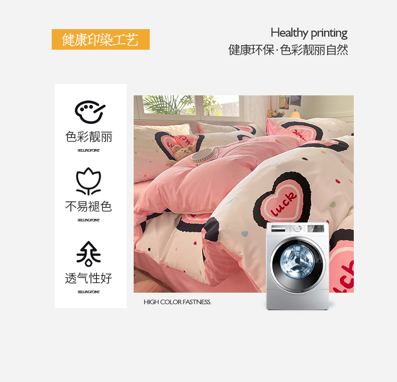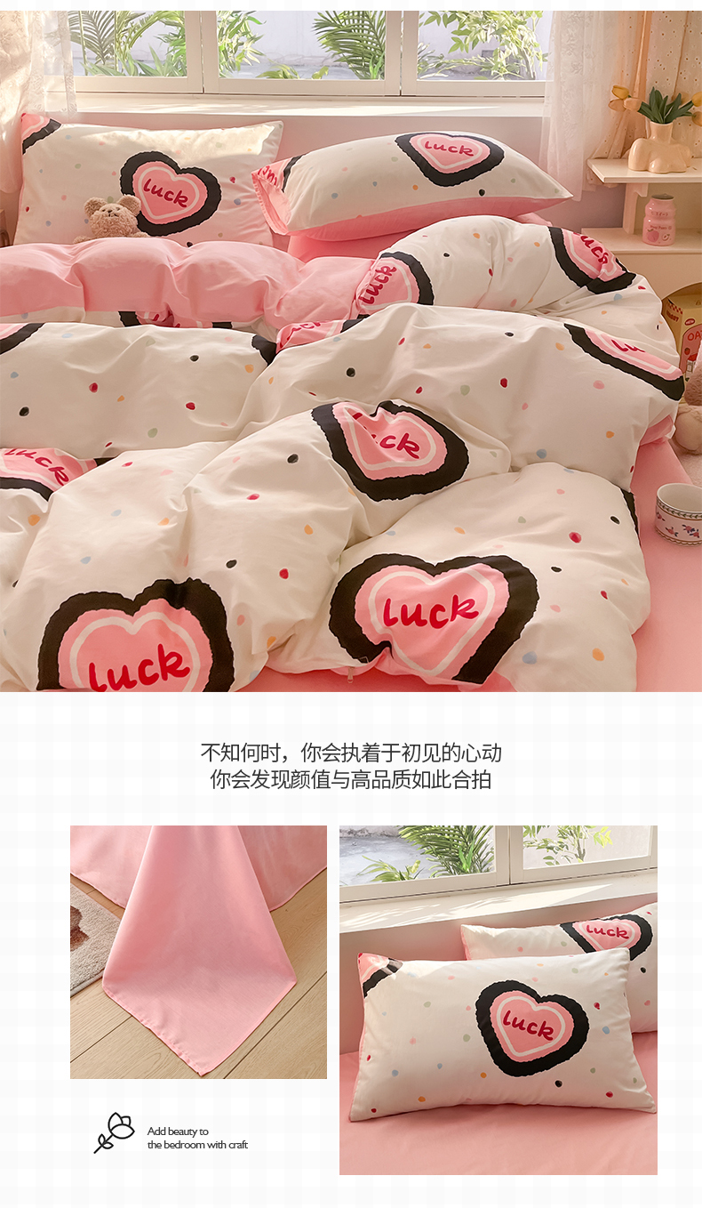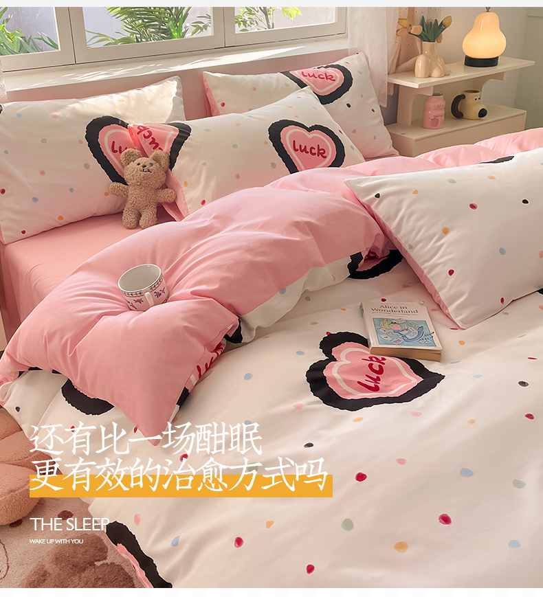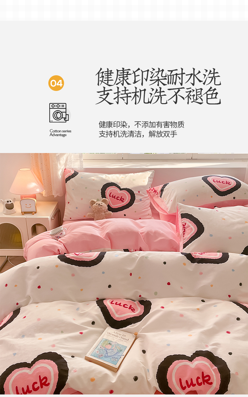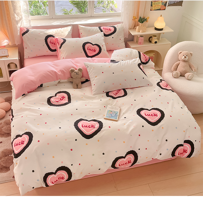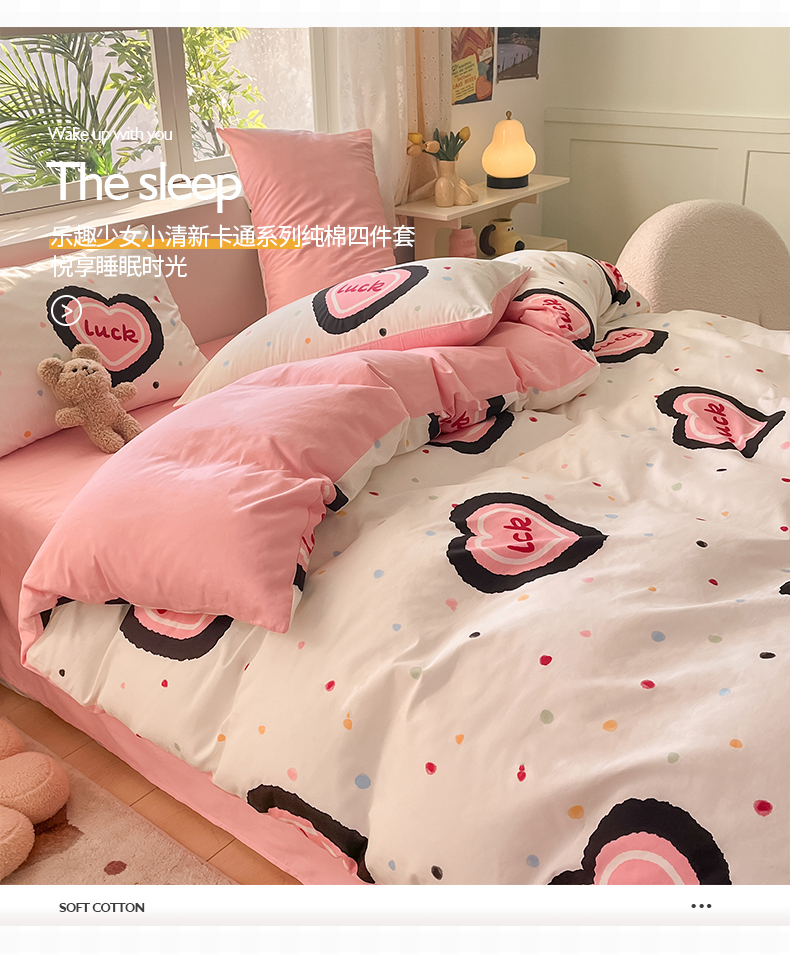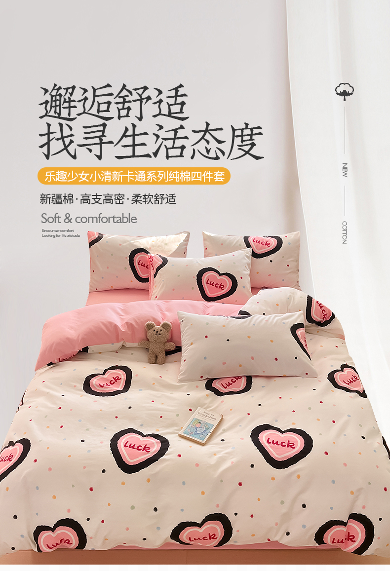 桃子 2024新款纯棉13372萌趣少女小清新卡通四件套第二批 棉-粉心派对