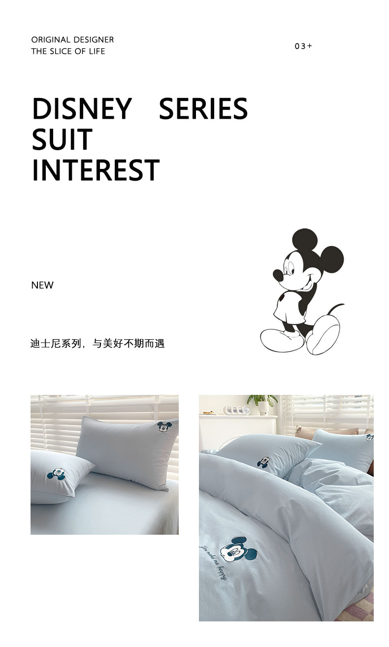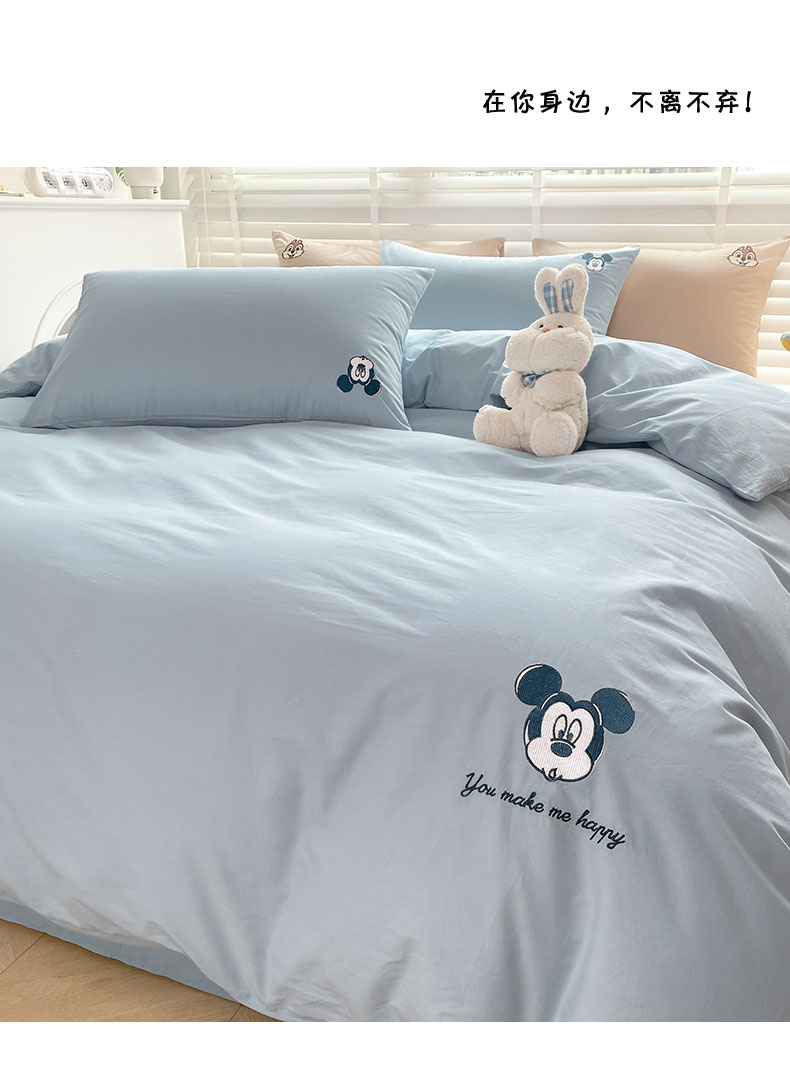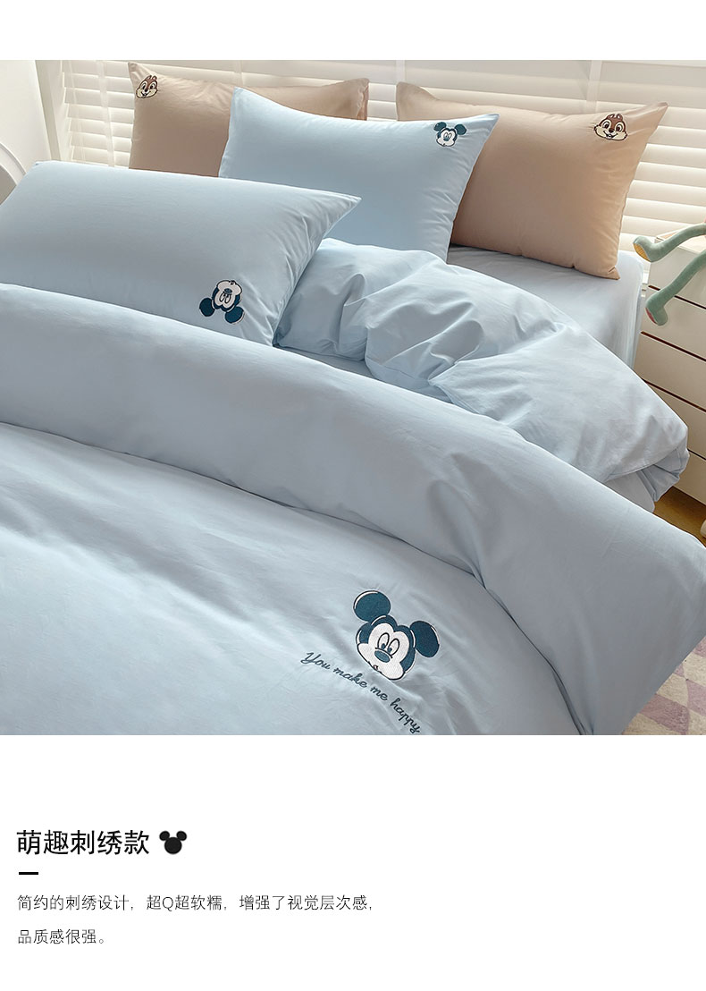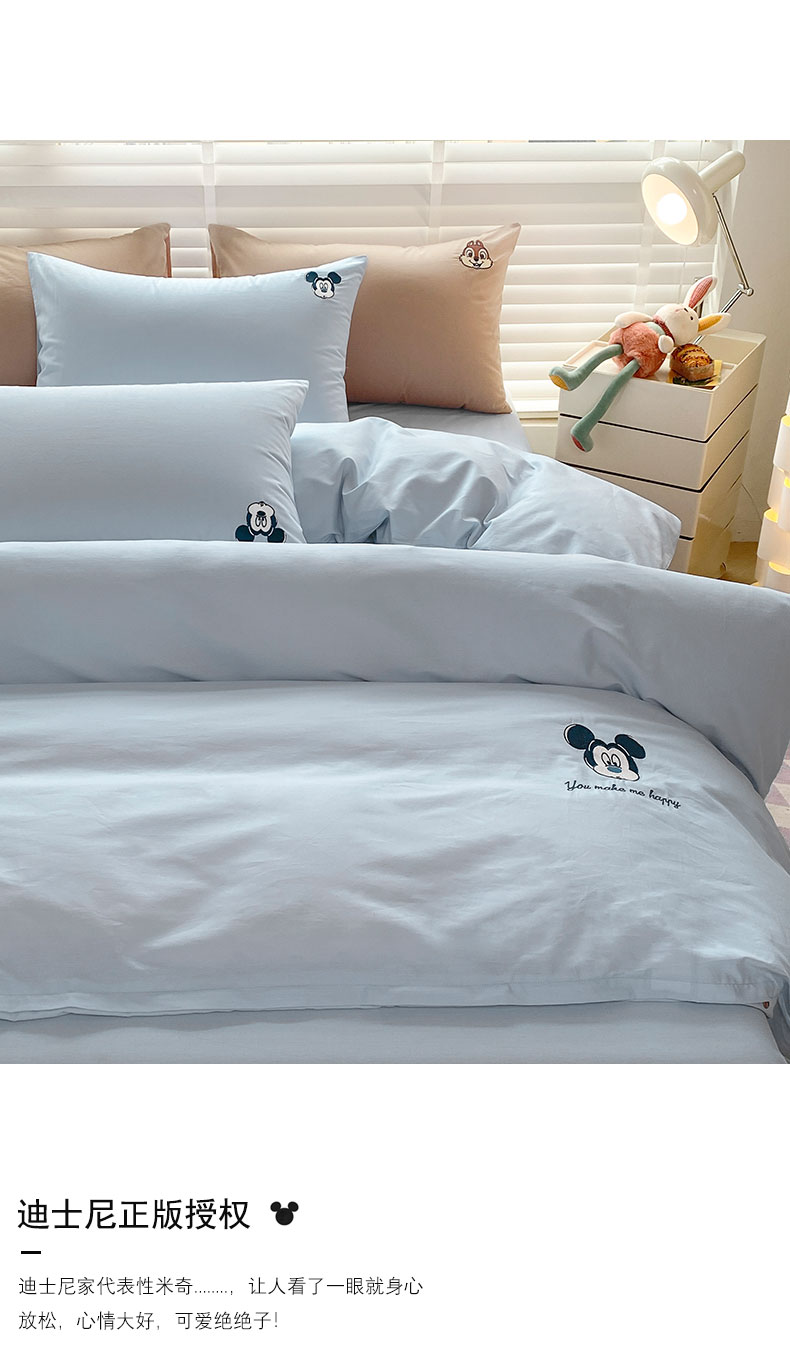 商品名称:猪先生 2024新款迪士尼全棉40支水洗棉绣花四件套 浅蓝米奇