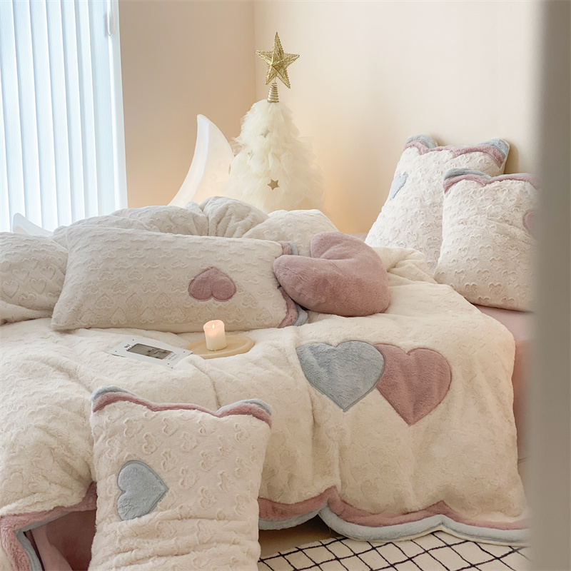 (总)星野 2024新款秋冬新品高克重兔毛绒牛奶绒四件套-冬季恋歌